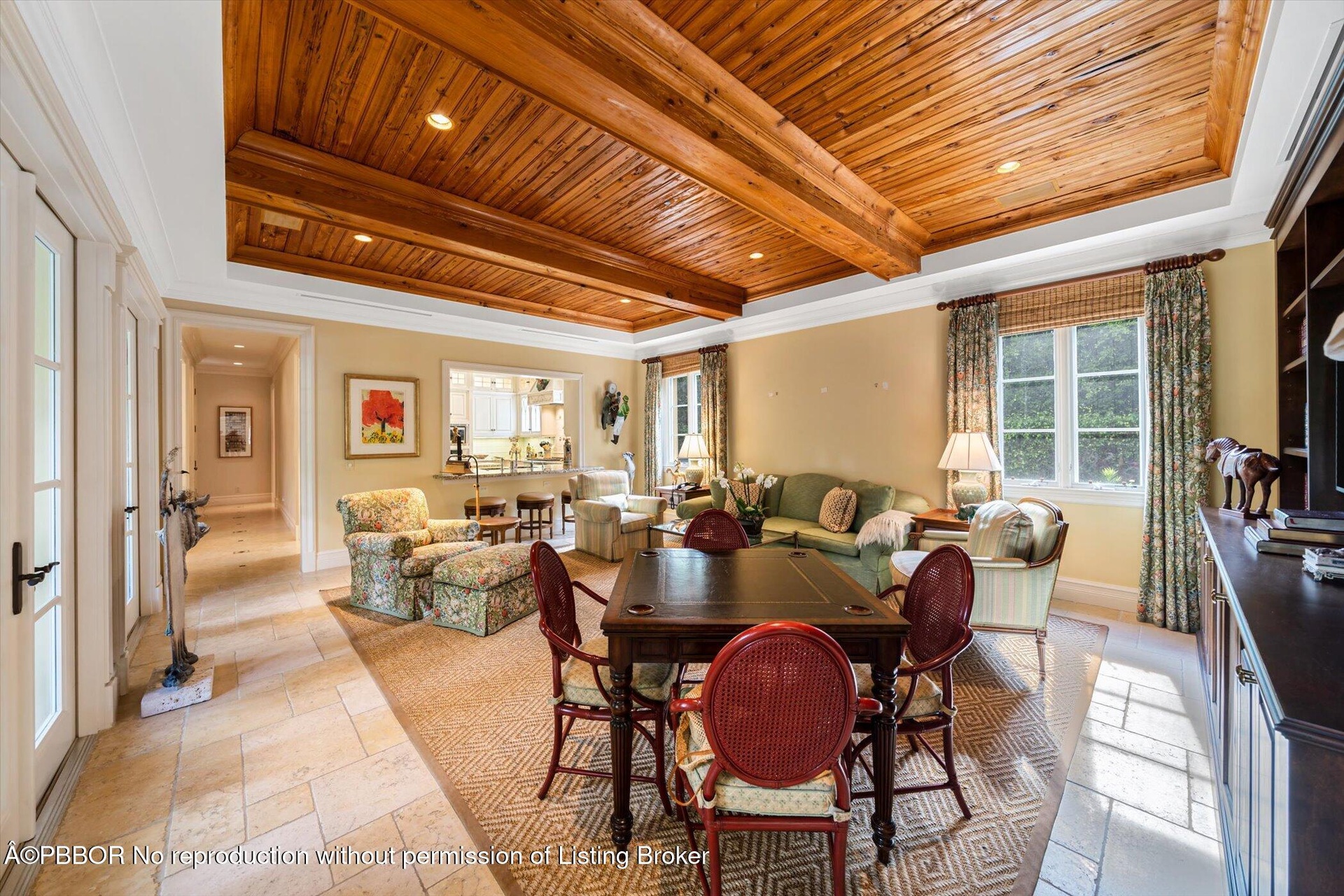 Nestled in the peaceful enclave of serene Coral Lane, this attractive 5-bedroom, 6-bathroom home offers an idyllic escape just moments from the vibrant heart of Palm Beach. Located a few blocks north of Main Street's shopping and dining, you will enjoy a quiet street with easy access to the best of the town. Spend evenings watching spectacular sunsets along the Lake Trail and mornings savoring the sand with direct access to Wells Road beach. Set on a generous 14,000 square foot lot, this impeccably maintained residence was built by Ecclestone Signature Homes and has only had one owner. With its timeless British Colonial architecture, the home is surrounded by lush tropical grounds that enhance its tranquil setting. The expansive design is both functional and elegant, with a two-car garage discreetly located at the rear of the property, allowing the grand entrance and forecourt to remain graciously uninterrupted.