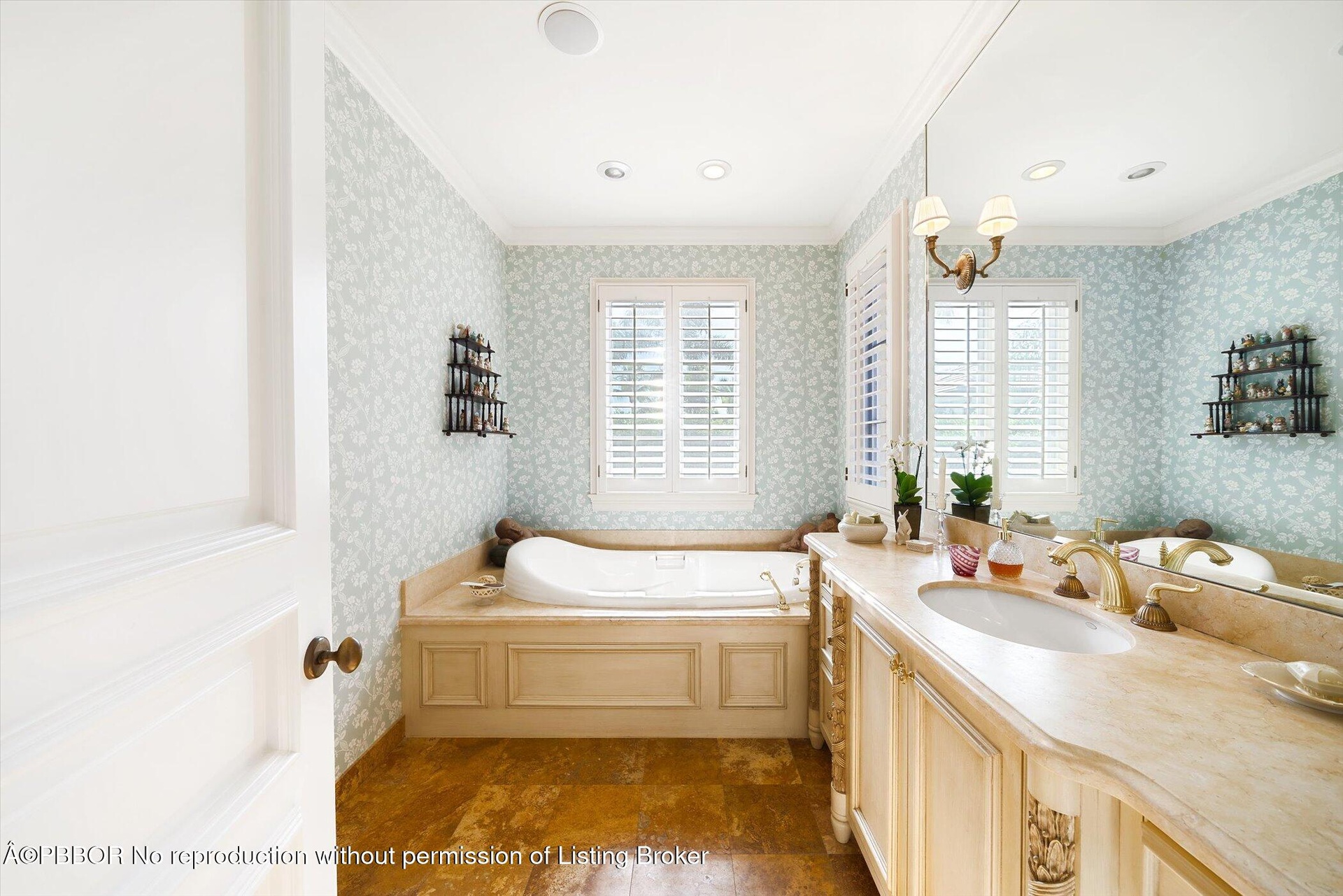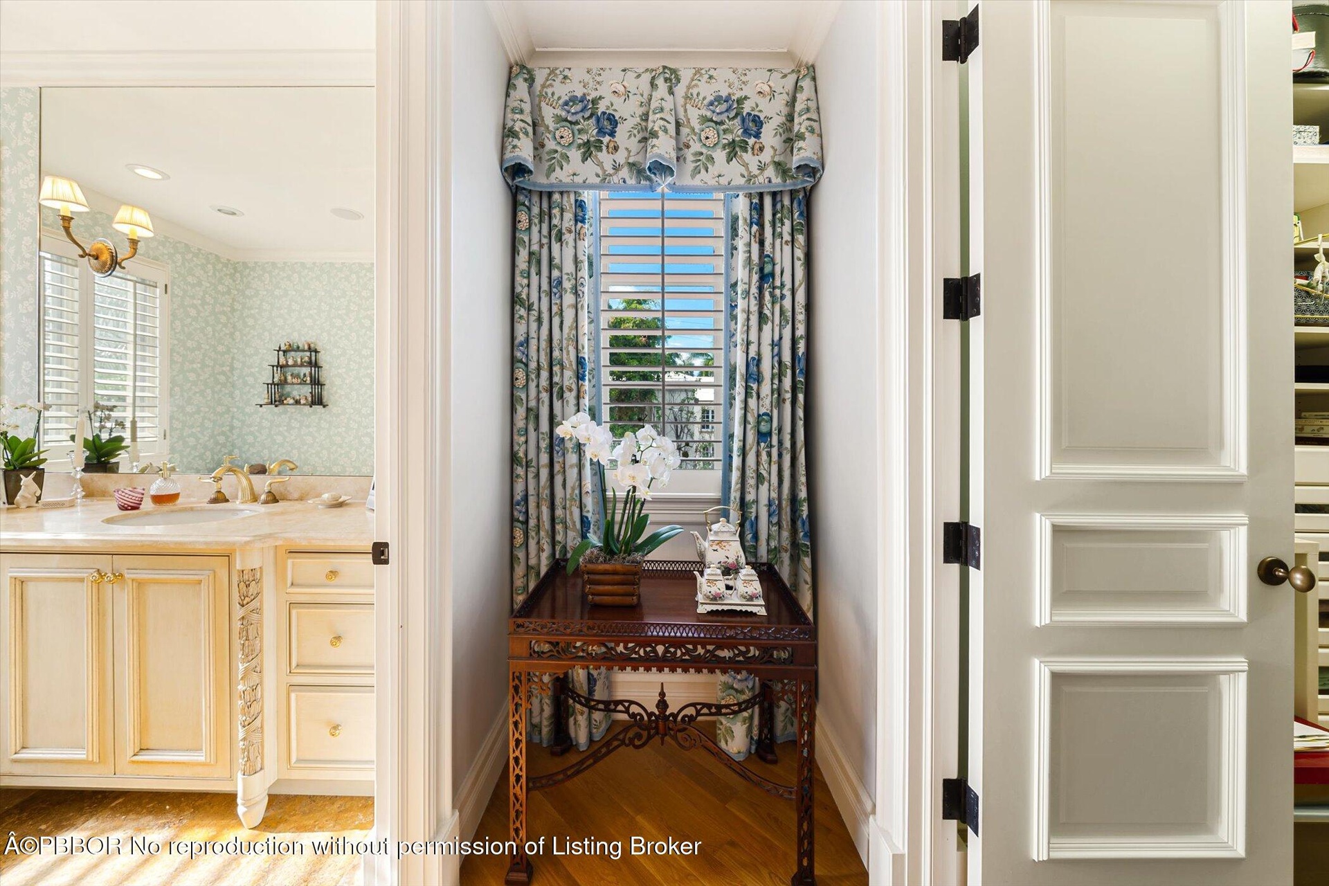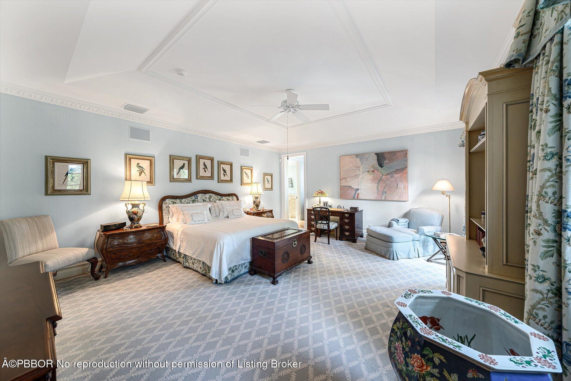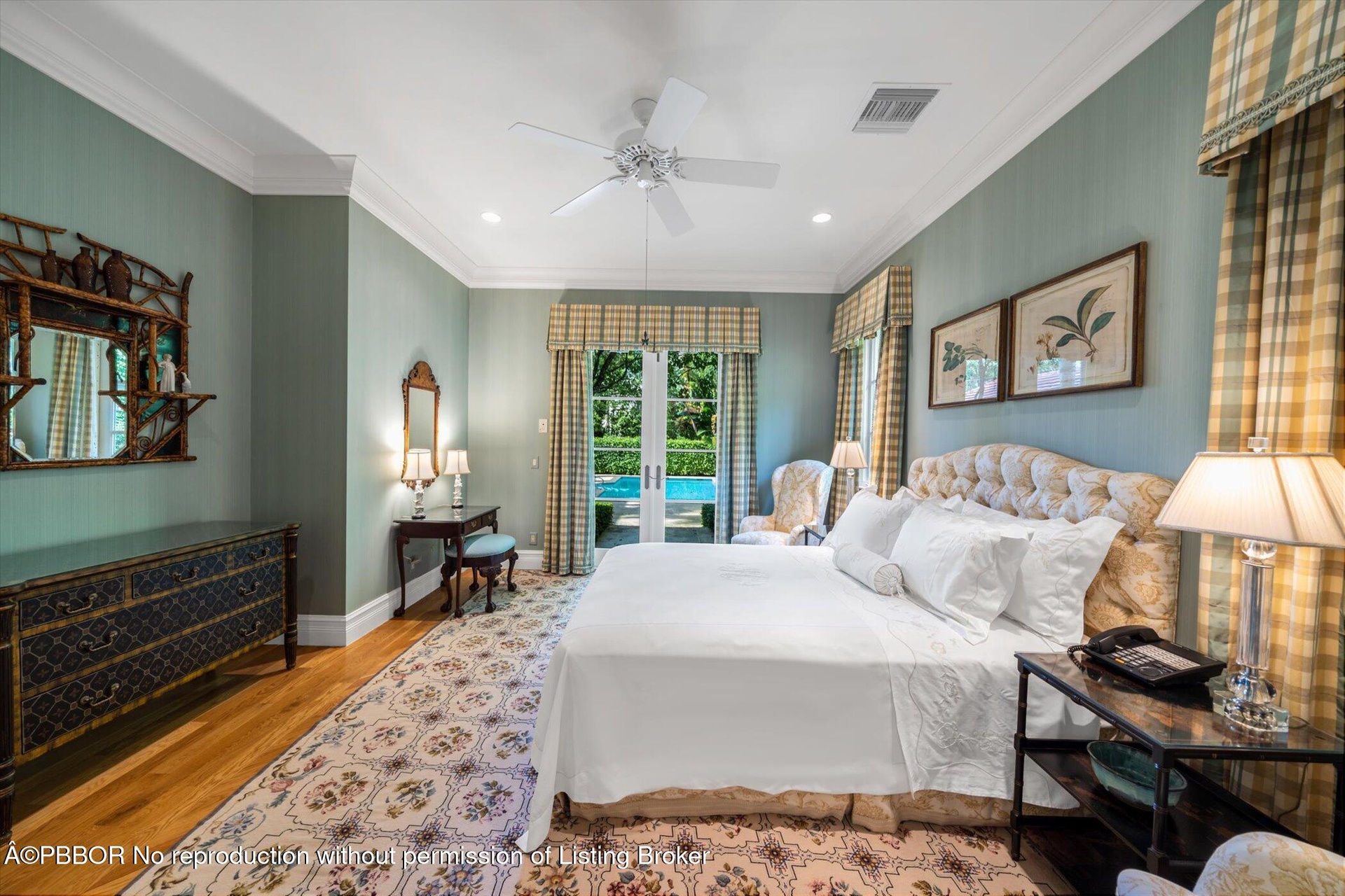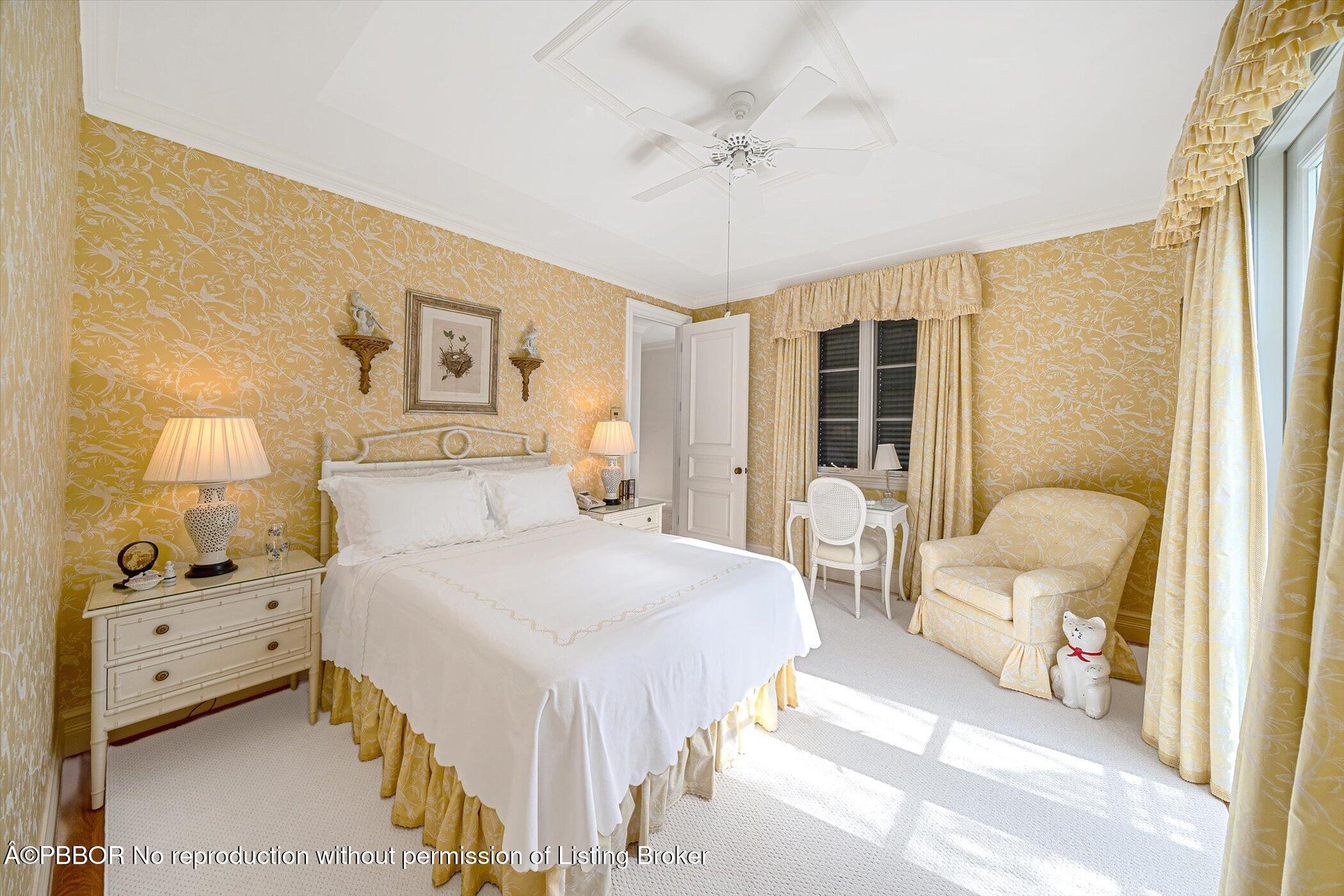 Nestled in the peaceful enclave of Coral Lane, this attractive 5-bedroom, 6-bathroom home offers an idyllic escape just moments from the vibrant heart of Palm Beach. Located a few blocks north of Main Street's shopping and dining, you will enjoy a quiet street with easy access to the best of the town. Spend evenings watching spectacular sunsets along the Lake Trail and mornings savoring the sand with direct access to Wells Road beach. Set on a generous 14,000 square foot lot, this impeccably maintained residence was built by Ecclestone Signature Homes and has only had one owner. With its timeless British Colonial architecture, the home is surrounded by lush tropical grounds that enhance its tranquil setting. The expansive design is both functional and elegant, with a two-car garage discreetly located at the rear of the property, allowing the grand entrance and forecourt to remain graciously uninterrupted.