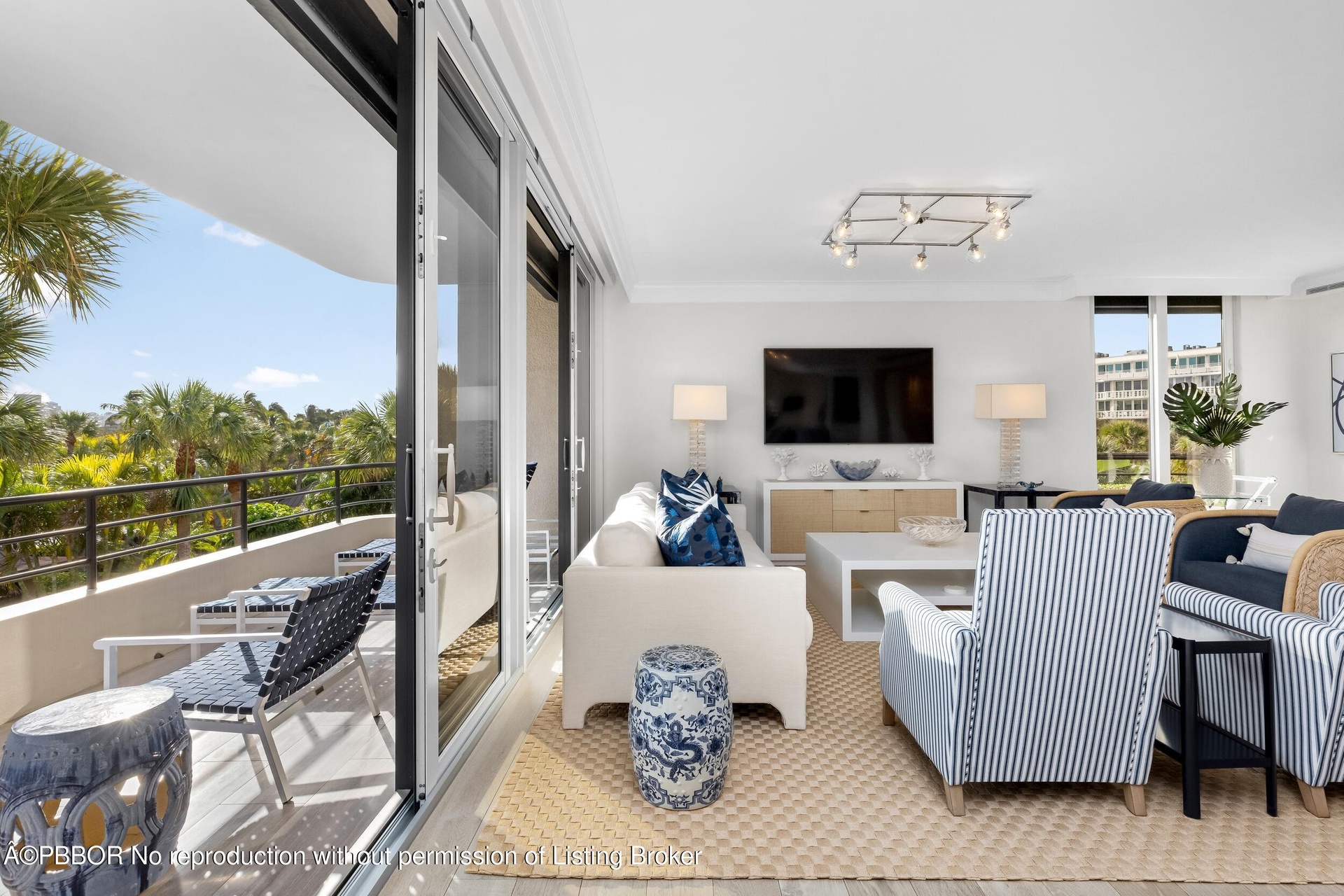 Stunning light-filled condominium in the Leverett House. Gorgeous custom renovation with 3 bedrooms, 3 full bathrooms, and 1 powder room. Rarely available apartment features a gracious floorplan and top-of-the-line finishes throughout. Fabulous great room with bar and floor to ceiling windows leads to expansive covered terrace perfect for indoor and outdoor entertainment. Pristine kitchen features island with waterfall countertops, wine fridge, and endless storage. Spacious Primary suite with multiple balconies, large bath with dual sinks and walk-in closets, and private entry vestibule. This unit offers views of the town, the pool, and the gardens. Additional highlights include stunning hardwood flooring, laundry room, separate service entry, and pool cabana. The Leverett House is a stunning full-service building with a full-time manager, exercise facility, and beach access.