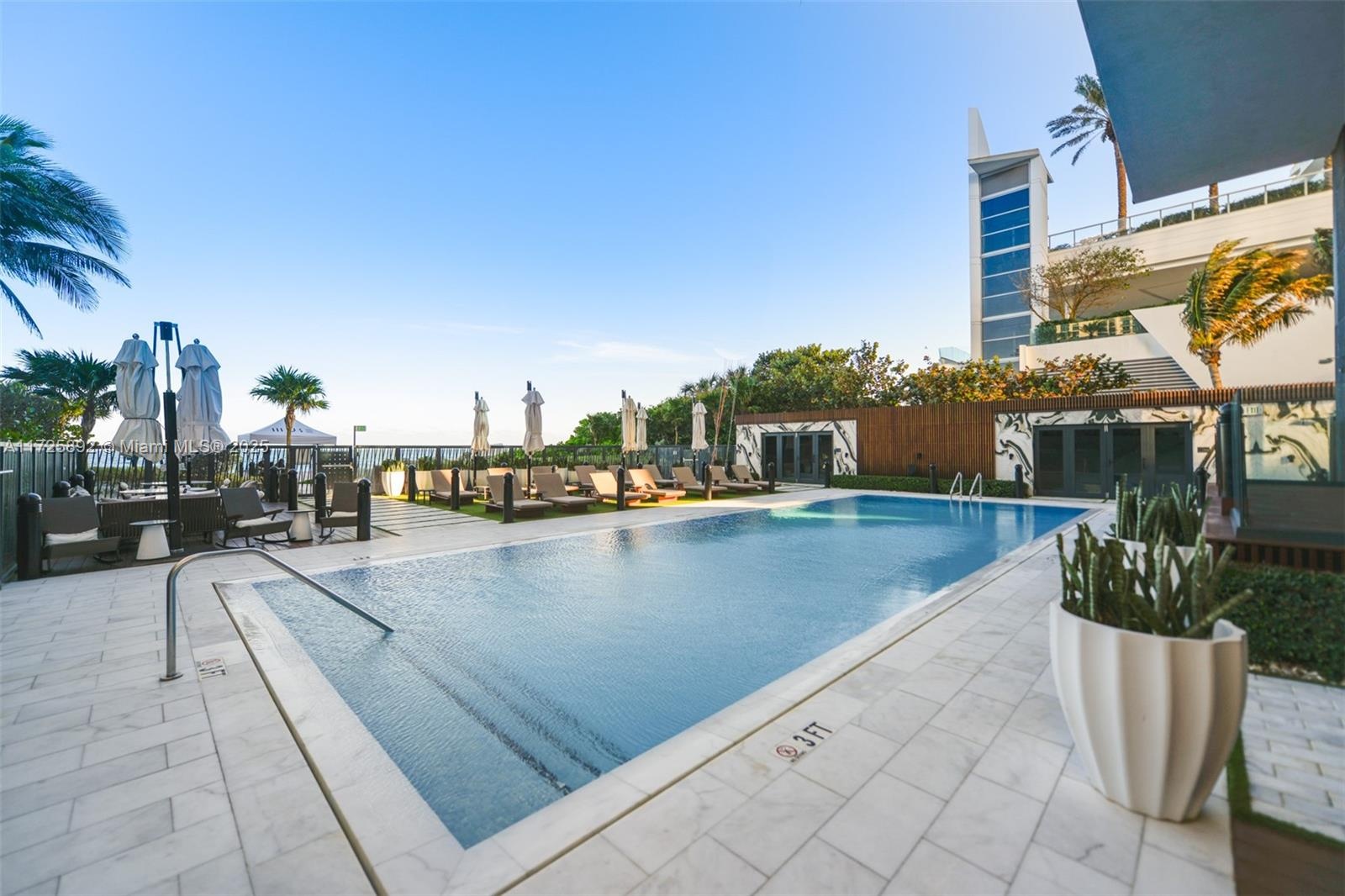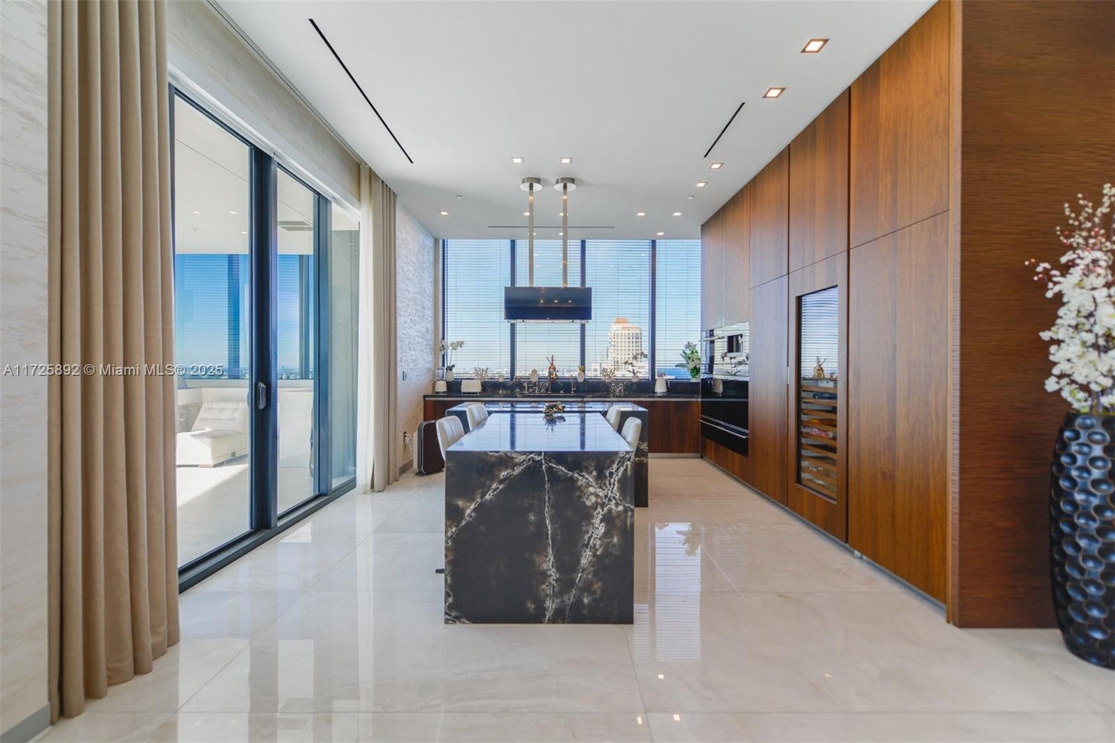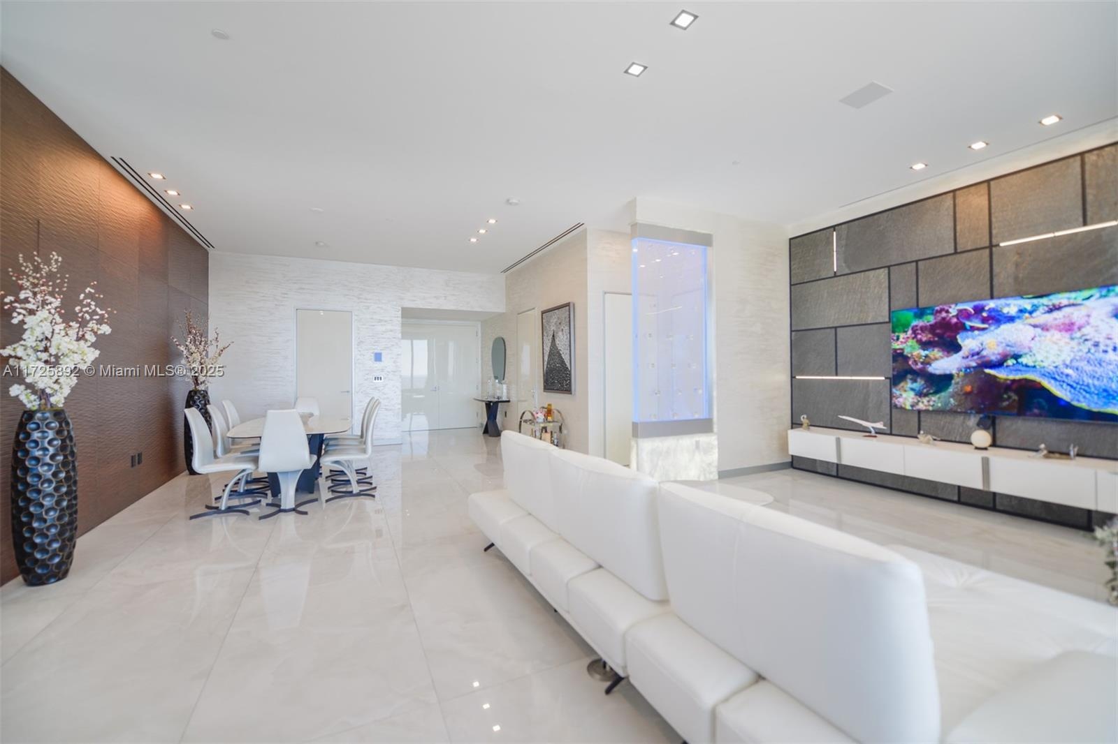 Enjoy unobstructed City, Intracoastal, and some ocean views from this high-floor corner residence in Muse Sunny Isles Beach. This remodeled with designer finishes 2 bed and 2,5 bath smart home unit with private foyer entry, 12’ ceilings, and gourmet kitchen. The floor plan was improved by expanding the living room, Italian porcelain floors throughout, bubble water panel with LED lights, handcrafted onyx in the guest bathroom, bamboo wallpapers, black marble slabs give the elegant covering of the columns at the balcony, and Italian doors. Large outdoor living space w/summer kitchen. With only 63 ultra-luxury exclusive residences Designed by Carlos Ott, an edge pool and spa overlooking the Atlantic Ocean, a State-of-the-art fitness center, and a Fully automated parking system.