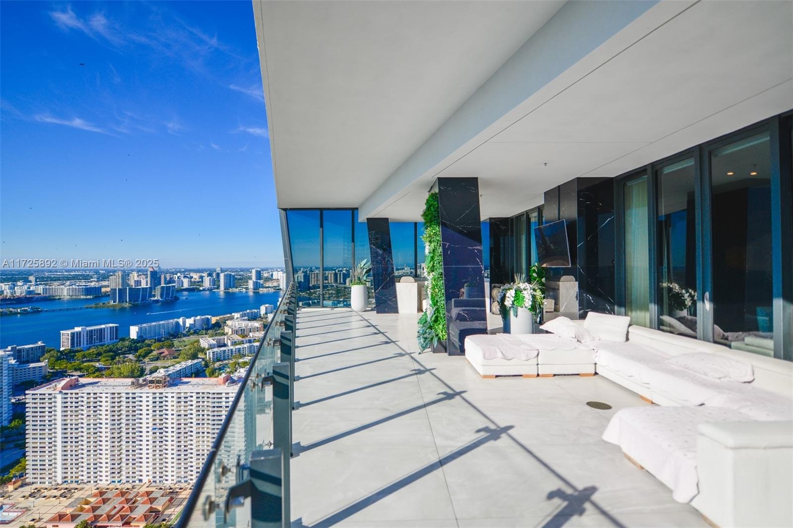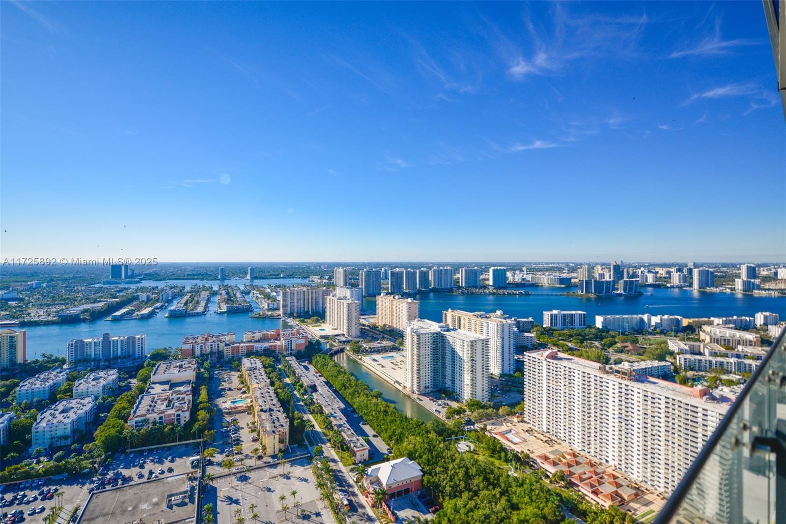 Enjoy unobstructed City, Intracoastal, and some ocean views from this high floor corner residence in Muse Sunny Isles Beach.