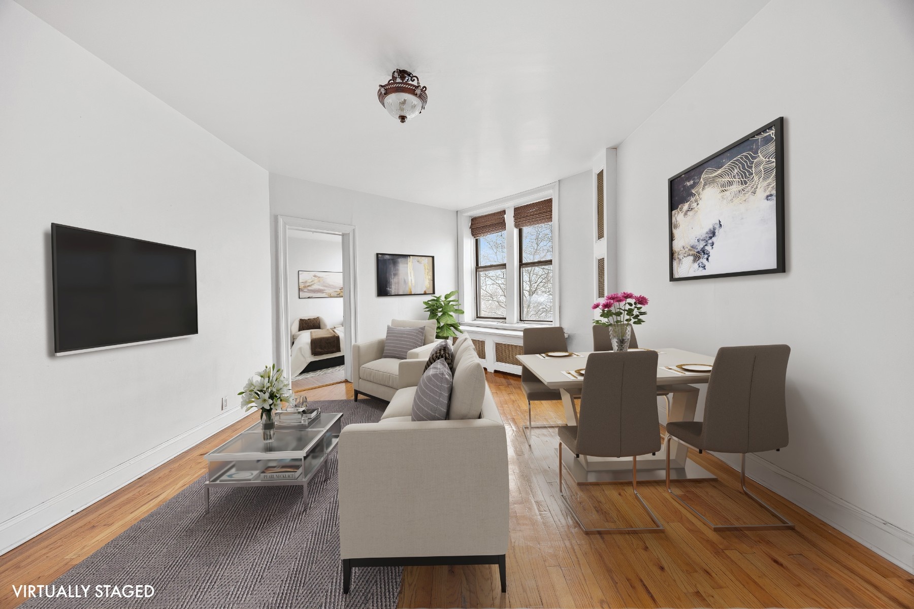 Experience the changing seasons from your sunlit one bedroom, one bathroom sanctuary, offering lush treetop vistas in summer and serene Hudson River views during fall and winter.