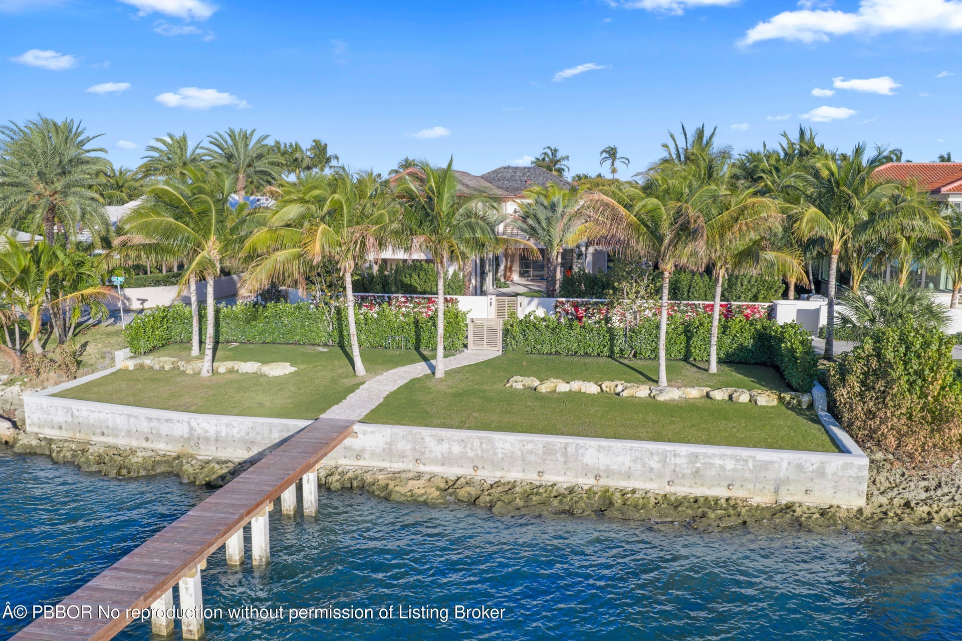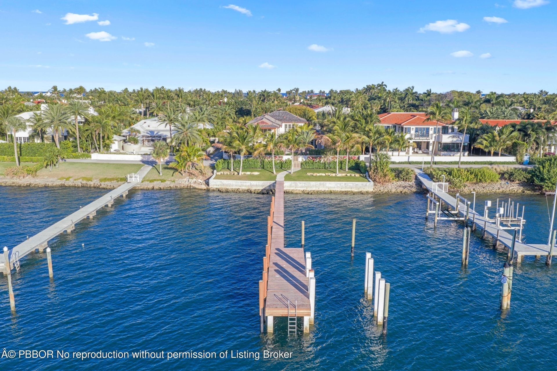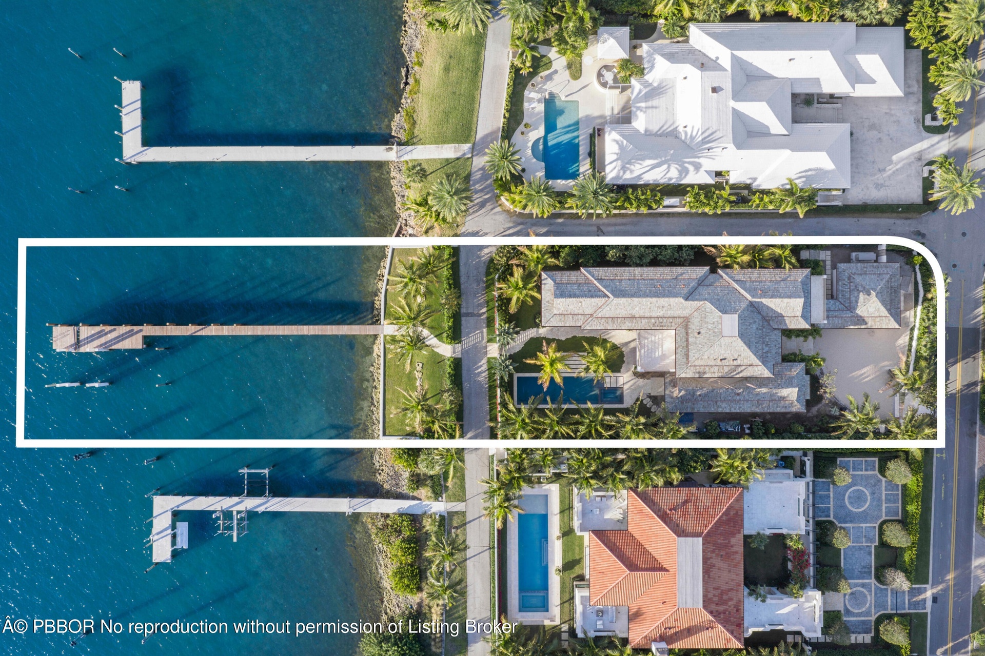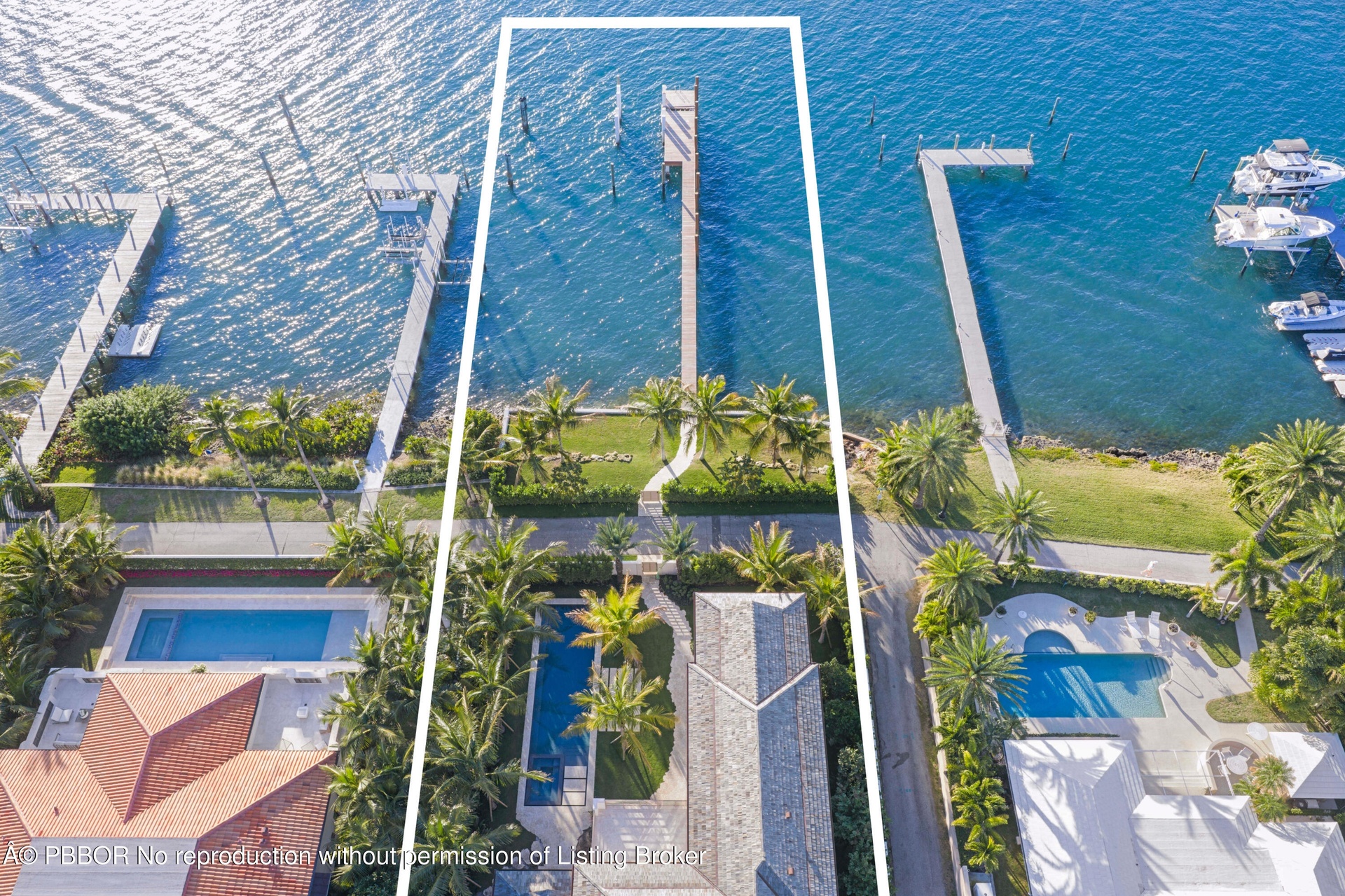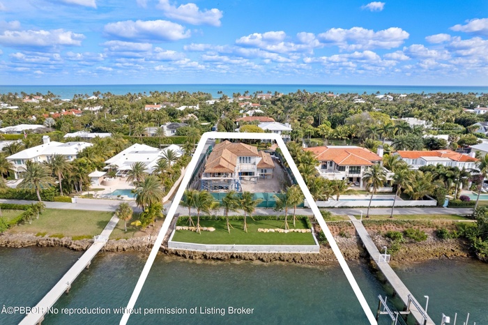 Brand-new construction on North Lake Way built by Wildes Builders and LaBerge and Menard Architect's. Featuring 90 feet of waterfront, a new dock, and luxurious interiors. Upon entering, you are greeted by a grand foyer with Jerusalem Gold limestone flooring that leads into the spacious living areas. The main floor boasts an open kitchen equipped with Gaggenau and Sub-Zero appliances, Taj Mahal stone countertops, an island with seating, and a breakfast area. This space seamlessly flows into the family room, which opens to a covered outdoor loggia overlooking the large pool. Adjacent to the kitchen is a butler's pantry, also outfitted with Taj Mahal stone countertops, and a private dining room for formal gatherings. The separate living room provides additional space for relaxation or or hosting guests. This level also features two powder rooms, a downstairs laundry room, and access to the two-car garage. The home is further enhanced by a whole-house generator for added convenience and security. In addition, this home has a two-car garage with height for car lifts. An elevator or staircase takes you to the second floor, where a beautiful landing area opens to an oversized terrace. The crown jewel of this level is the primary suite, which includes two large walk-in closets and two luxurious bathrooms one with a separate soaking tub and Vanilla Onyx stone finishes, and the other with Grigio Collemandina marble. The primary suite's private terrace faces west, offering breathtaking sunset views over the Intracoastal. This home includes four additional guest bedrooms, each with its own en-suite bathroom. Two are located on the main floor, while the other two are upstairs, one of which features a private terrace. A private office with its own balcony provides a serene retreat for work or relaxation. Deeded beach access on Kenlyn Road.