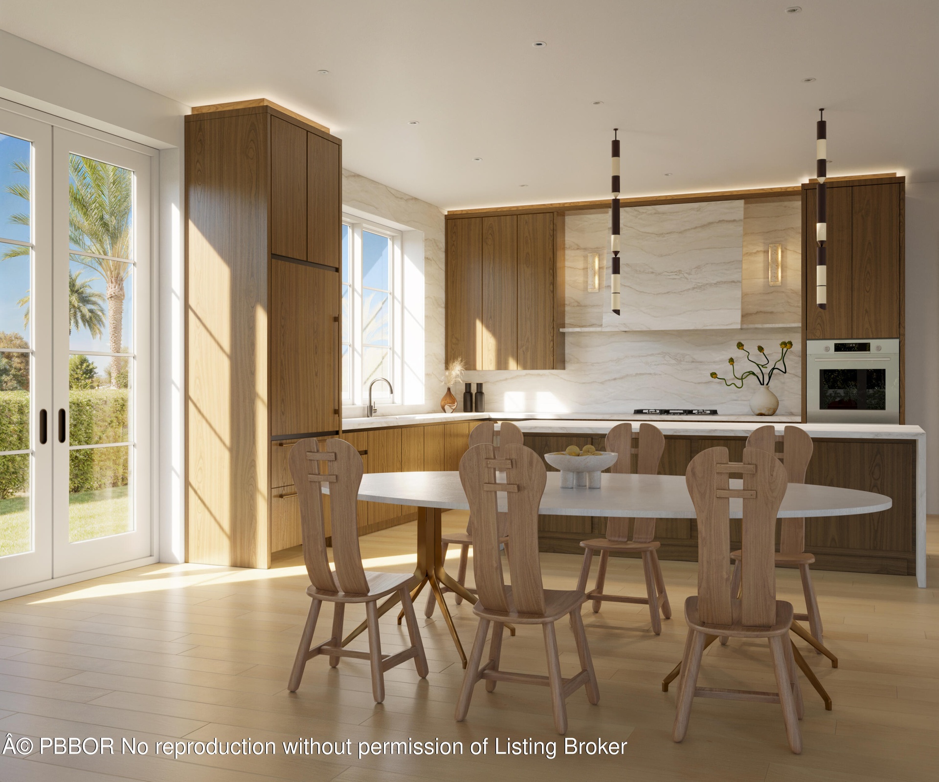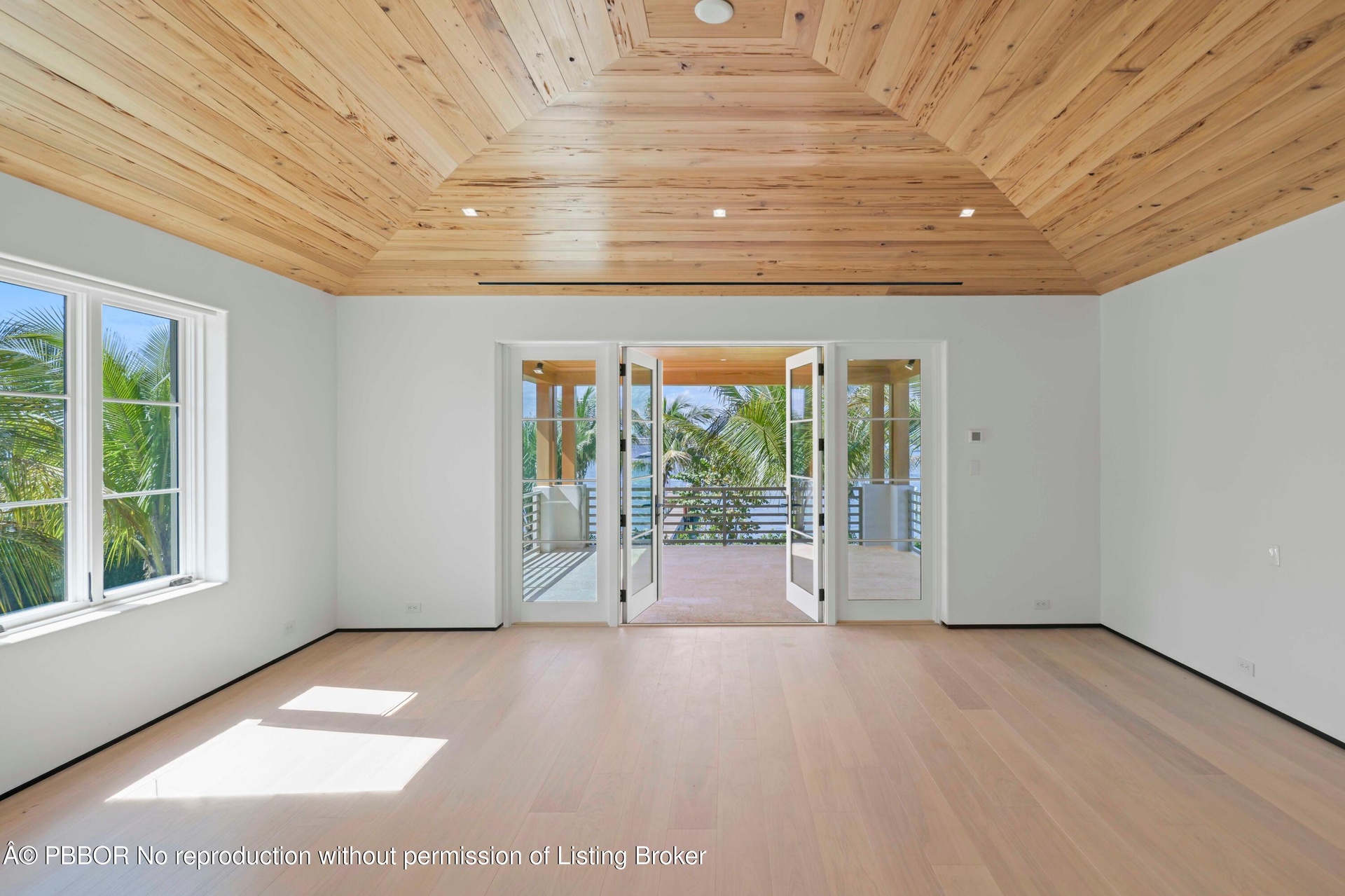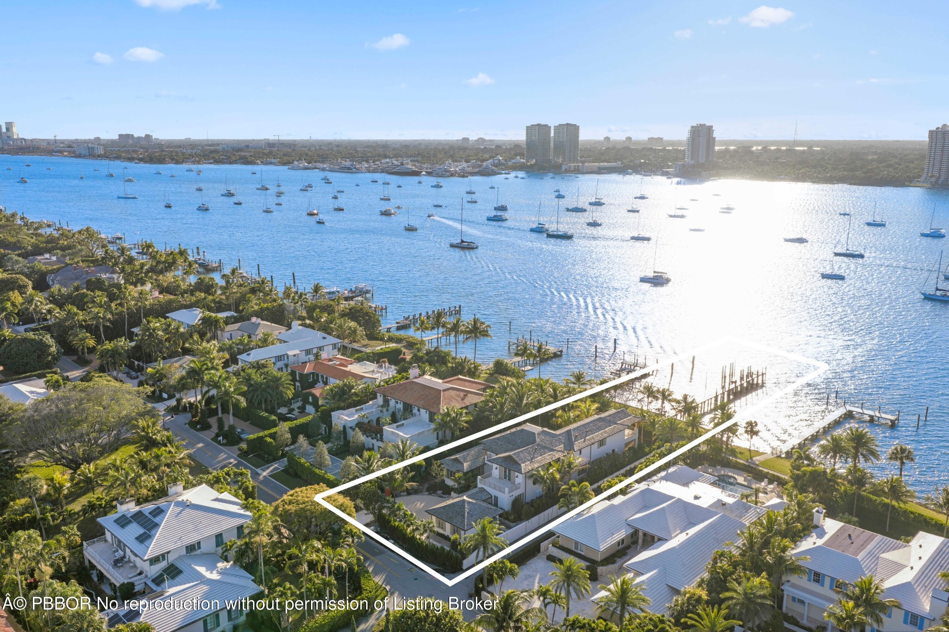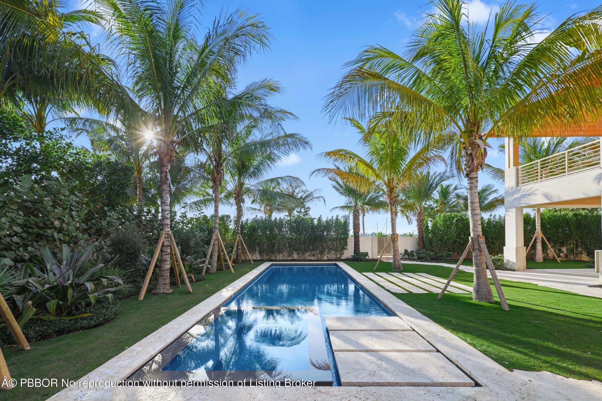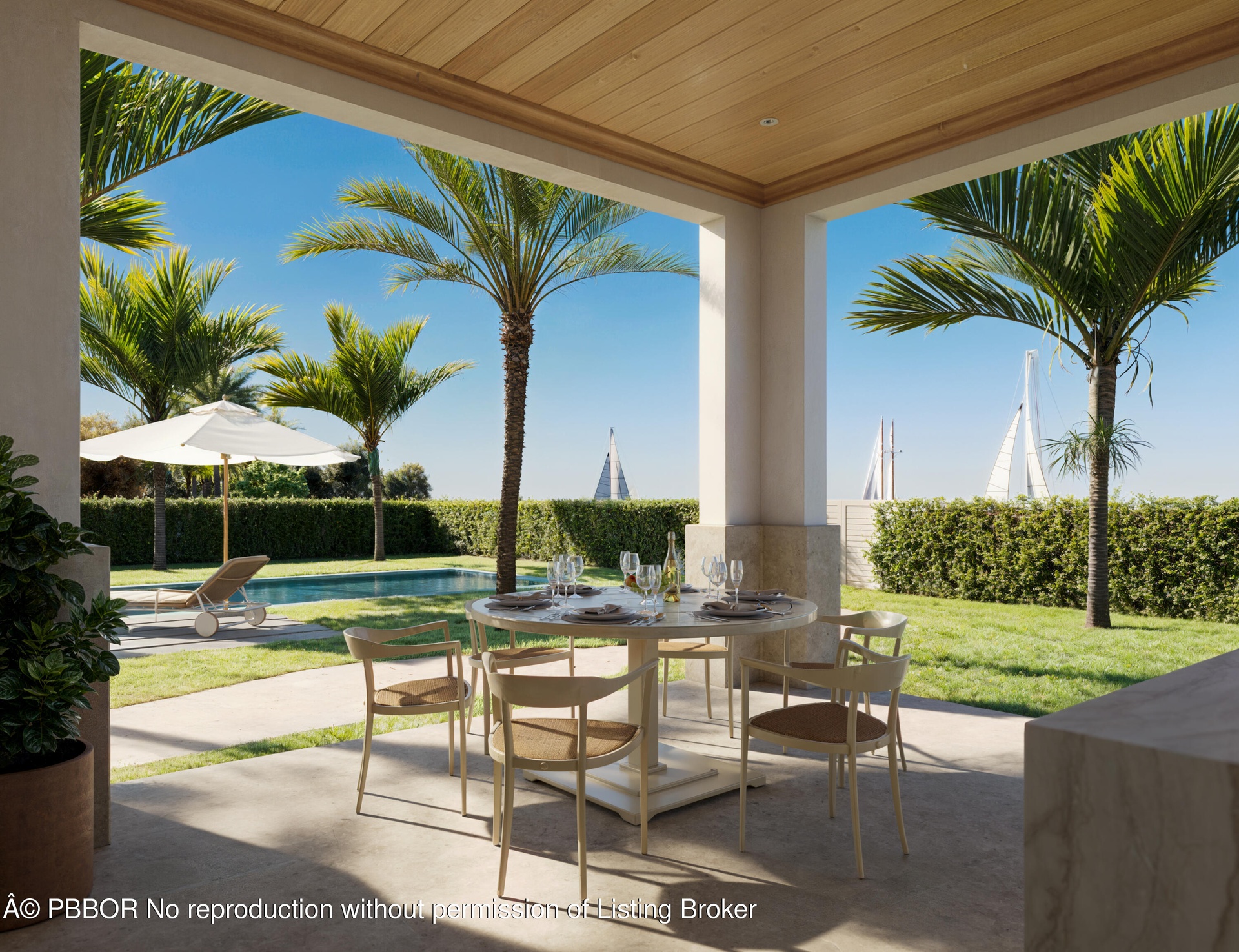 Brand-new construction on North Lake Way built by Wildes Builders and LaBerge and Menard Architect's. Featuring 90 feet of waterfront, a new dock, and luxurious interiors. Upon entering, you are greeted by a grand foyer with Jerusalem Gold limestone flooring that leads into the spacious living areas. The main floor boasts an open kitchen equipped with Gaggenau and Sub-Zero appliances, Taj Mahal stone countertops, an island with seating, and a breakfast area. This space seamlessly flows into the family room, which opens to a covered outdoor loggia overlooking the large pool. Adjacent to the kitchen is a butler's pantry, also outfitted with Taj Mahal stone countertops, and a private dining room for formal gatherings. The separate living room provides additional space for relaxation or or hosting guests. This level also features two powder rooms, a downstairs laundry room, and access to the two-car garage. The home is further enhanced by a whole-house generator for added convenience and security. In addition, this home has a two-car garage with height for car lifts. An elevator or staircase takes you to the second floor, where a beautiful landing area opens to an oversized terrace. The crown jewel of this level is the primary suite, which includes two large walk-in closets and two luxurious bathrooms one with a separate soaking tub and Vanilla Onyx stone finishes, and the other with Grigio Collemandina marble. The primary suite's private terrace faces west, offering breathtaking sunset views over the Intracoastal. This home includes four additional guest bedrooms, each with its own en-suite bathroom. Two are located on the main floor, while the other two are upstairs, one of which features a private terrace. A private office with its own balcony provides a serene retreat for work or relaxation. Deeded beach access on Kenlyn Road.