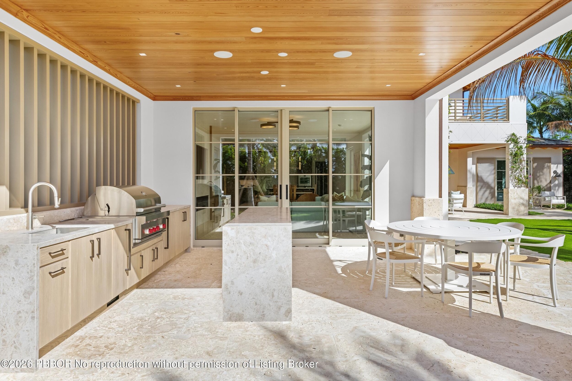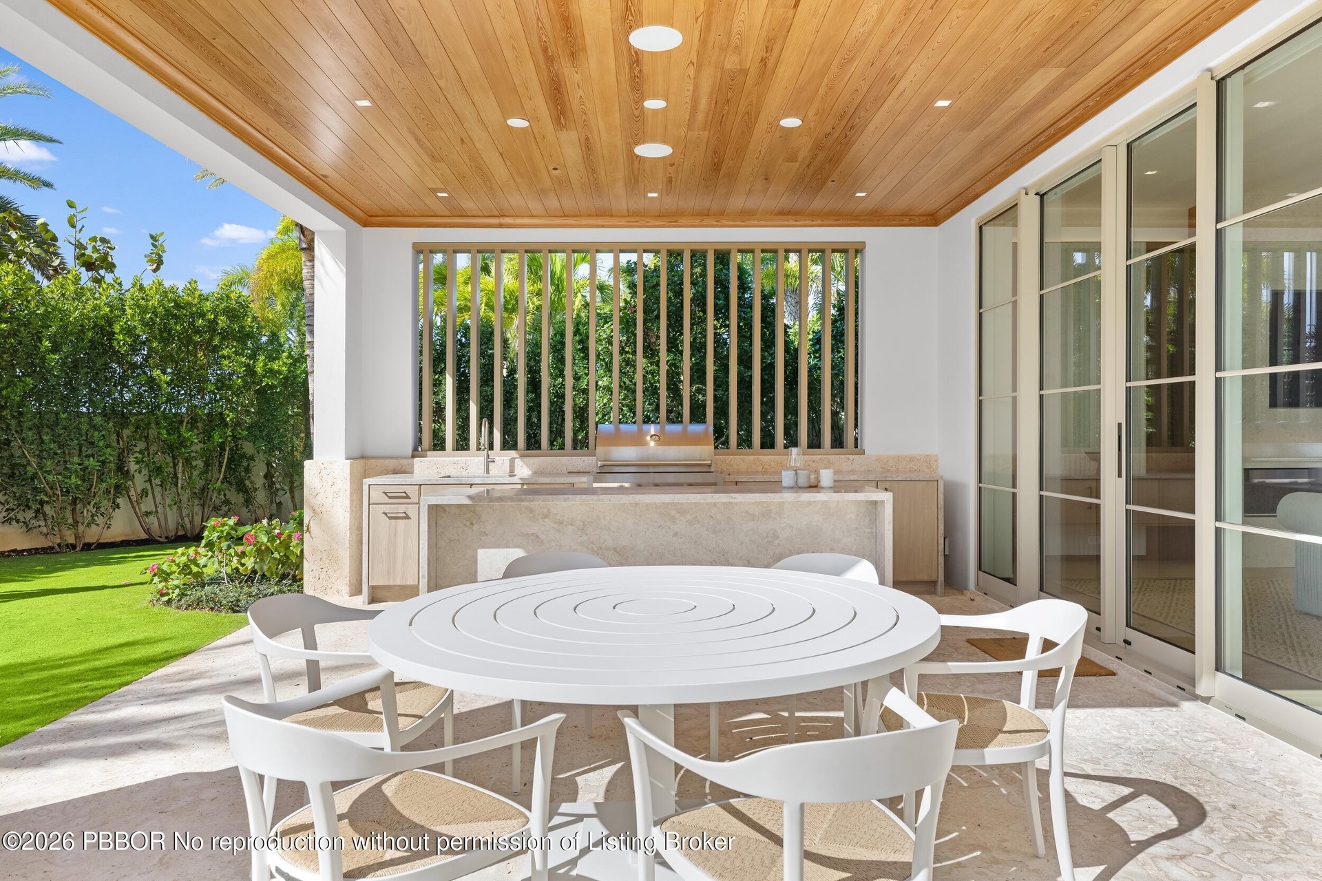 Brand-new construction on North Lake Way built by Wildes Builders and LaBerge and Menard Architect's. Featuring 90 feet of waterfront, a new dock, and luxurious interiors. Upon entering, you are greeted by a grand foyer with Jerusalem Gold limestone flooring that leads into the spacious living areas. The main floor boasts an open kitchen equipped with Gaggenau and Sub-Zero appliances, Taj Mahal stone countertops, an island with seating, and a breakfast area. This space seamlessly flows into the family room, which opens to a covered outdoor loggia overlooking the large pool. Adjacent to the kitchen is a butler's pantry, also outfitted with Taj Mahal stone countertops, and a private dining room for formal gatherings. The separate living room provides additional space for relaxation or or hosting guests. This level also features two powder rooms, a downstairs laundry room, and access to the two-car garage. The home is further enhanced by a whole-house generator for added convenience and security. In addition, this home has a two-car garage with height for car lifts.