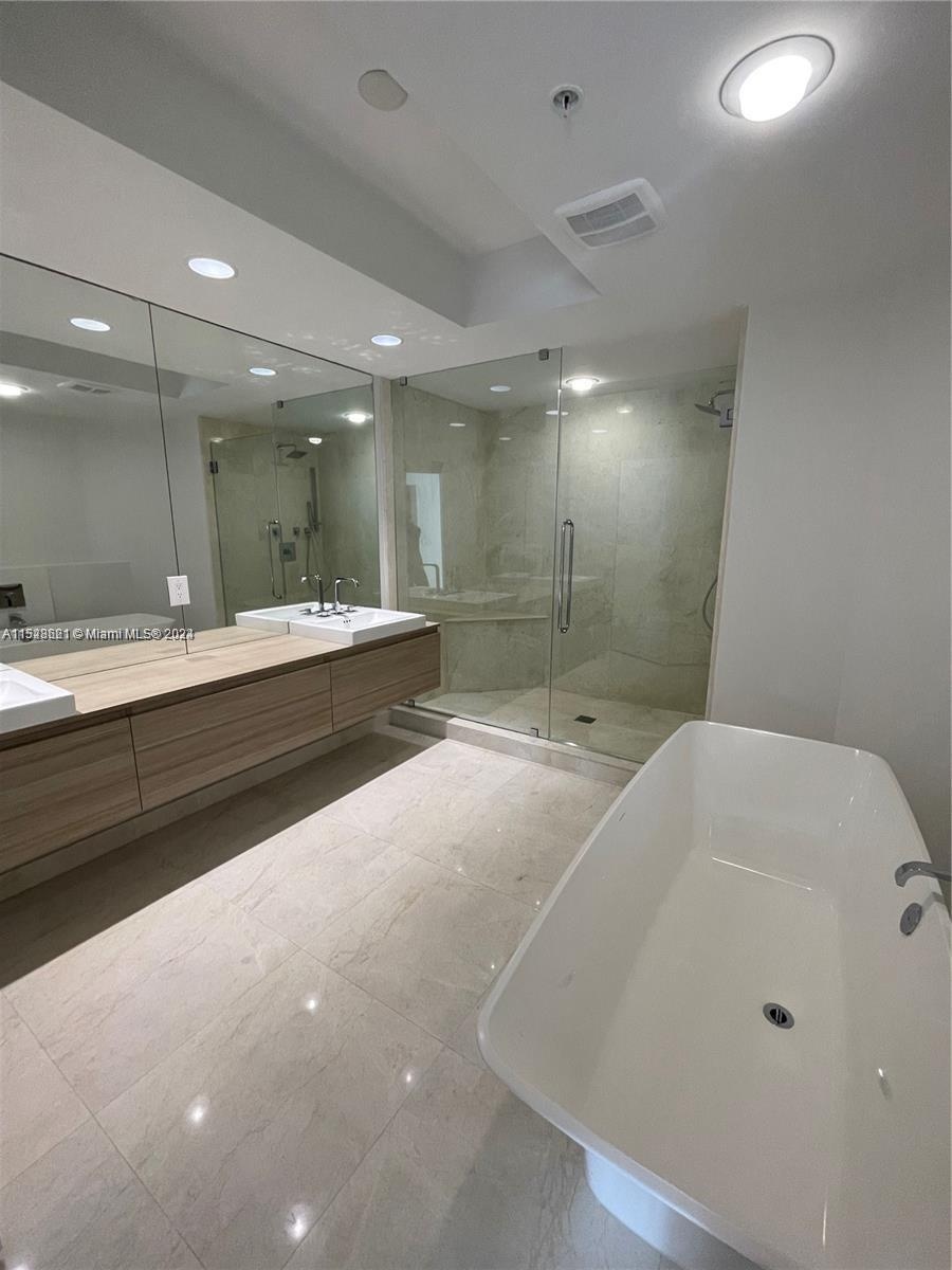 enjoy amazing views of the Intracoastal, in this 2 bed 2.5 bath condo with floor to ceiling windows, large modern kitchen and split floor plan with a freestanding soaking tub in the master bedroom. This building offers extravagant array of luxuries including a spa, pool, fitness center, clubroom, professional studio, activity rooms for kids, 24-hour security, and much more. In addition to the resort-style living offered by Marina Palms, the excellent location of the building provides an endless list of restaurants, parks, etc. Unit is rented for $5900 monthly till August 9th 2026. There is a 60 days' clause. read broker remarks for showings!!!!! Association fees (maintenance) to be confirmed.
