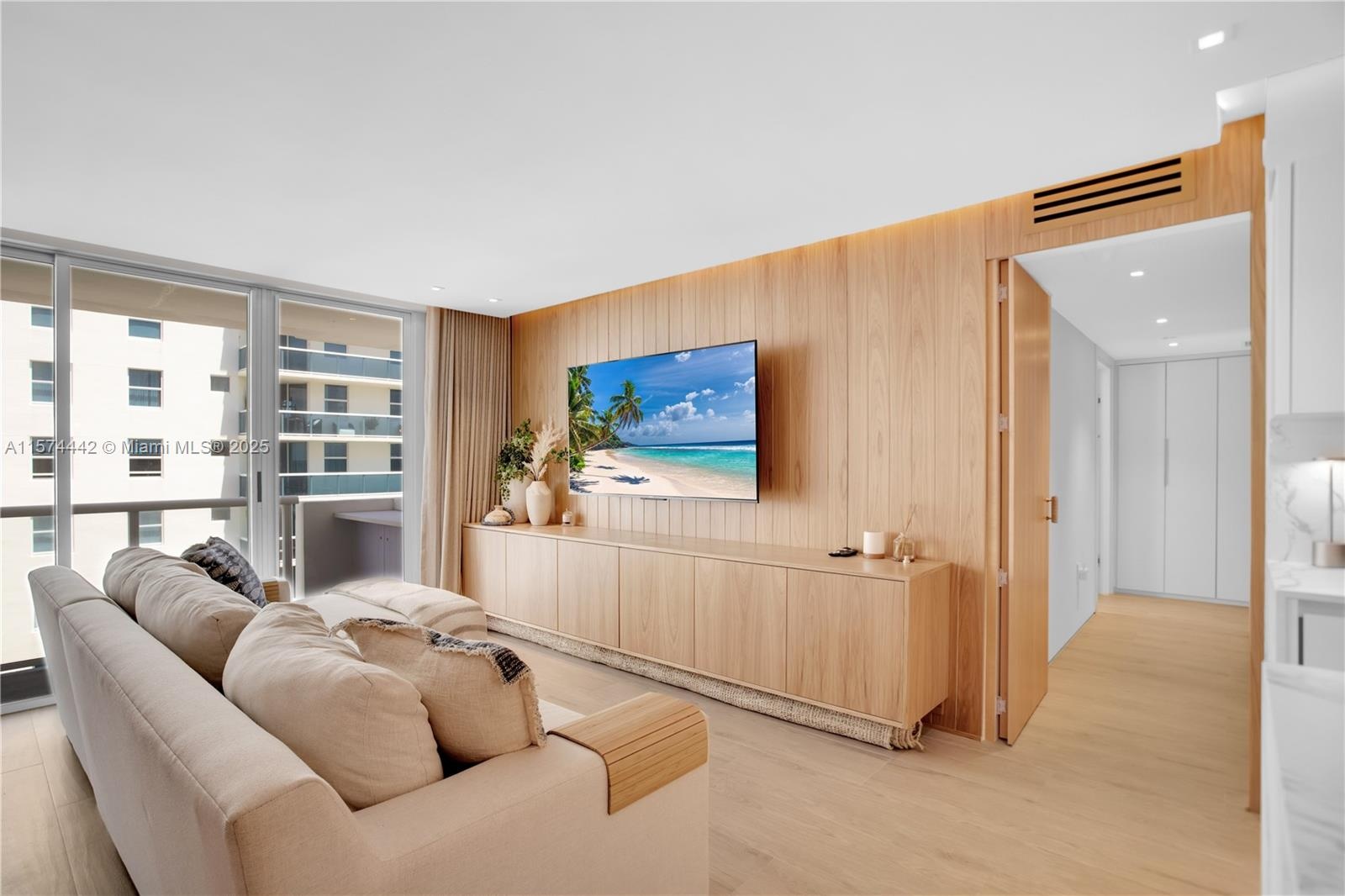 Apt is 2 beds + den, perfect as a 3rd bed. In the heart of Surfside, this residence offers the epitome of coastal chic w/stunning renovations right next door to the prestigious SurfClub! Adorned with italian porcelain wood like floors and exquisite wall coverings. Gourmet kitchen boasts top of the line Smeg appliances, dual wine coolers, marble counters, and Italian cabinetry. The primary suite is a sanctuary of relaxation featuring his/her walk-in closets. The den transitions between a guest room & office. Resort-style living w/ exclusive access to the pool overlooking the beach. Completely furnished with restoration hardware designs in Surfside's most coveted location. Experience luxury beachfront living like never before!