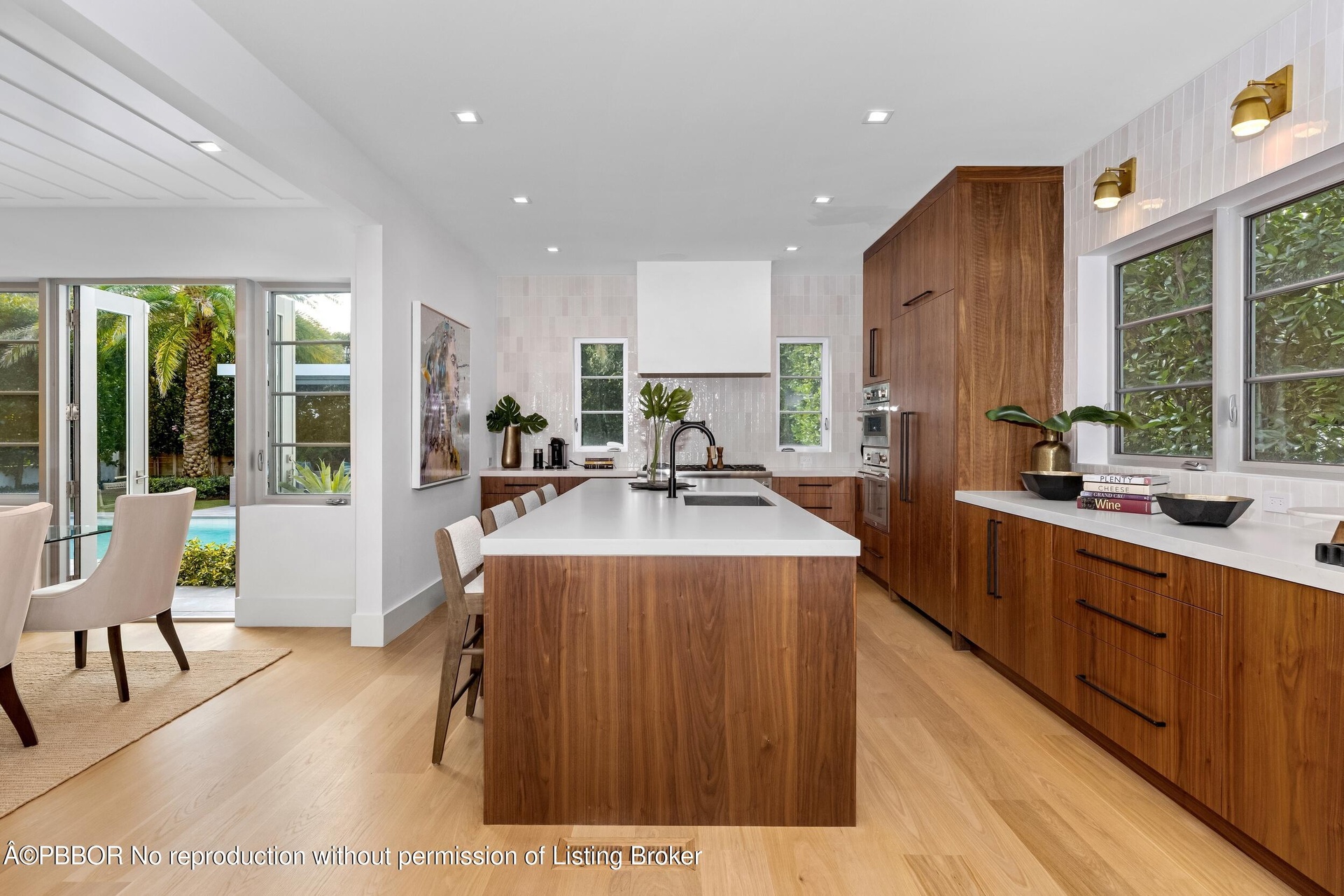 Waterfront 4BR/5.1BA Mid-Century home recently remodeled with beautiful finishes. Fantastic lakefront seating area. Light-filled living room with fireplace and views of the Intracoastal. Gorgeous kitchen with Thermador appliances, custom cabinetry, and oversized island with breakfast bar. Beautiful hardwood flooring and finishes throughout. Stunning resort-style backyard with built-in summer kitchen, covered lounge area, open dining patio, and large pool.