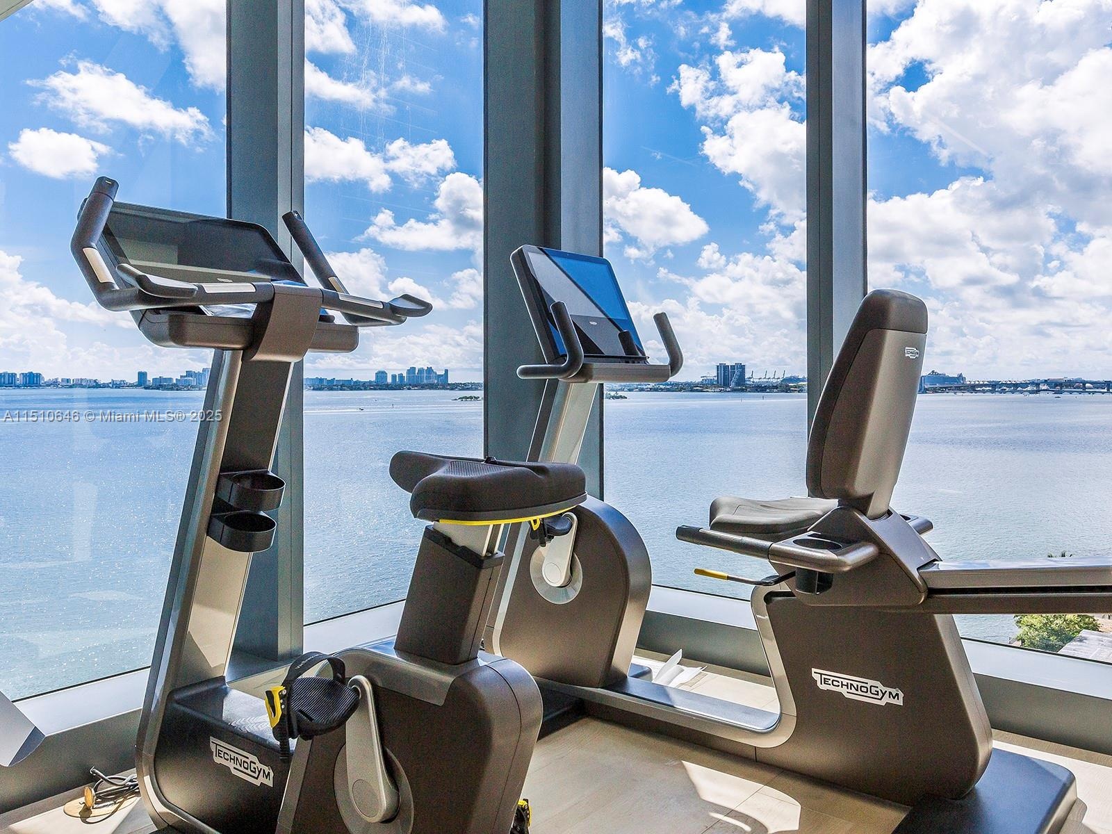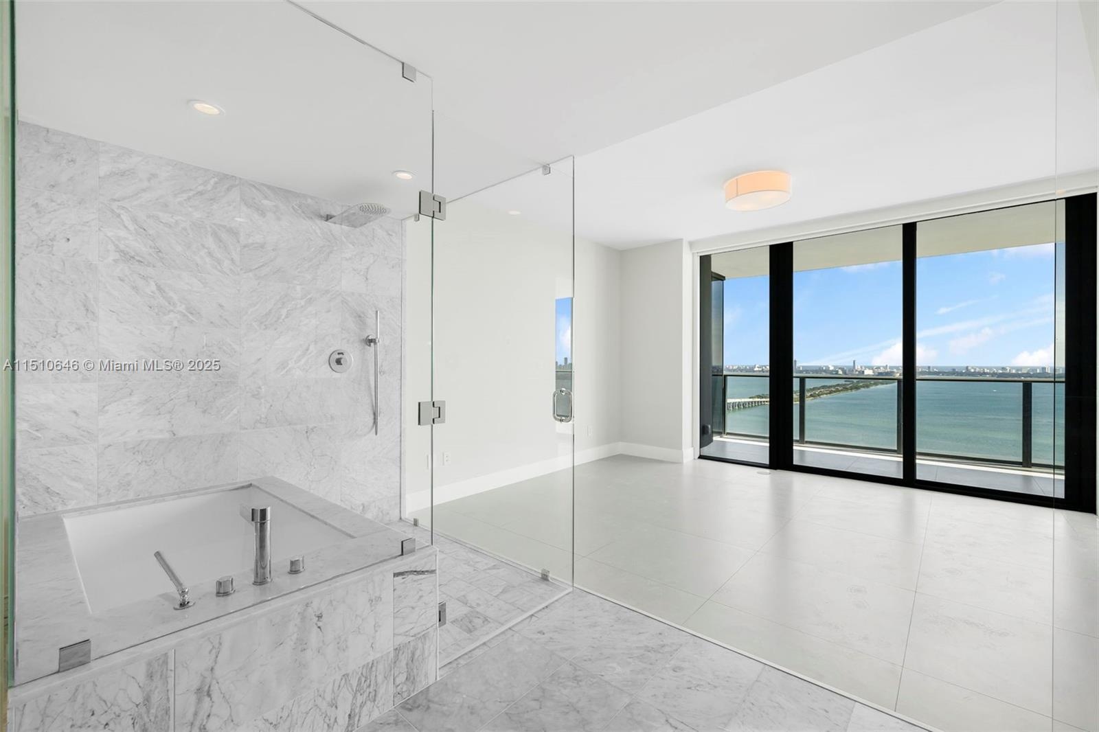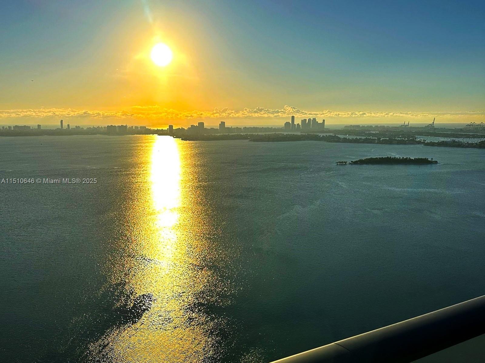 Unobstructed water views of Biscayne Bay, ocean and city from this spacious and bright 1 bedroom + den-office, full bath and half bath. Private elevator foyer, Italian ceramic floors, open kitchen, 9’ floor to ceiling windows, automated shades.