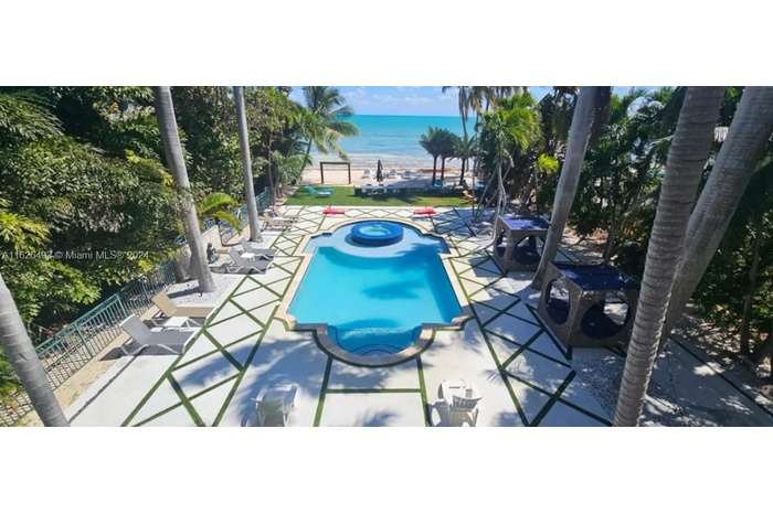 Enjoy endless ocean views and direct access to the white sandy beaches of Islamorada from this oceanfront retreat. Behind your own private gated entrance, this solid concrete block home offers four bedrooms, four full bathrooms, and a cozy loft. Inside, hardwood floors run throughout an open layout featuring a breakfast nook, dining bar, and spacious living area — ideal for entertaining. The chef's kitchen is equipped with stainless steel appliances, a gas stove, and modern finishes. The master suite includes a private balcony overlooking the updated saltwater pool and a jetted tub for ultimate relaxation. This one-of-a-kind property also allows weekly rentals, making it a strong investment in one of the Keys' most sought-after locations.