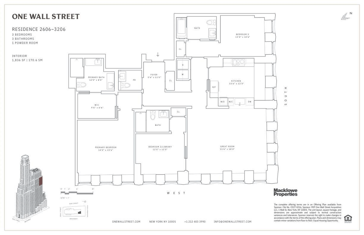 Move In Ready ! Residence 2806 is a 1836 SF, three bedroom, three bathroom apartment within One Wall Street.