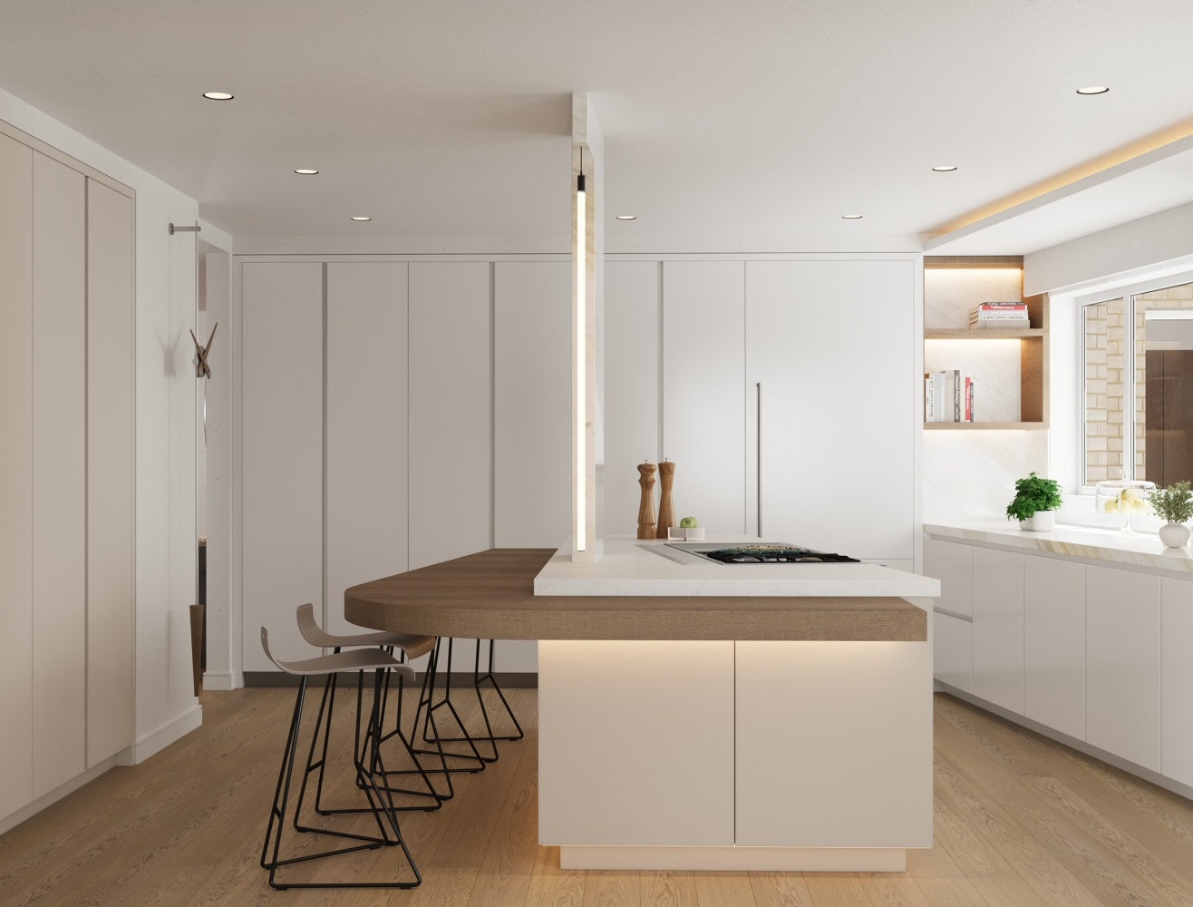 Chef's Dream Kitchen: The Poliform kitchen is a masterpiece of design, combining natural veneer and fine lacquer finishes with natural stone countertops, a full backsplash, and an appliance garage. The space is outfitted with a Sub-Zero appliance suite, Gaggenau cooktop, and Bosch laundry machines.