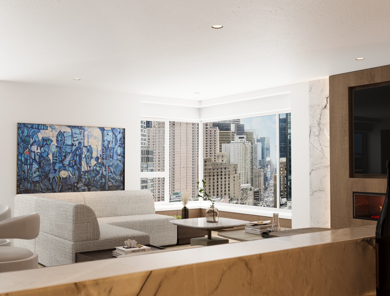 Breathtaking Views and Versatility: Expansive windows and sliding privacy panels ensure seamless transitions between open entertaining spaces and private retreats, all while showcasing sweeping views of Central Park and the city skyline.