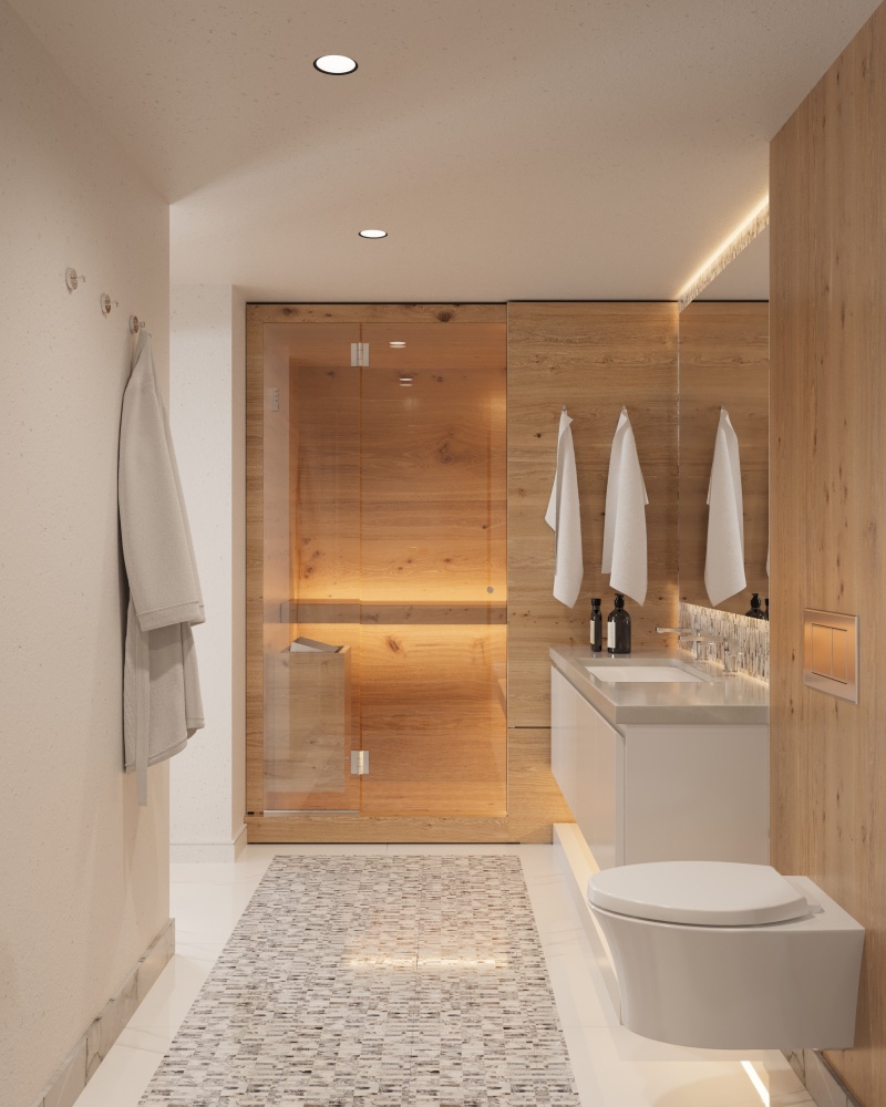 Sophisticated Design Details: Natural oak wood floors, deep blue natural stone accents, linear fireplaces, and artistic tilework bring warmth and elegance to every room.