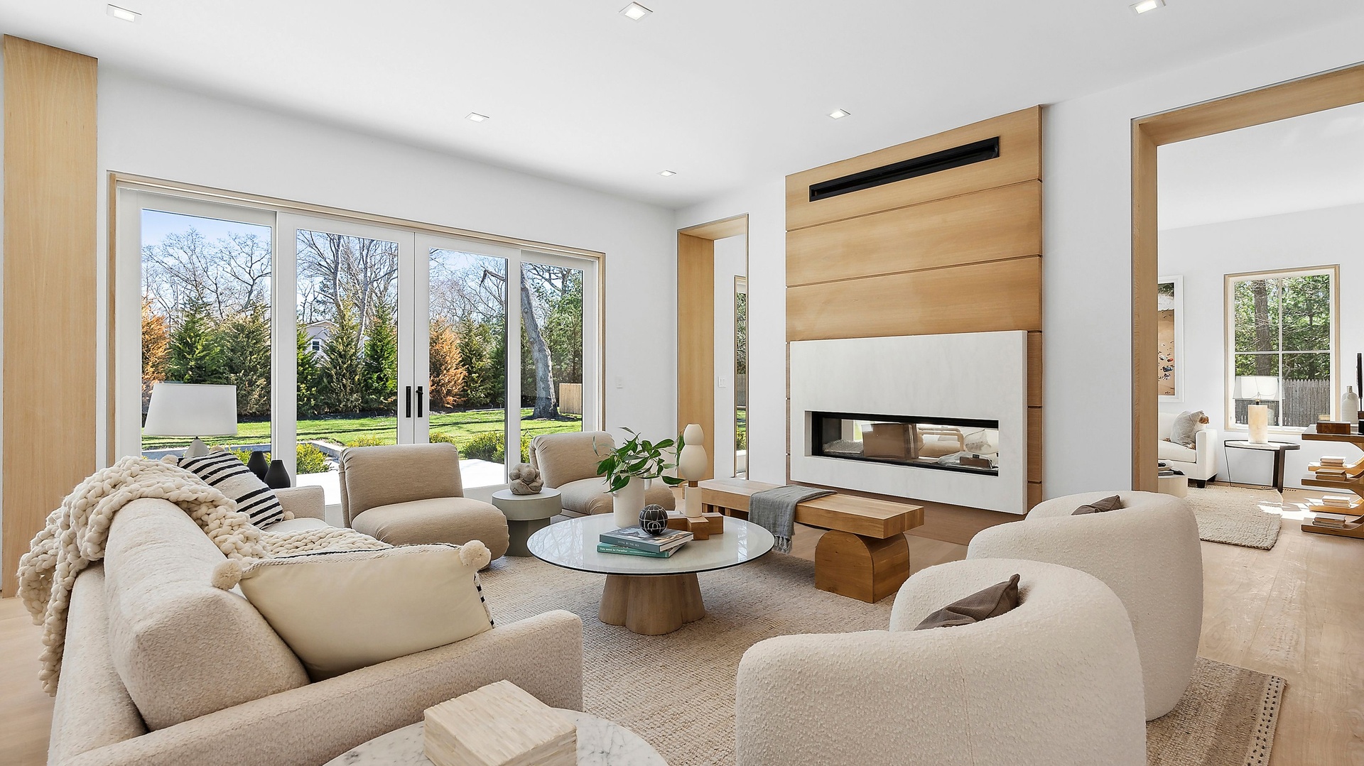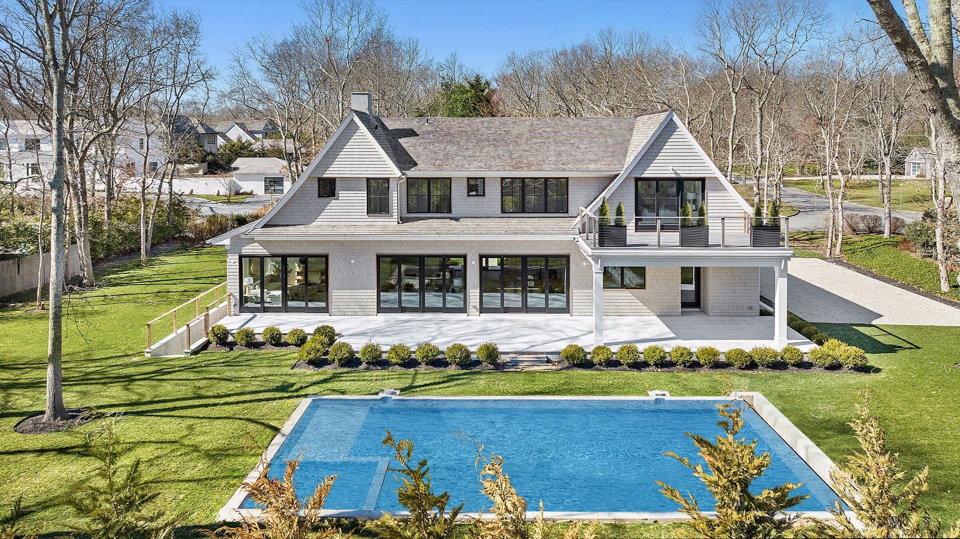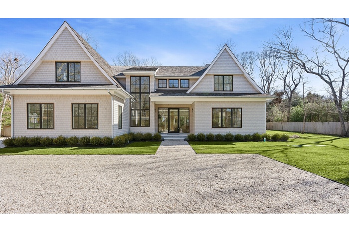 This newly built residence spans over half an acre, boasting around 6,000 sq. ft. spread across three levels. Upon entry, a grand double-height foyer leads seamlessly into the open-plan great room, kitchen, and breakfast area. Adjacent to the main living space, a versatile den offers options for office or entertainment use. The first floor includes an en-suite guest room with coffered ceilings and a walk-in closet, alongside a 2-car garage accessible through a mudroom. Upstairs, a luxurious primary suite with multiple walk-in closets and a lavish bathroom opens onto a private terrace. Completing the second level are three additional en-suite bedrooms. The fully finished lower level provides various amenities, including a recreation room, enclosed gym, guest bedroom, and full bathroom. Sliding doors facilitate access to the backyard patio area with a covered porch and outdoor barbecue. A brand-new pool, surrounded by meticulously landscaped grounds and ample lawn space, completes this outdoor retreat. Set to be finished in 2024, this residence enjoys a prime location close to both Bridgehampton and Sag Harbor.