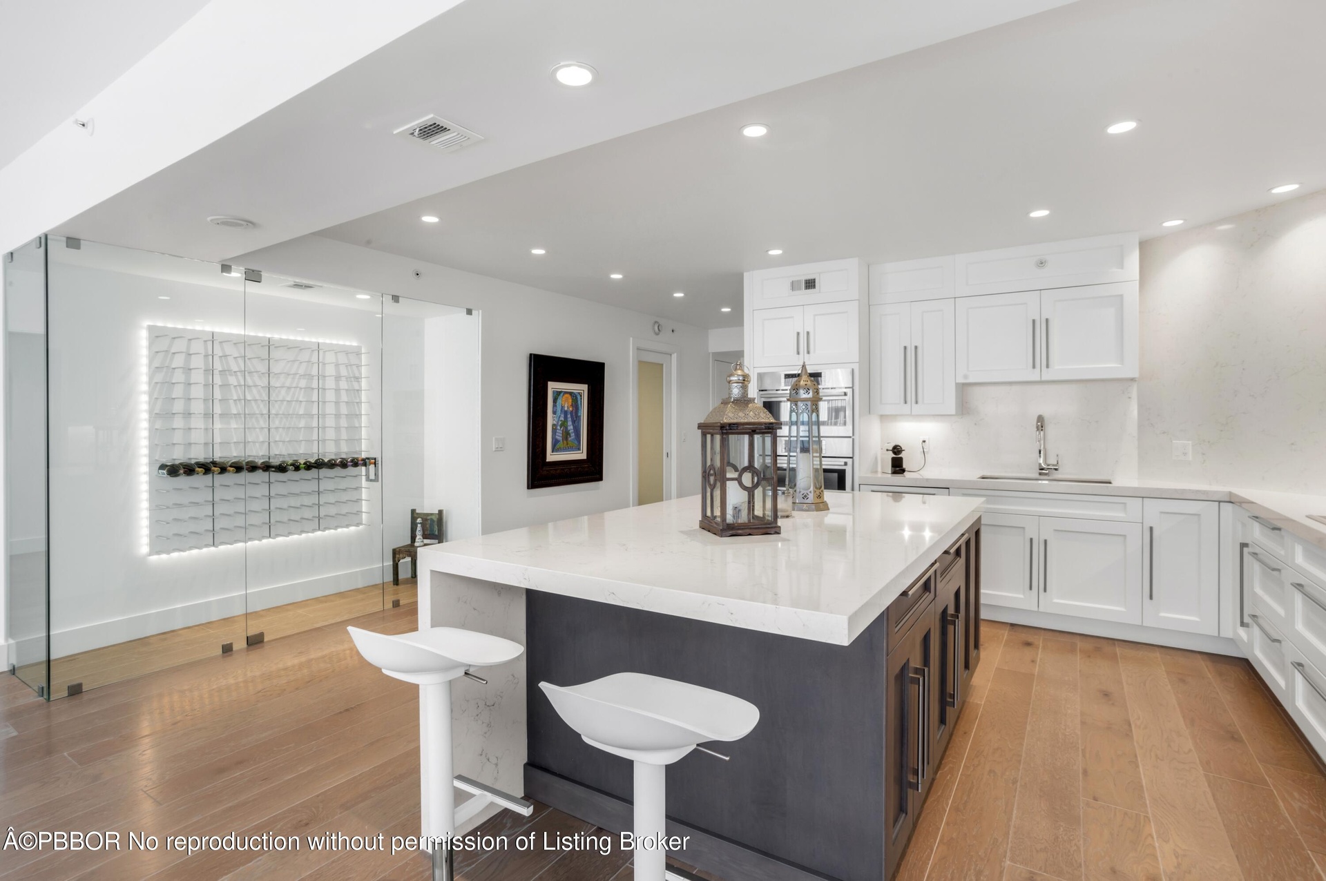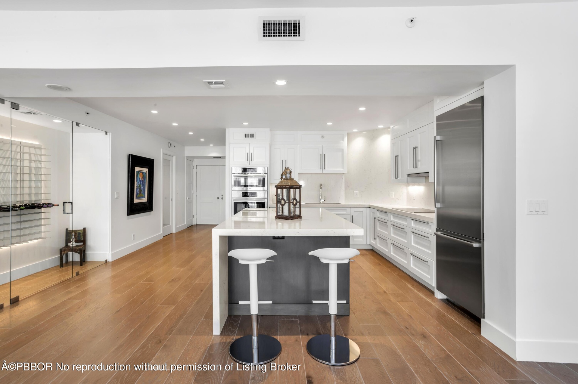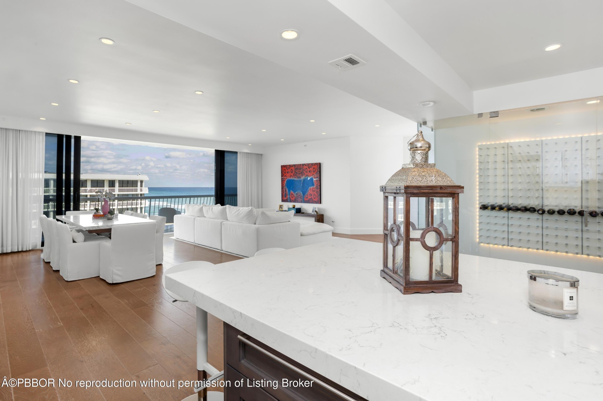 Stylish, renovated 6th floor apartment with sweeping views of the ocean to the East and beautiful Intracoastal views to the West. The open plan kitchen facing a glass-enclosed wine wall, features top-of-the-line appliances and exquisite finishes. The spacious master suite has panoramic water views and oversized built-in closets plus a large en suite bathroom.