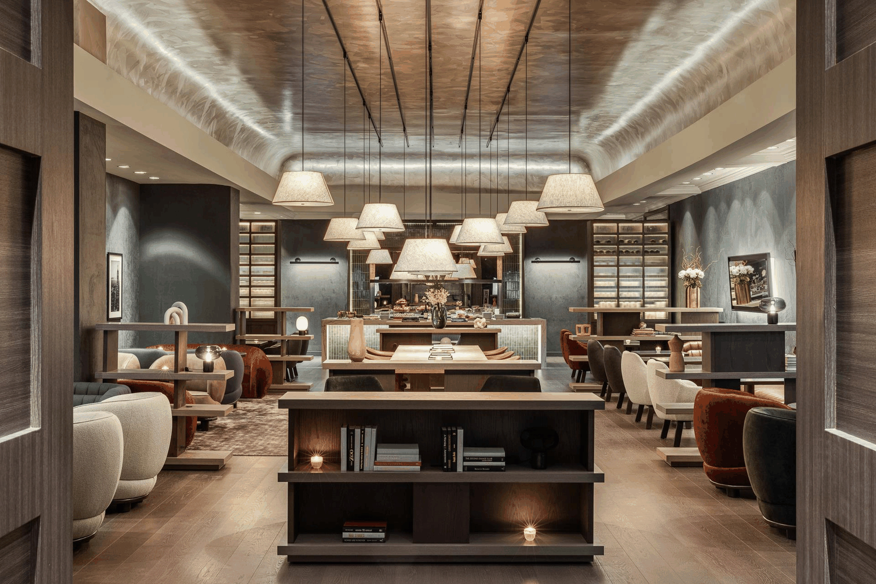 The primary bedroom suite features a generous walk-in closet an elegant primary bathroom with Greek Bianco Dolomiti stone vanity and backsplash, Turkish Fiore di Bosco stone walls and flooring, and polished nickel Waterworks fixtures. The primary suite also has access through the bedroom to the terrace.