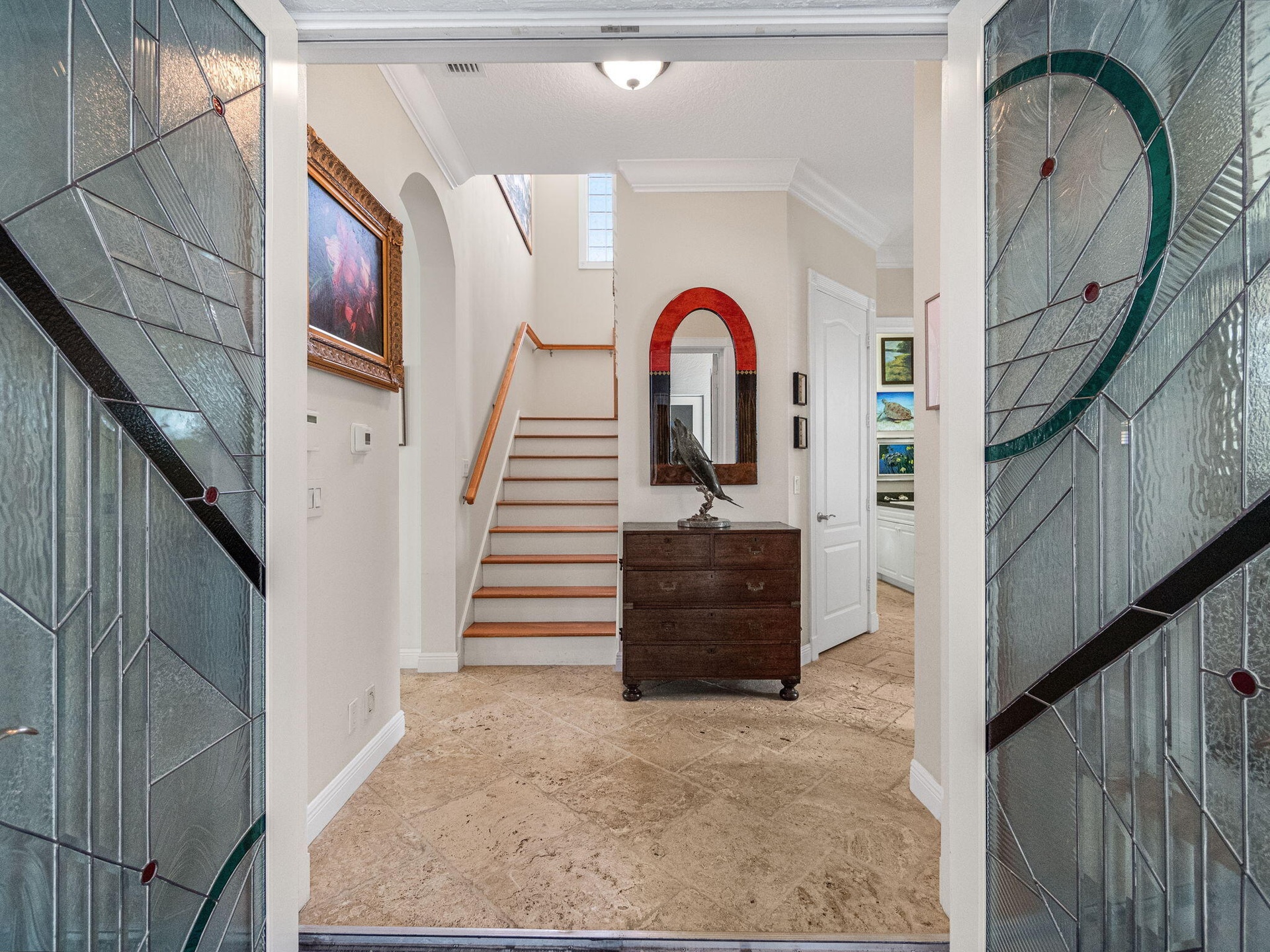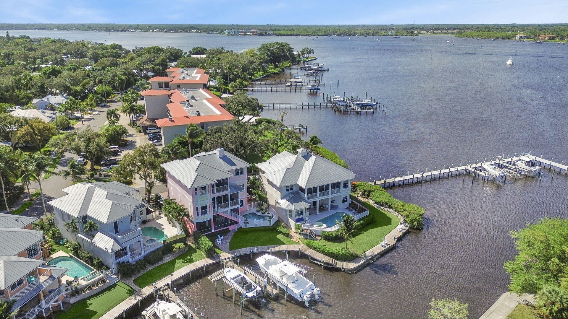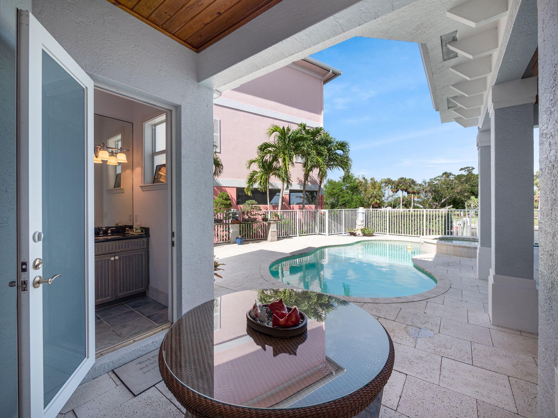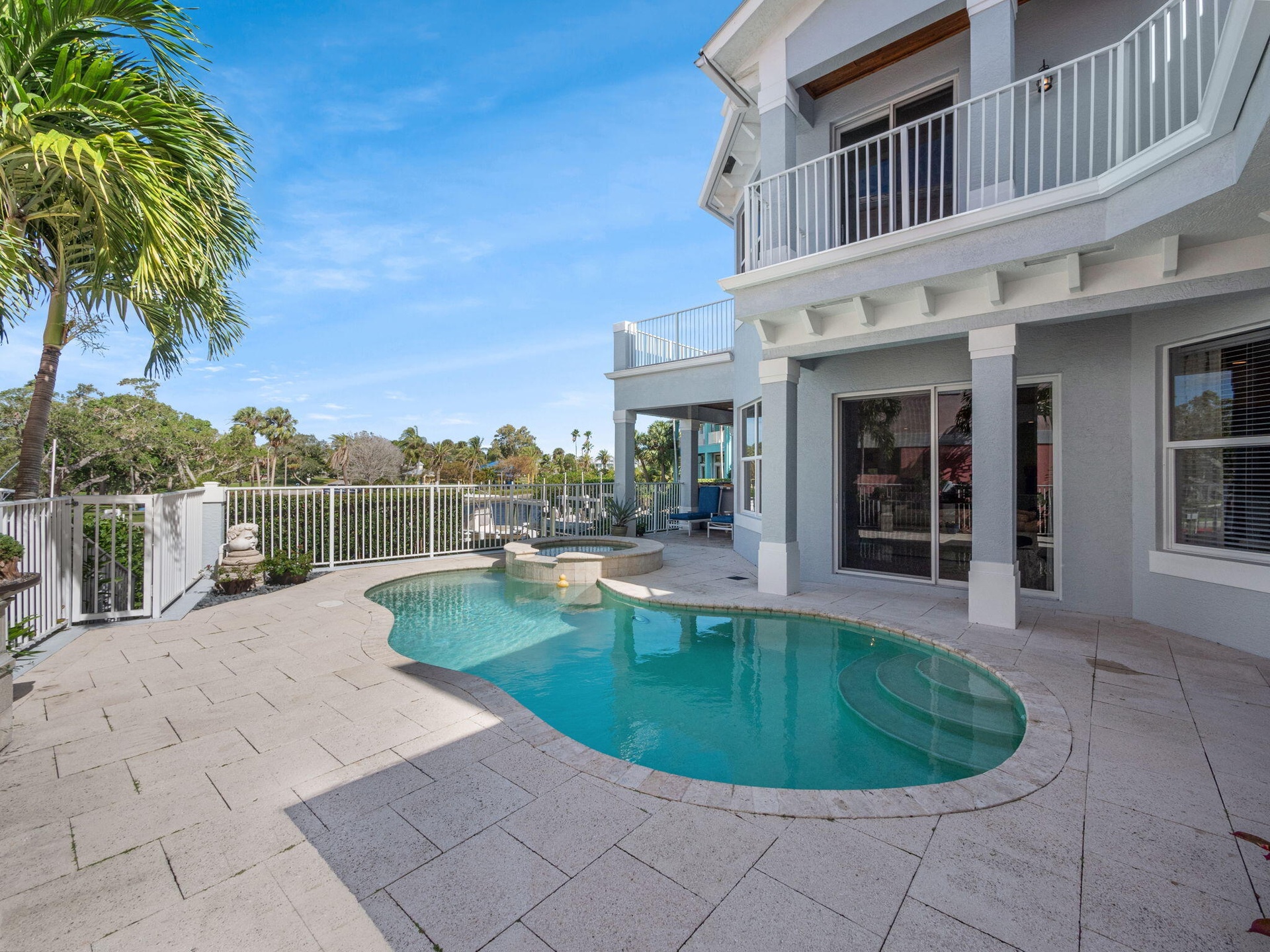 Downtown location with a private boat slip directly behind your home! This residence checks all the criteria including: CBS construction, impact windows & doors, oversized two car garage, pool with spa, outdoor kitchen with new chef's stainless grill. Inside the kitchen serves as the heart of the home, with gas stove, oversized Liebherr refrigerator & freezer. Serene downstairs office, half bathroom, & ample storage closet complete the first-floor plan. Upstairs, find the main suite with oversized walk-in closet, & wrap around balcony. Two more beds & baths compliment the upstairs living. Outside, the home shines, ample dockage with power & water available to add boat lift, protected cove location, & cabana bath. Home is part of a small, 6 luxury home association.