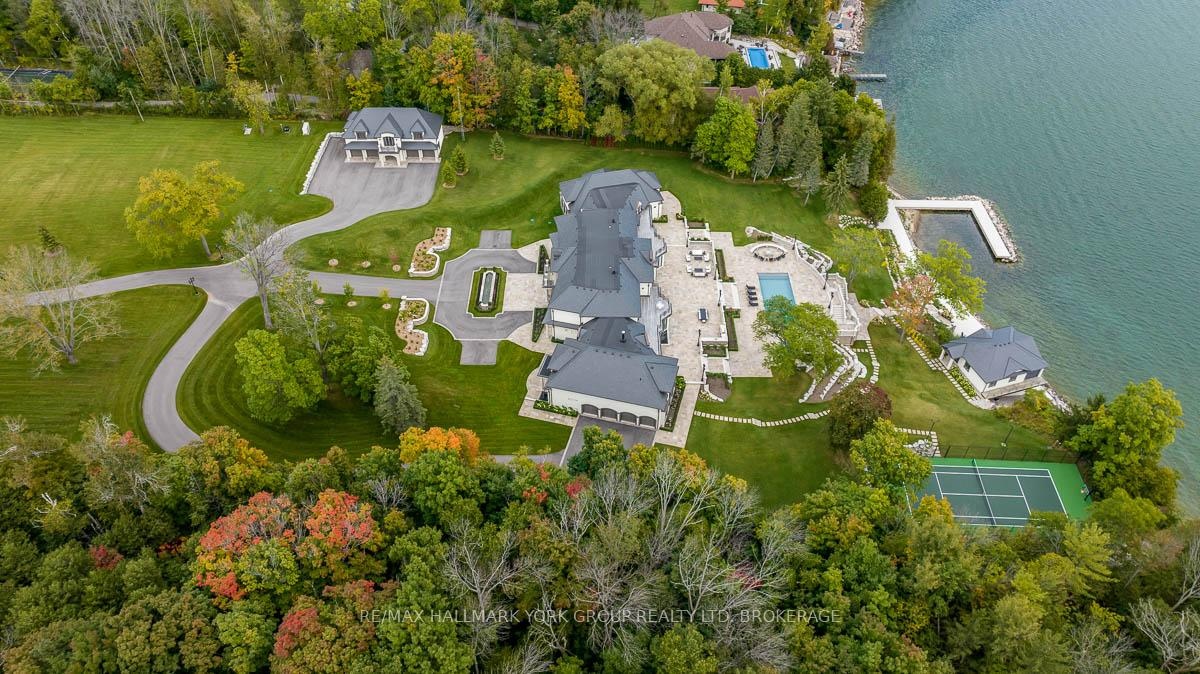 Welcome to this exquisite waterfront estate nestled on sprawling 10 acres. The palatial mansion is truly a masterpiece, offering breathtaking vistas of Kempenfelt Bay on Lake Simcoe. Boasting expansive views of blue water, complemented by a range of luxe amenities. Featuring garage space for 8-cars, an indoor pool and spa, an outdoor pool and meticulously terraced grounds and tennis court. Boathouse with a finished loft and separate 3-bedroom gate house ensure ample space for guests, Designer interiors impress with gorgeous custom chef's kitchen. The primary suite offers an enormous walk-in closet, dressing room and spa-like bathroom. Towering trees line the winding drive that leads to this private oasis, located just a 1-hour drive from Toronto and 10 minutes to private airport. With 385 feet of shoreline, a private pier and unparalleled beauty both inside and out, this waterfront estate is truly a dream come true. **EXTRAS** Local Lake Simcoe Regional Airport supplies full service for private jets, helicopters and charters. Situated in the historic hamlet of Shanty Bay, one of Ontario's most desired areas for country homes and private waterfront estates.