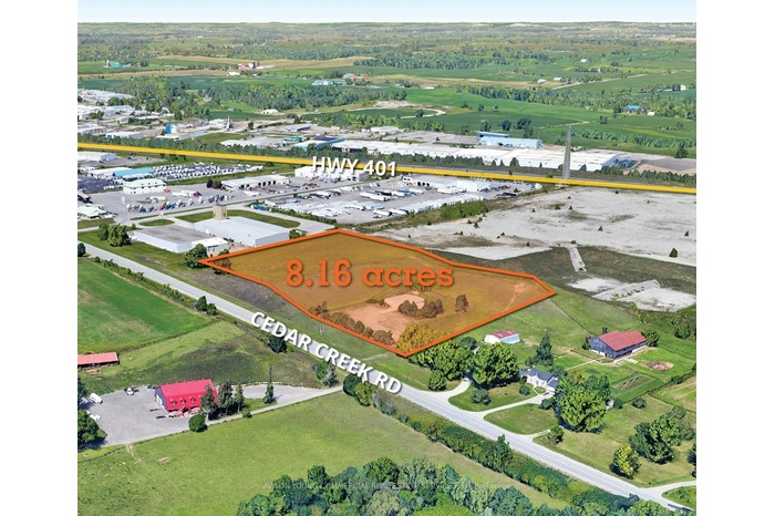 Opportunity for users and developers to acquire a vacant 8.16 acre industrially-zoned parcel of land, strategically located just south of Highway 401 and within a short drive of access ramp. Small "Butler" storage building also located on site (approx. 3,500 sf). **EXTRAS** Property being sold by Court-appointed Receiver on an "as is, where is basis" and all buyers must rely upon their own investigations and due diligence.