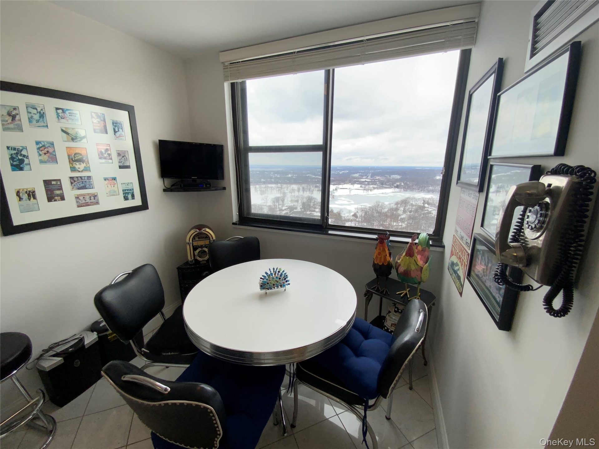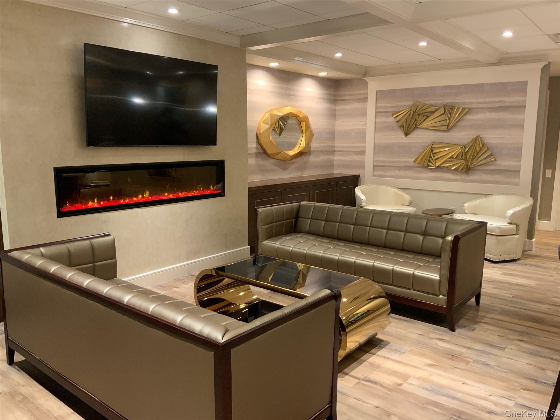 - Living area featuring recessed lighting, crown molding, and expansive windows