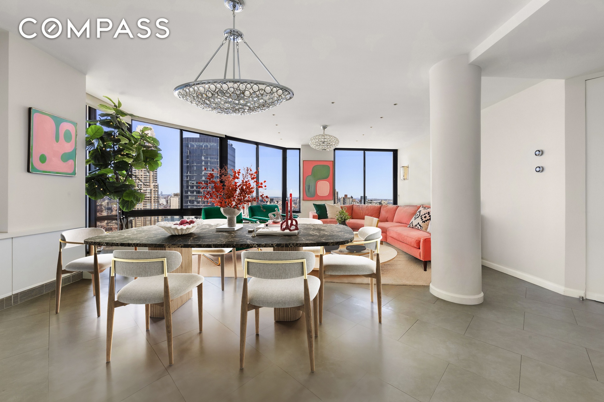 Welcome to Residence 38AD at The Rio. This gut renovated two bedroom two bathroom home combined two apartments to create a seamless modern space in the sky. Spanning an entire half floor the unit features two private terraces, floor to ceiling windows, and City, River, and Central Park views.