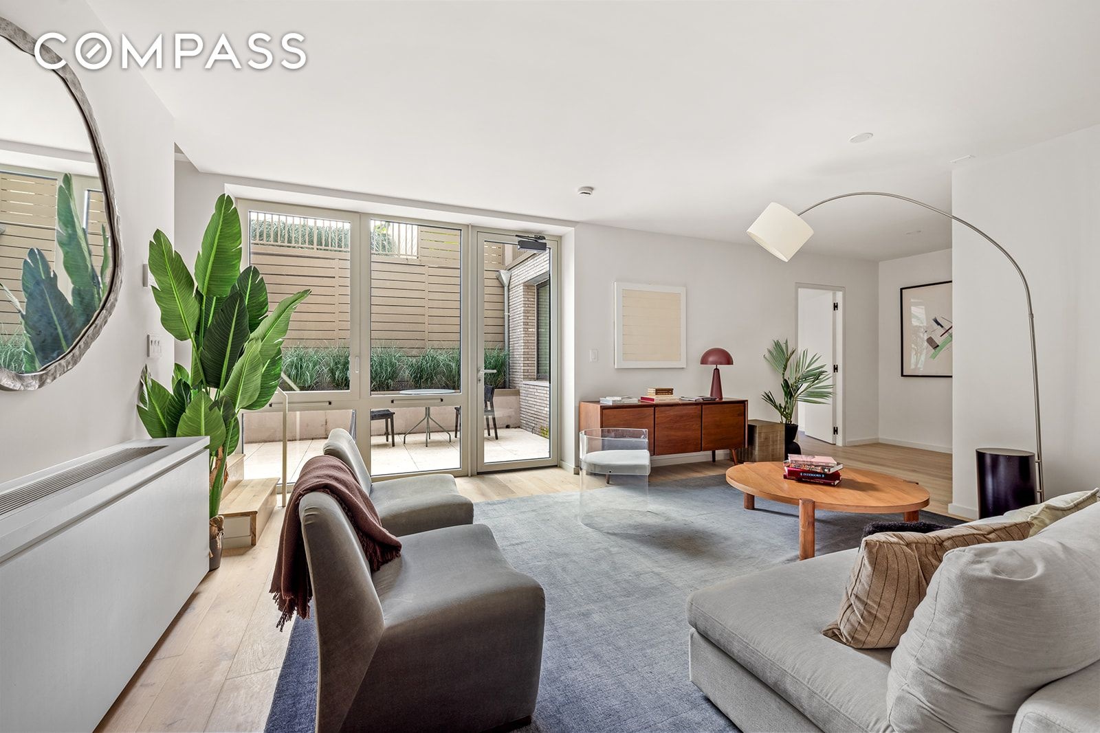 Residence 1A is a spacious 1,611-square-foot 2-bedroom, 1.5-bathroom home with over 300 feet of private outdoor space that embodies elevated design and thoughtful craftsmanship. This custom residence features stunning cerused white oak hardwood floors, multi-zoned heating and cooling, and a Bosch Axxis washer/dryer, all seamlessly integrated into a sleek, contemporary aesthetic.