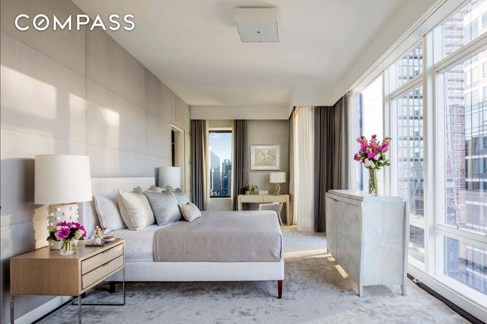 Extraordinary & rare opportunity to purchase two full floor apartments with a private hallway to create a duplex on the 42nd and 43rd floor at the Baccarat with an elevator leading to both floors and a private hallway. This impeccable, turnkey two full-floor apartment, available for sale fully furnished with designer furniture, curtains, carpets, light fixtures, and more. Spanning 9,275 square feet, this luxurious residence offers 8 bedrooms, 8 full baths, 2 half baths, and breathtaking 360-degree views from every room through floor-to-ceiling windows with automatic shades. With grand 11 ft ceilings and an abundance of natural light, it feels as if you are floating above Manhattan. The four exposures provide iconic views of One World Trade Center, the Empire State Building, the Chrysler Building, Central Park, the Hudson River, and other NYC landmarks, making Residence 4243A one of the most desirable private homes in Manhattan.