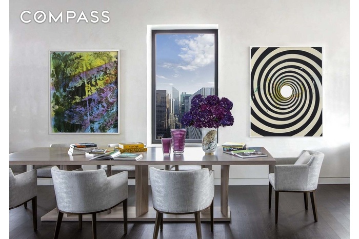 This spectacular 4,730 square foot private floor home offers 4 bedrooms, 4.5 baths and 360-degree views through floor-to-ceiling windows with automatic shades throughout and four exposures providing views of One World Trade Center, Empire State Building, Chrysler Building, Central Park, Hudson River and other iconic NYC Landmarks.