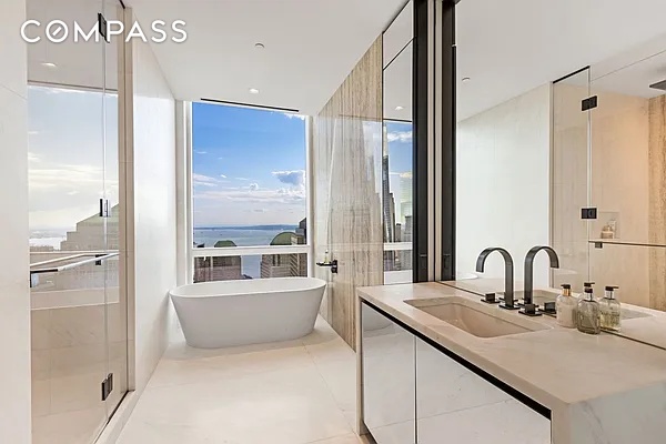 Welcome to the 44th floor of 111 Murray, a stunning 3-bedroom, 3.5-bathroom residence with breathtaking panoramic views of the Hudson River and beyond. With soaring 11'-6" ceilings, floor-to-ceiling windows, and thoughtfully designed interiors, this home offers a truly elevated lifestyle.