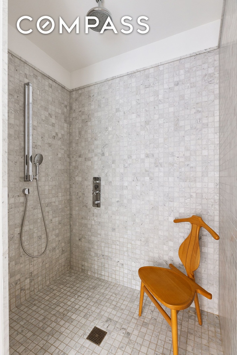 Take the modern open cement floating staircase down to reach the bedroom level of this impressive home. The corner primary suite has 3 double wide closets, south and eastern exposures and an ensuite marble bath. The windowed primary bathroom has a large vanity with double sinks, a sculptural soaking tub and a generous walk-in shower with rain dome shower head and handheld. Down the spacious hallway you will find two additional bedrooms, one with a corner ensuite bath with double sinks and large stall shower, and a full hall bathroom. There is also an in unit W/D on this floor.