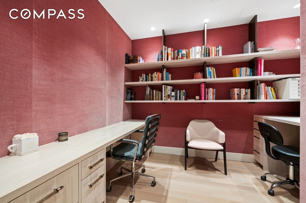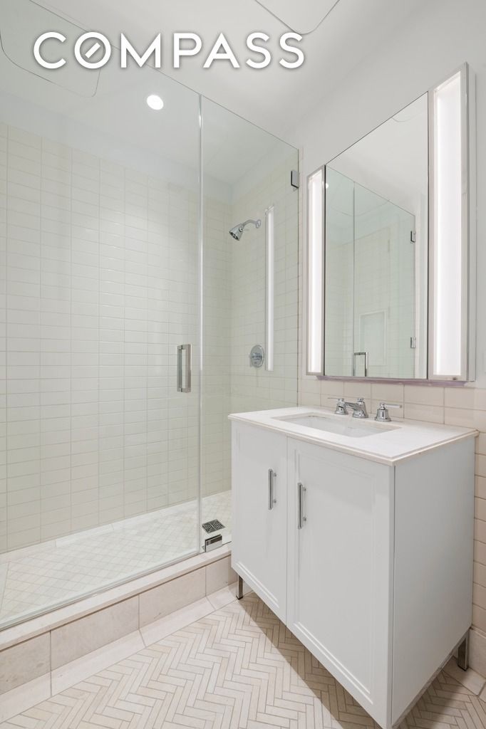 Additional highlights of the incredibly special offering include gorgeous, rift-cut white oak flooring in both straight plank and chevron patterns, multi-zoned heat and central AC, custom lighting and blinds and enviable closets and storage space throughout. A storage unit is conveyed with the sale.