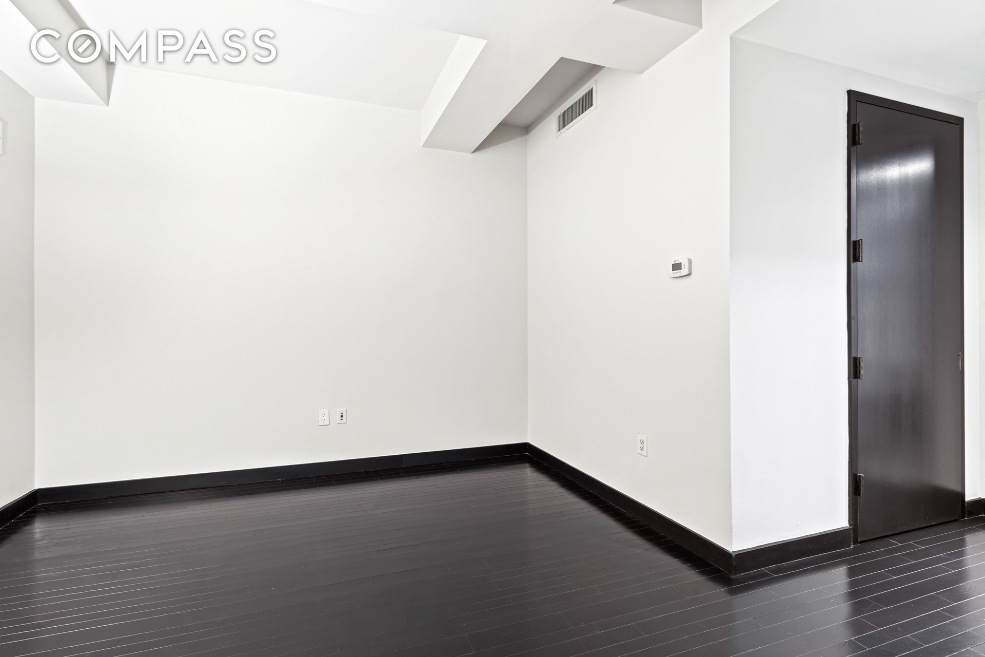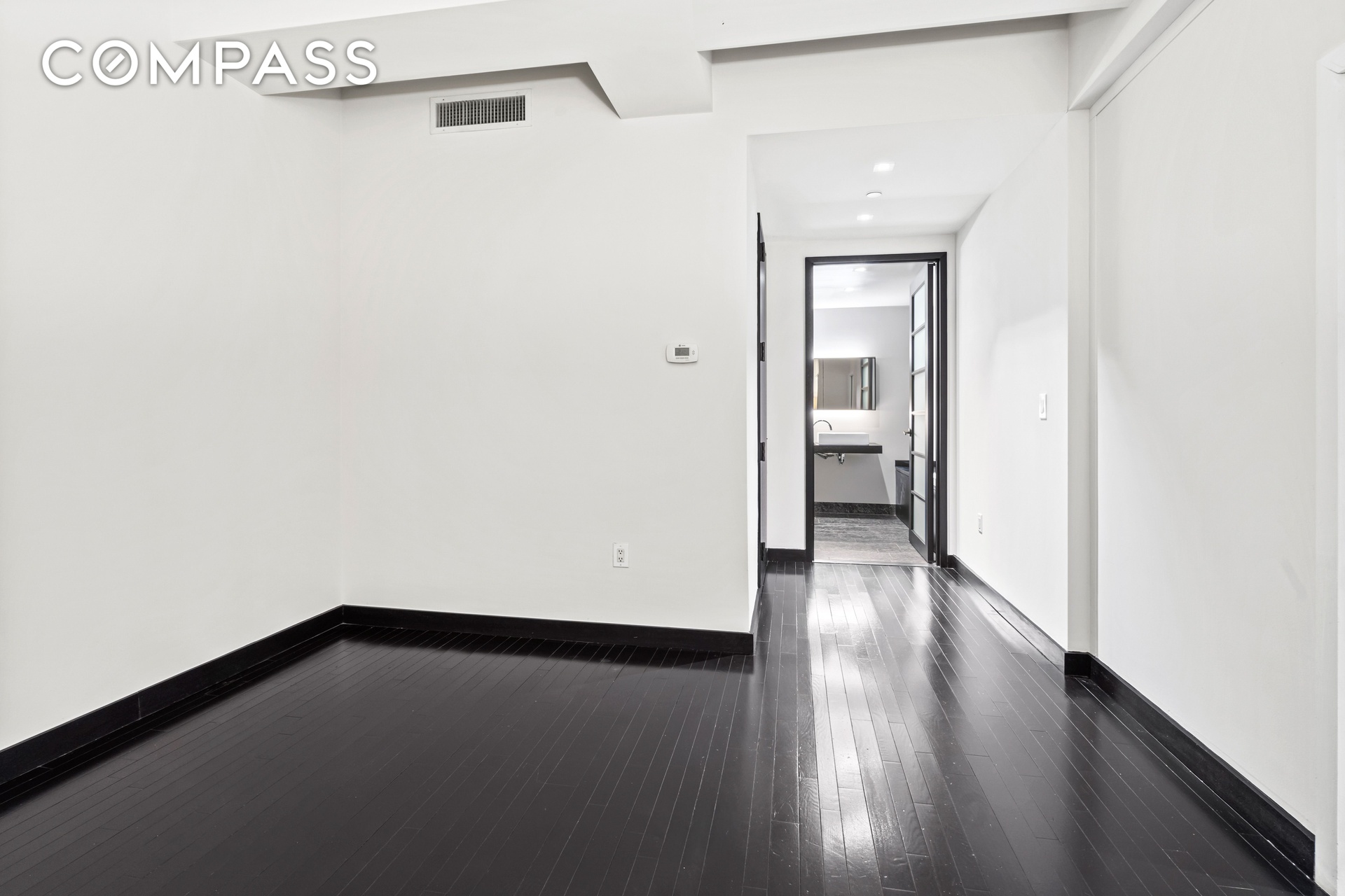 The spa-like bathroom features a recessed rain shower, deep soaking tub, and soothing stone accents. Ample storage includes a large outfitted California closet, with additional storage units available for rent within the building.