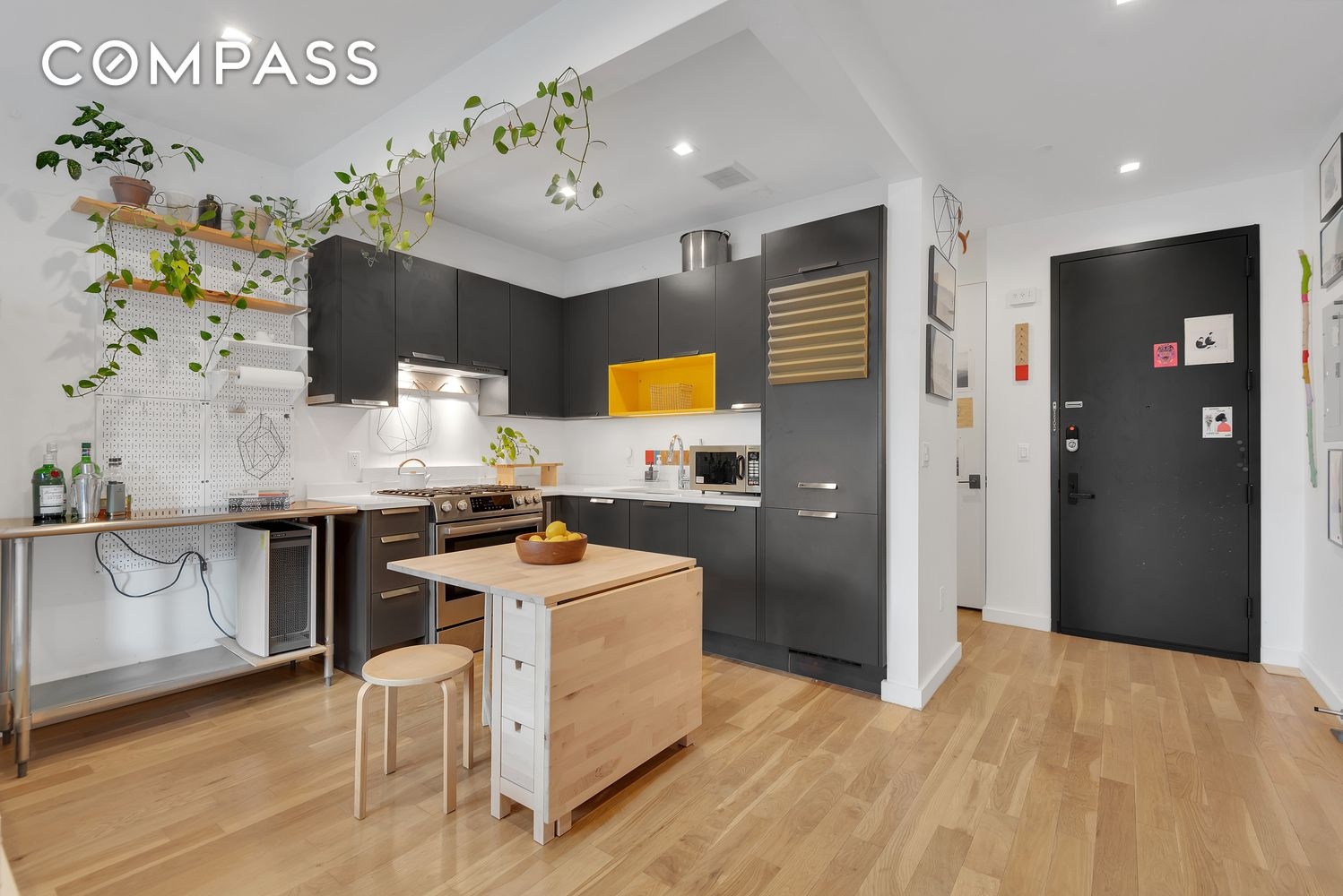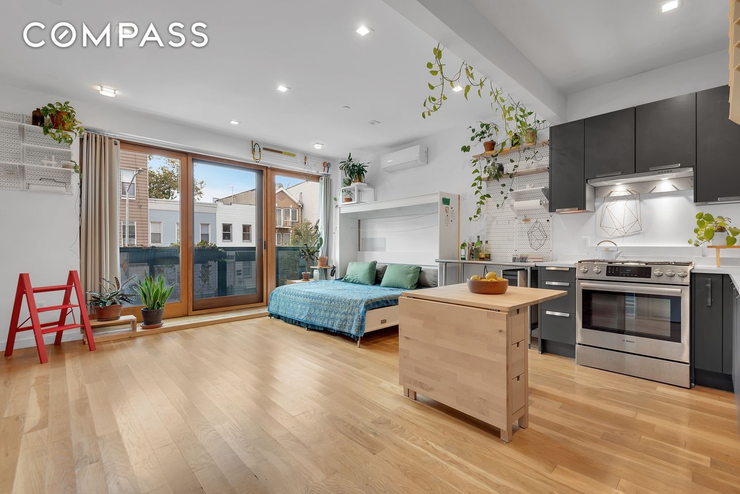 ??Discover Residence 2A at 267 Evergreen—a boutique condominium designed for luxury and convenience, completed in 2018 with elevator access and thoughtfully designed outdoor areas. This expansive studio apartment offers southern views and can be accessed by elevator or one flight of stairs. A semi-private landing with only two neighboring units leads to the entry foyer and open living area.