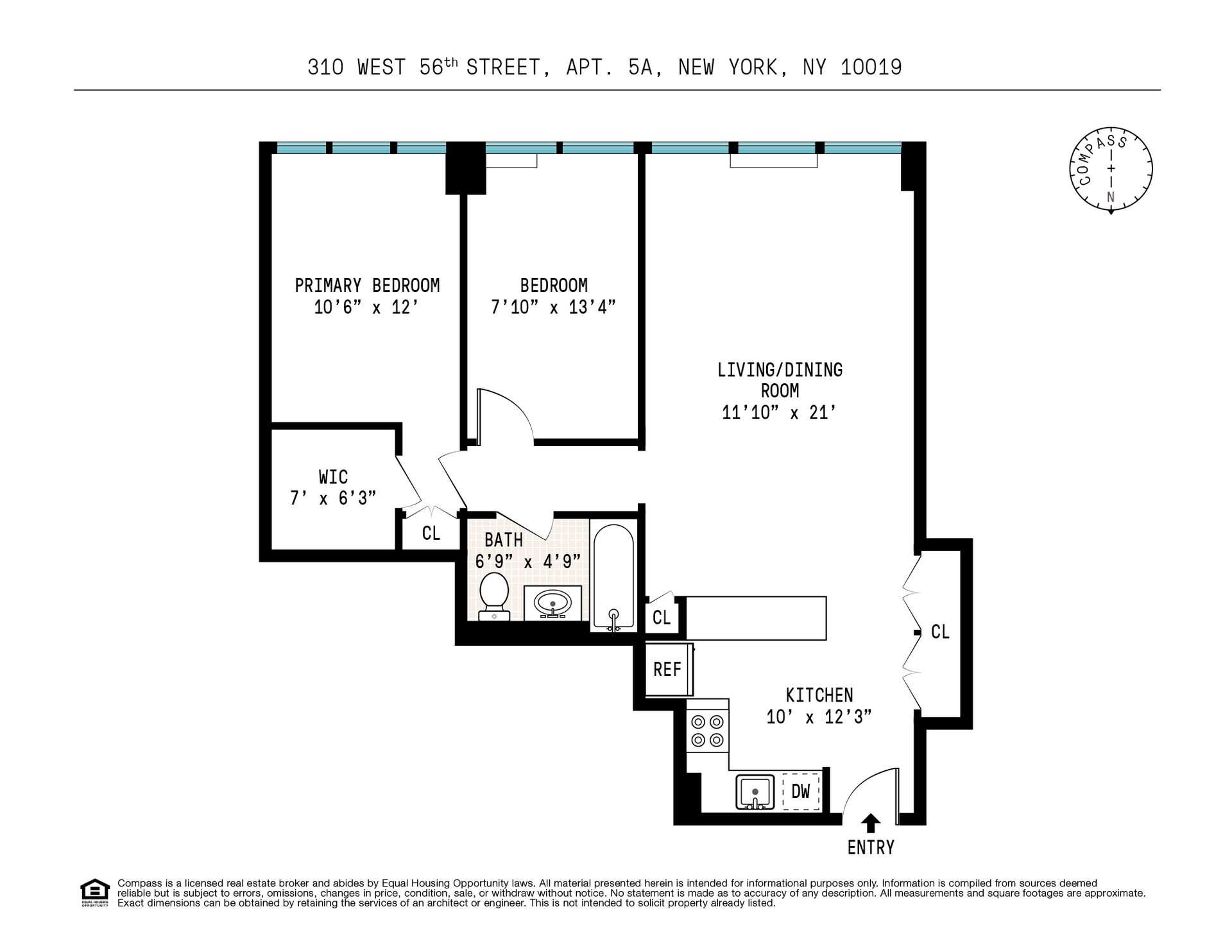 Welcome to 310 West 56th Street, Unit 5A. This spacious and contemporary two-bedroom, one-bath home is perfectly situated in the heart of Hell’s Kitchen. Offering a blend of comfort, style, and convenience, it is located in a full-service building with a doorman, live-in super, laundry facilities, and bike storage.