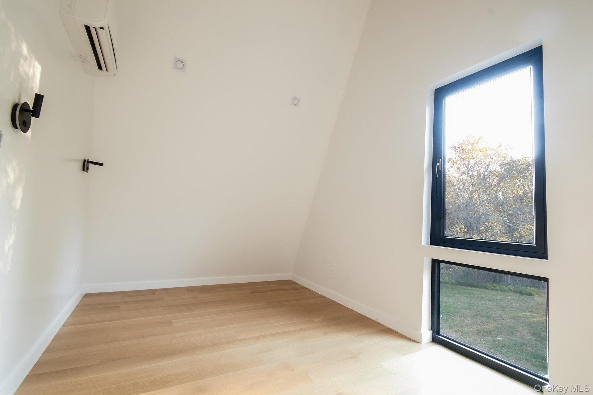 - Unfurnished room with recessed lighting, light wood finished floors, and a wall unit AC