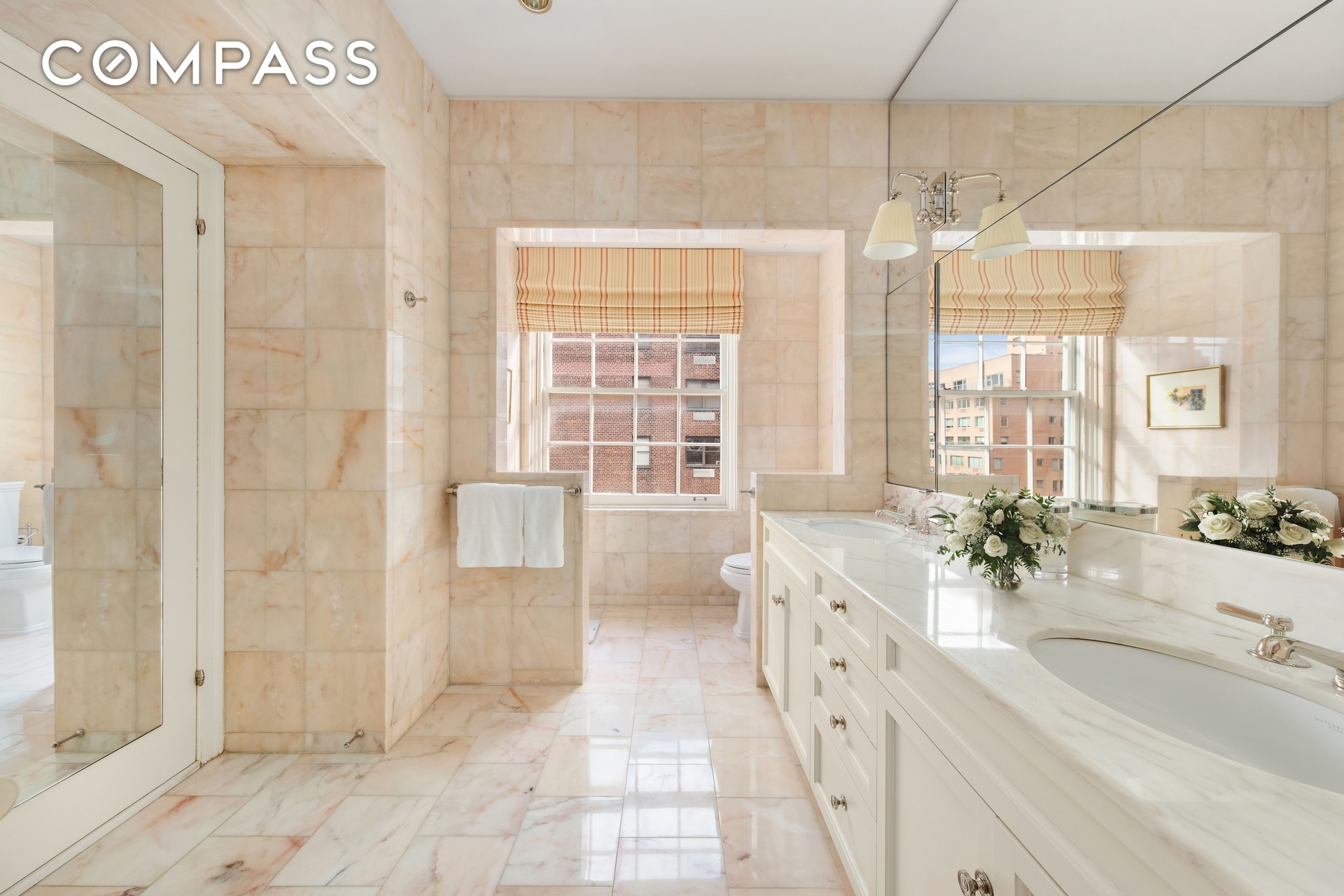 This sun-flooded home boasts central air conditioning, an integrated sound system, high ceilings, and traditional moldings. Designed by renowned architect Rosario Candela in 1929, 14 Sutton Place South also offers a full-time doorman, a resident manager, gym, bikeroom and a deeded private storage unit. Pets, pieds-a-terre, and 50% financing are permitted. There is a 2.5% flip tax.