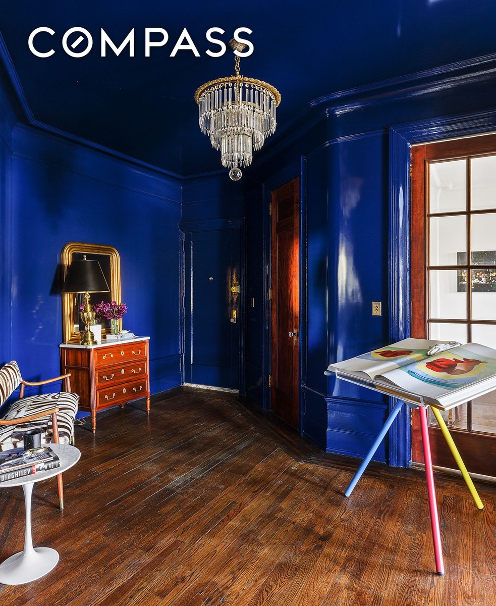 Upon entering the apartment, you are greeted by a spacious lacquered entry gallery, with ample room for seating, and a large coat closet. The oversized living room has open exposures to the east and boasts high ceilings, hardwood floors, and a decorative fireplace. Originally 2 rooms, the former library/music room has been opened to create a huge space, and easily accommodates multiple seating areas and a grand piano. French doors separate the living room from the adjacent flame mahogany-paneled dining room - a beautifully proportioned space, whether seating 16 or an intimate dinner for 4.