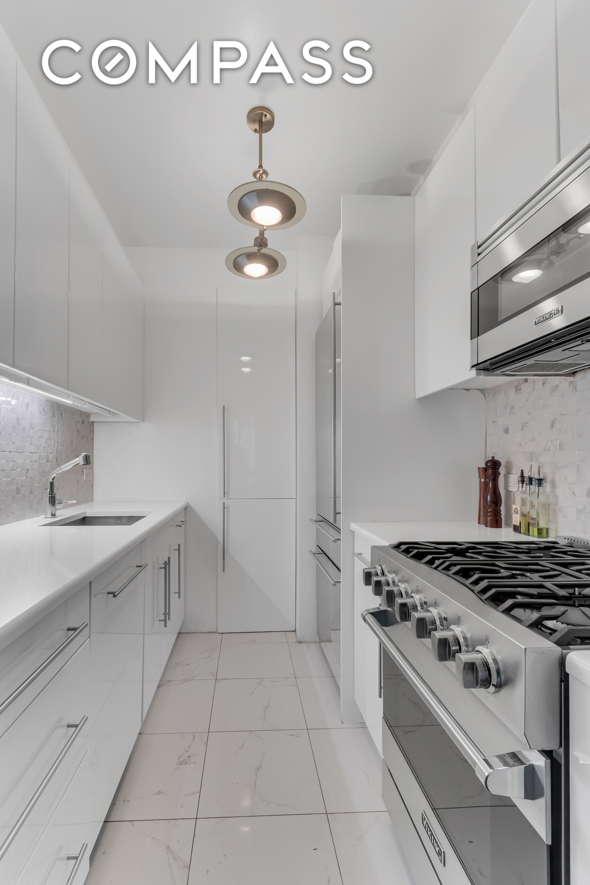 The kitchen has all top of the line appliances, including Viking stove, oven, and microwave.