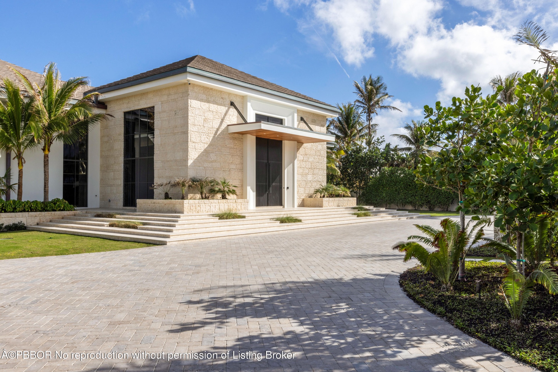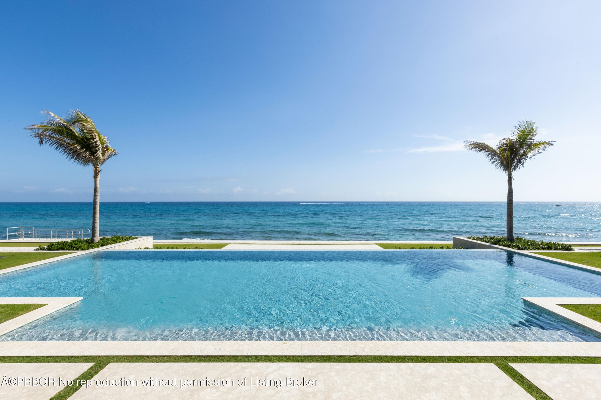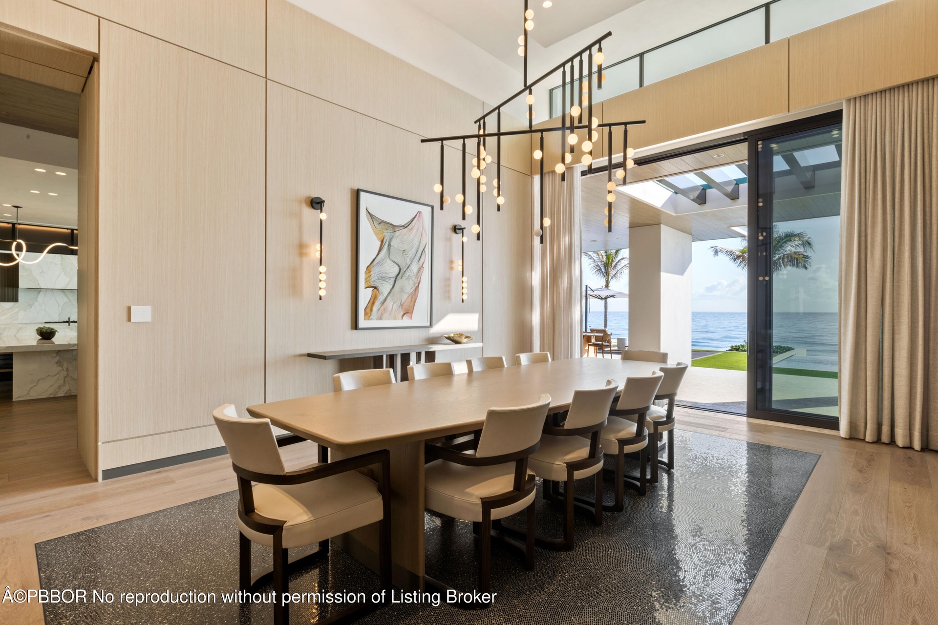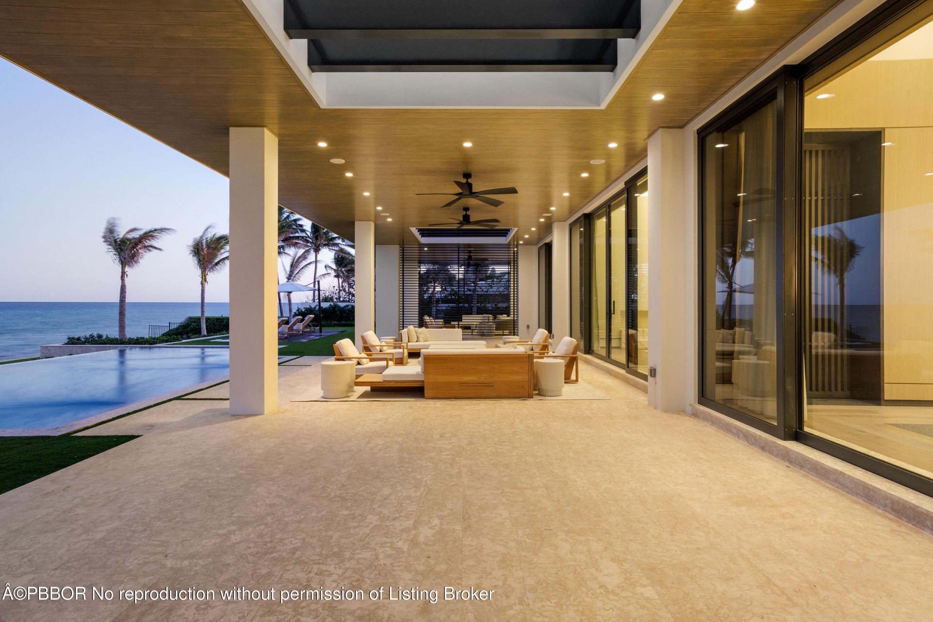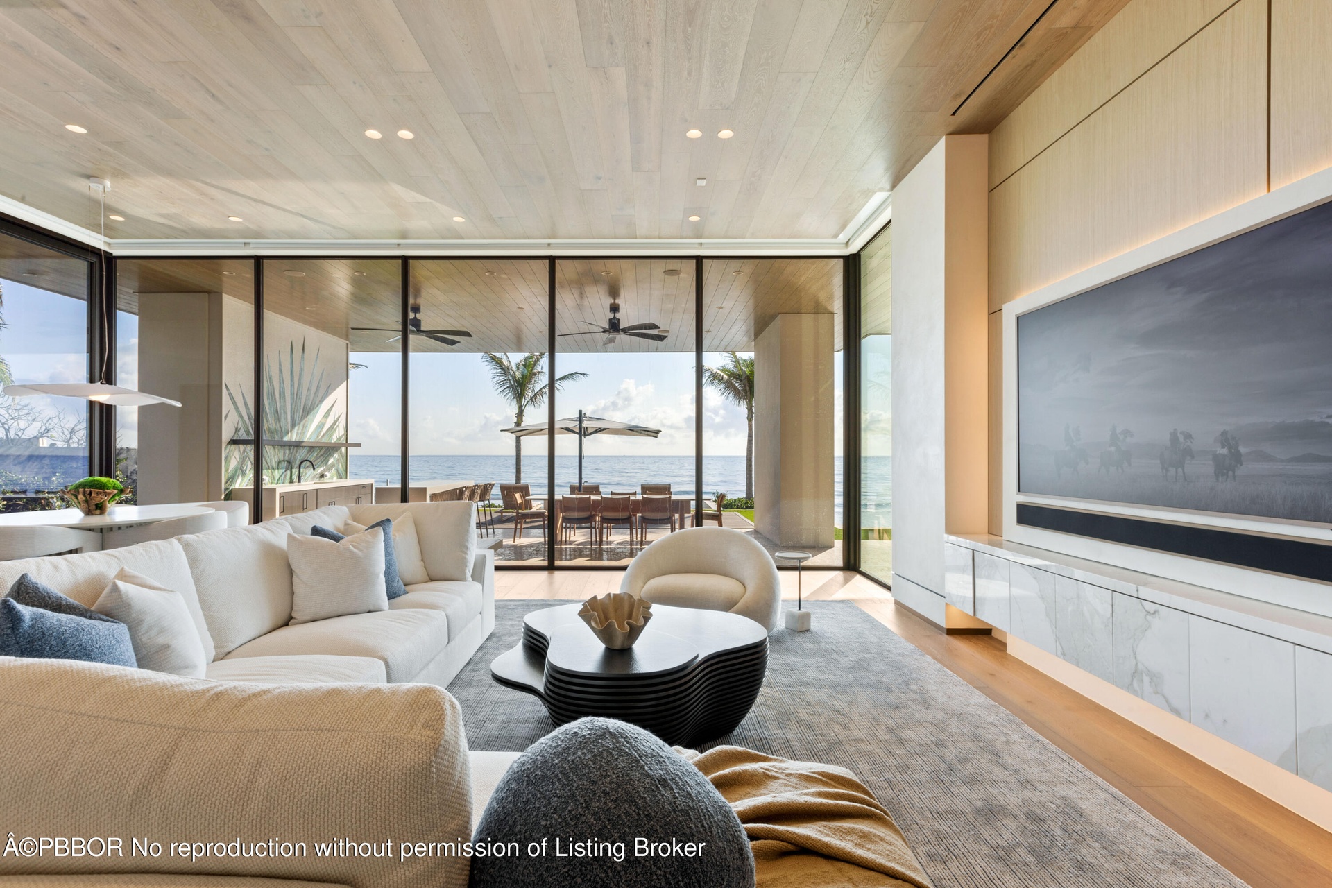 Set between the Atlantic Ocean and Intracoastal Waterway, 1160 S. Ocean Blvd is a rare retreat where architecture and nature exist in perfect harmony. Spanning 27,745± square feet under roof on nearly 2 acres, this newly completed estate offers 160 feet of direct ocean frontage and private Intracoastal access, creating an unrivaled connection to land and sea. Designed with balance and thoughtful craftsmanship, the 25,197± square-foot main house flows effortlessly from one space to the next. From the grand entry hall, the journey unfolds—a symphony of light and space, where the living room merges with the ocean beyond. The formal dining room, with its ocean-facing bar, sets the stage for elegant entertaining, while the open-concept kitchen and family area form the heart of the home. A private catering kitchen allows staff to work discreetly behind the scenes. The primary suite, occupying its own wing, features a private sitting room, ocean-view office, and dual dressing rooms. The spa-like primary bath, wrapped in Calacatta marble, offers a stone soaking tub and dual water closets. Three additional guest suites on the main level each provide private en-suite baths and walk-in closets. On the lower level, the home transforms into a haven of leisure and wellness, featuring a state-of-the-art gym, steam shower, wine room, game room, and immersive theater. Two additional bedrooms offer private accommodations for staff or extended family. From concept to completion, this home was orchestrated by female builder Siobhan Zerilla, principal of Bluedoor Building, bringing vision and artistry to every detail. For the automotive enthusiast, a climate-controlled 13-car garage provides the perfect space for a prized collection. A separate guest house offers two bedrooms, two full baths, a half bath, a full kitchen, dining area, and private laundry, while its own cabana and private pool create a secluded retreat. The outdoor spaces are equally intentional, with a covered courtyard and east-facing loggia, designed for meditation, relaxation, and celebration. A private dock, equipped with two boat lifts, allows effortless Intracoastal access for yacht owners and water enthusiasts. Every surface, every detail has been curated for those who expect the best. White oak wood floors add warmth, complemented by Santorini Shell Stone, which transitions from indoor elegance to outdoor serenity. The home's refined palette is completed with Calacatta Gold, Black Alexander Honed stone, bespoke plaster walls, mahogany, and white oak accents. This is more than a home it is a journey, a sanctuary where every detail whispers serenity. 1160 S. Ocean Blvd, Manalapan where life finds its rhythm.