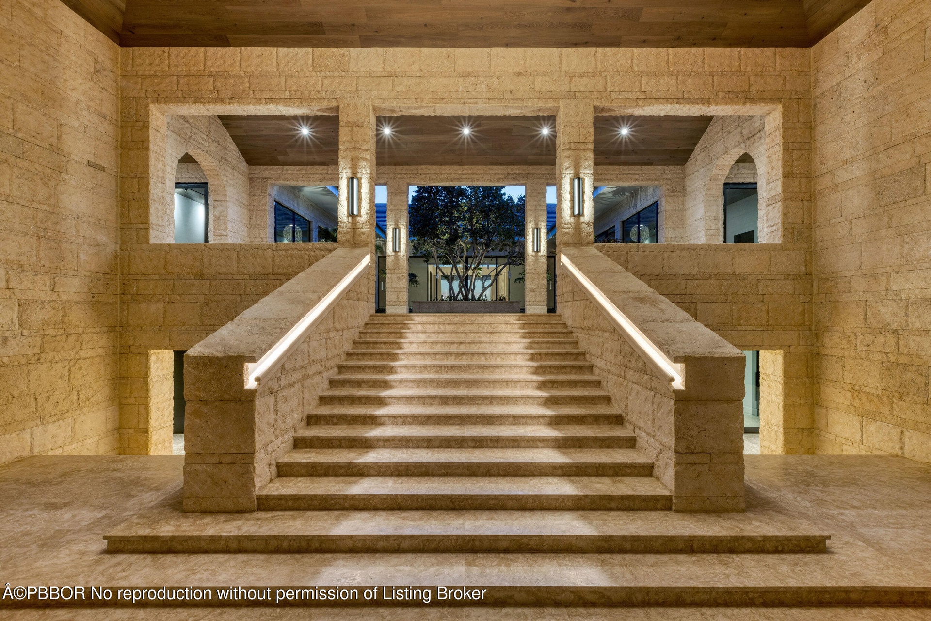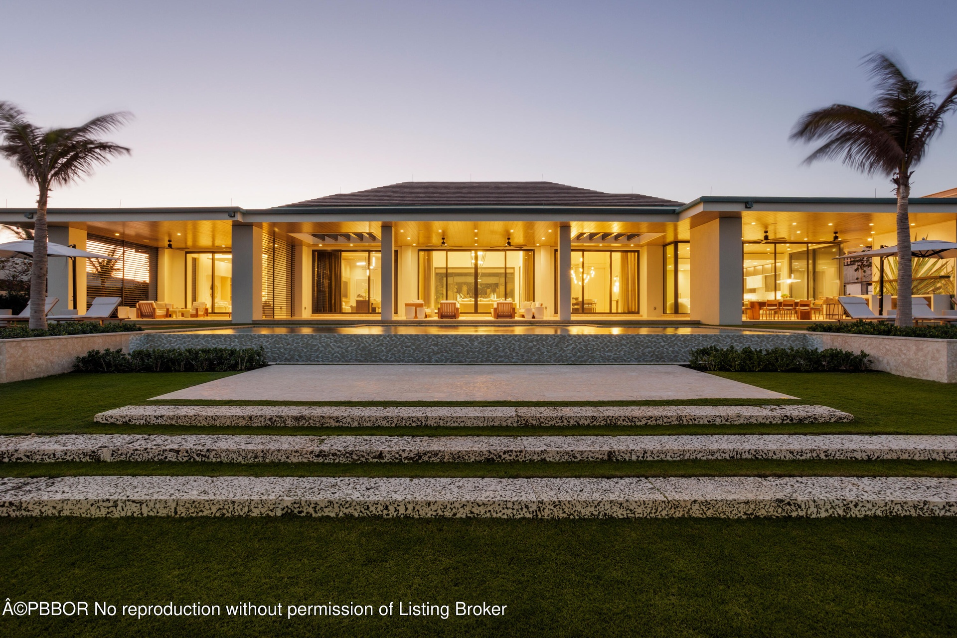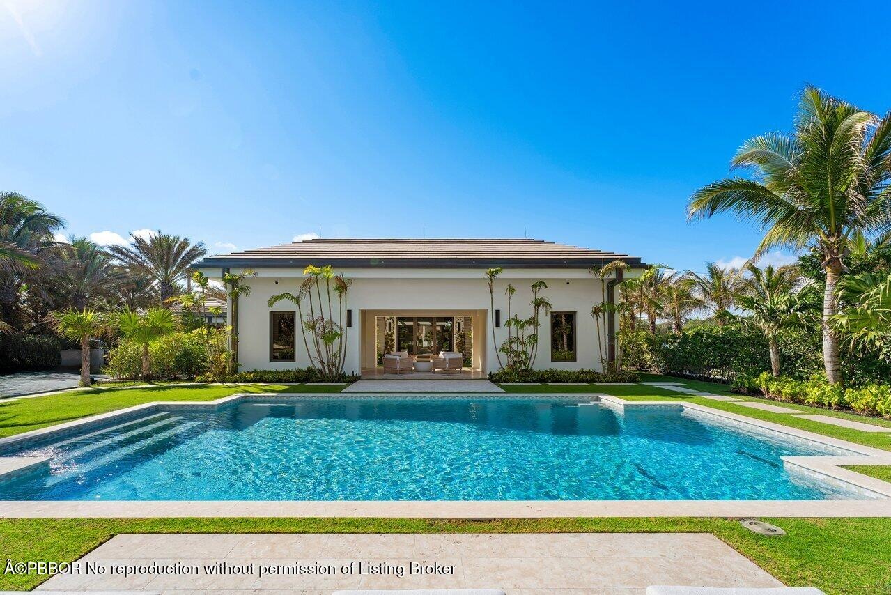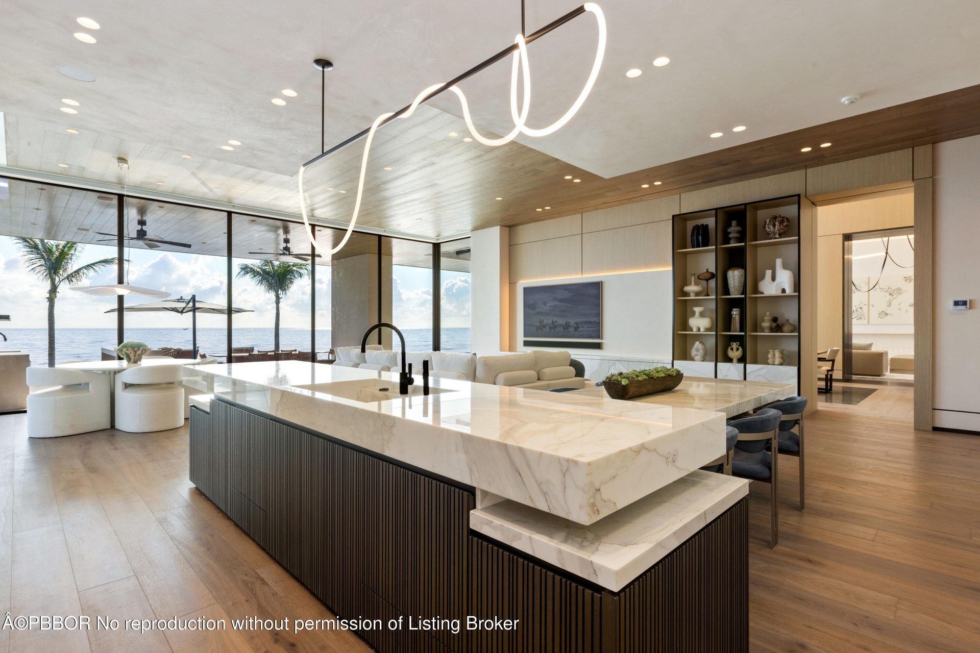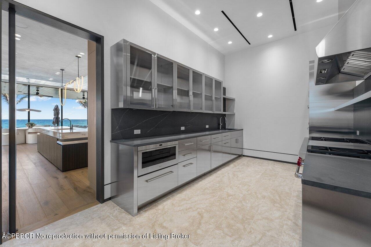 Set between the Atlantic Ocean and Intracoastal Waterway, 1160 S. Ocean Blvd is a rare retreat where architecture and nature exist in perfect harmony. Spanning 27,745± square feet under roof on nearly 2 acres, this newly completed estate offers 160 feet of direct ocean frontage and private Intracoastal access, creating an unrivaled connection to land and sea. Designed with balance and thoughtful craftsmanship, the 25,197± square-foot main house flows effortlessly from one space to the next. From the grand entry hall, the journey unfolds—a symphony of light and space, where the living room merges with the ocean beyond. The formal dining room, with its ocean-facing bar, sets the stage for elegant entertaining, while the open-concept kitchen and family area form the heart of the home. A private catering kitchen allows staff to work discreetly behind the scenes. The primary suite, occupying its own wing, features a private sitting room, ocean-view office, and dual dressing rooms. The spa-like primary bath, wrapped in Calacatta marble, offers a stone soaking tub and dual water closets. Three additional guest suites on the main level each provide private en-suite baths and walk-in closets. On the lower level, the home transforms into a haven of leisure and wellness, featuring a state-of-the-art gym, steam shower, wine room, game room, and immersive theater. Two additional bedrooms offer private accommodations for staff or extended family. From concept to completion, this home was orchestrated by female builder Siobhan Zerilla, principal of Bluedoor Building, bringing vision and artistry to every detail. For the automotive enthusiast, a climate-controlled 13-car garage provides the perfect space for a prized collection. A separate guest house offers two bedrooms, two full baths, a half bath, a full kitchen, dining area, and private laundry, while its own cabana and private pool create a secluded retreat. The outdoor spaces are equally intentional, with a covered courtyard and east-facing loggia, designed for meditation, relaxation, and celebration. A private dock, equipped with two boat lifts, allows effortless Intracoastal access for yacht owners and water enthusiasts. Every surface, every detail has been curated for those who expect the best. White oak wood floors add warmth, complemented by Santorini Shell Stone, which transitions from indoor elegance to outdoor serenity. The home's refined palette is completed with Calacatta Gold, Black Alexander Honed stone, bespoke plaster walls, mahogany, and white oak accents. This is more than a home it is a journey, a sanctuary where every detail whispers serenity. 1160 S. Ocean Blvd, Manalapan where life finds its rhythm.