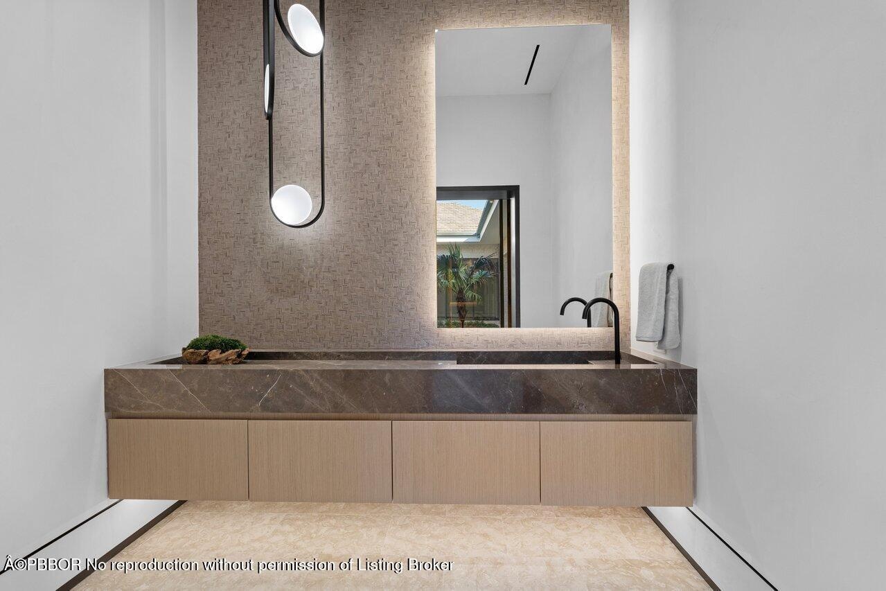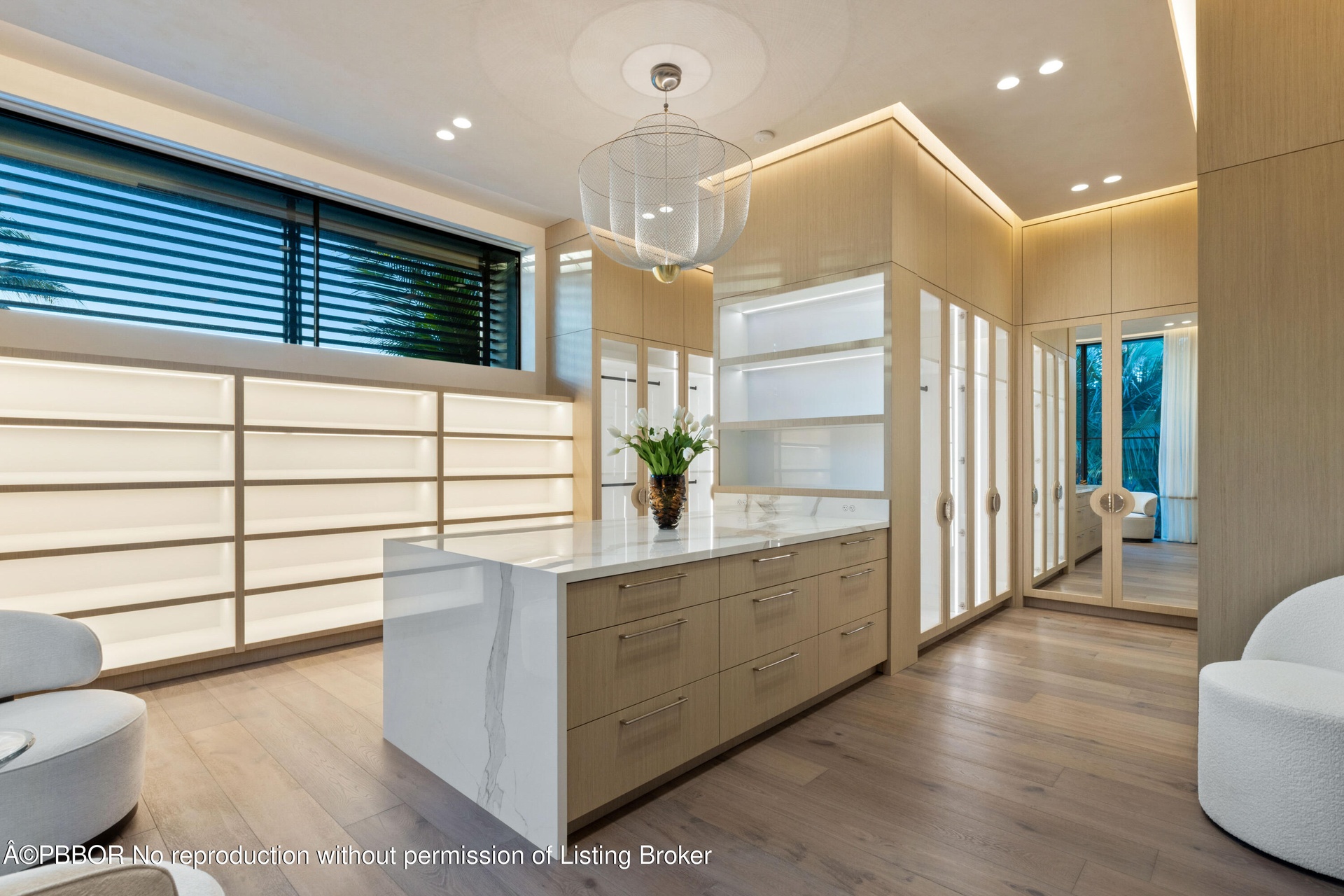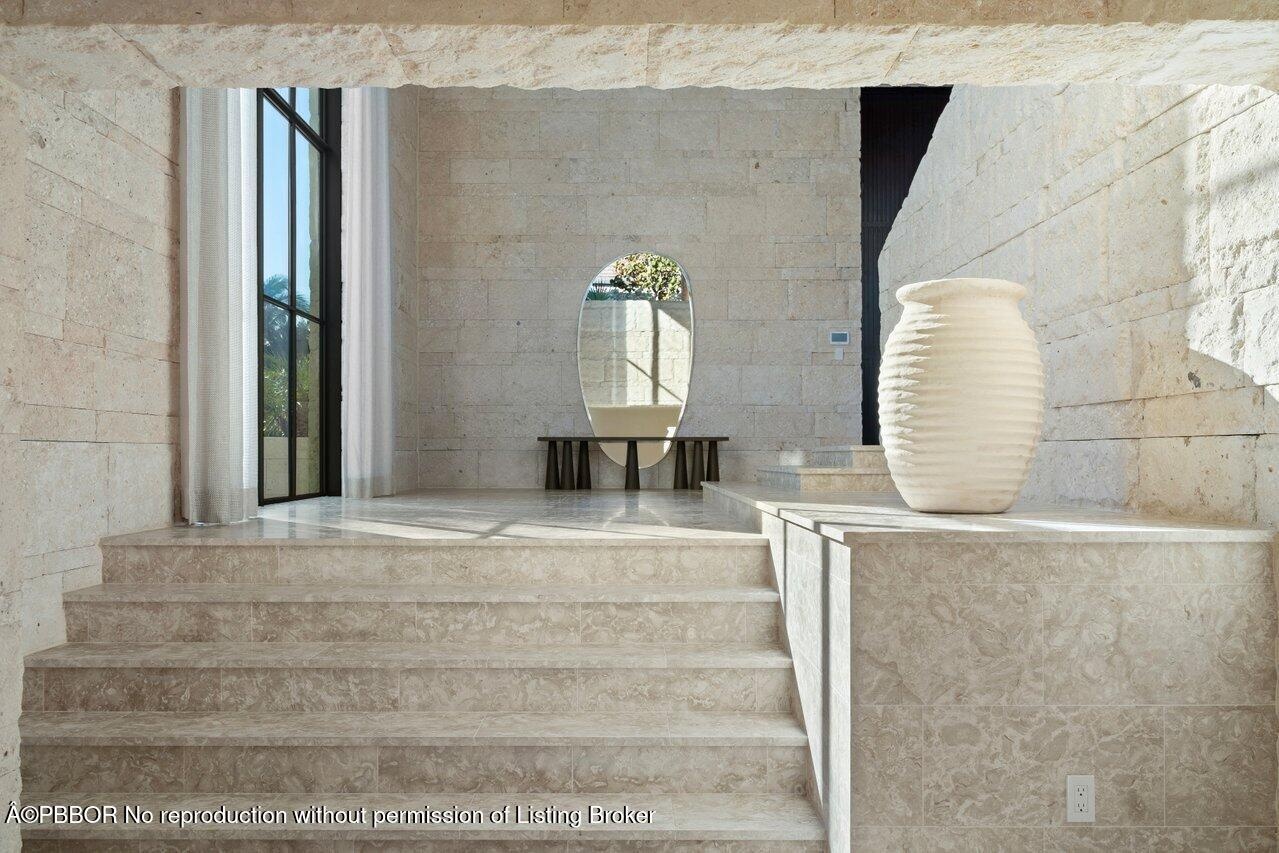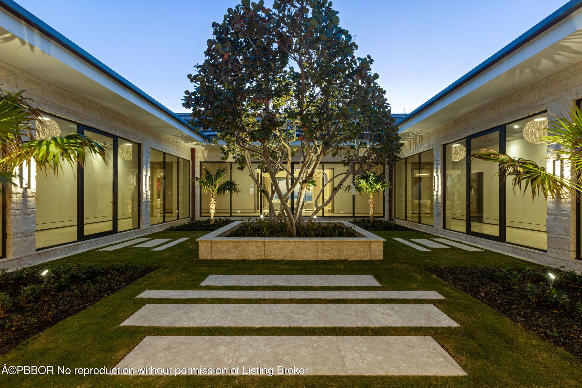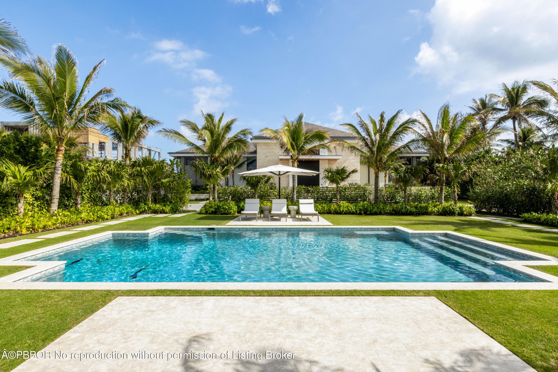 Set between the Atlantic Ocean and Intracoastal Waterway, 1160 S. Ocean Blvd is a rare retreat where architecture and nature exist in perfect harmony. Spanning 27,745± square feet under roof on nearly 2 acres, this newly completed estate offers 160 feet of direct ocean frontage and private Intracoastal access, creating an unrivaled connection to land and sea. Designed with balance and thoughtful craftsmanship, the 25,197± square-foot main house flows effortlessly from one space to the next. From the grand entry hall, the journey unfolds—a symphony of light and space, where the living room merges with the ocean beyond. The formal dining room, with its ocean-facing bar, sets the stage for elegant entertaining, while the open-concept kitchen and family area form the heart of the home. A private catering kitchen allows staff to work discreetly behind the scenes. The primary suite, occupying its own wing, features a private sitting room, ocean-view office, and dual dressing rooms. The spa-like primary bath, wrapped in Calacatta marble, offers a stone soaking tub and dual water closets. Three additional guest suites on the main level each provide private en-suite baths and walk-in closets. On the lower level, the home transforms into a haven of leisure and wellness, featuring a state-of-the-art gym, steam shower, wine room, game room, and immersive theater. Two additional bedrooms offer private accommodations for staff or extended family. From concept to completion, this home was orchestrated by female builder Siobhan Zerilla, principal of Bluedoor Building, bringing vision and artistry to every detail. For the automotive enthusiast, a climate-controlled 13-car garage provides the perfect space for a prized collection. A separate guest house offers two bedrooms, two full baths, a half bath, a full kitchen, dining area, and private laundry, while its own cabana and private pool create a secluded retreat. The outdoor spaces are equally intentional, with a covered courtyard and east-facing loggia, designed for meditation, relaxation, and celebration. A private dock, equipped with two boat lifts, allows effortless Intracoastal access for yacht owners and water enthusiasts. Every surface, every detail has been curated for those who expect the best. White oak wood floors add warmth, complemented by Santorini Shell Stone, which transitions from indoor elegance to outdoor serenity. The home's refined palette is completed with Calacatta Gold, Black Alexander Honed stone, bespoke plaster walls, mahogany, and white oak accents. This is more than a home it is a journey, a sanctuary where every detail whispers serenity. 1160 S. Ocean Blvd, Manalapan where life finds its rhythm.