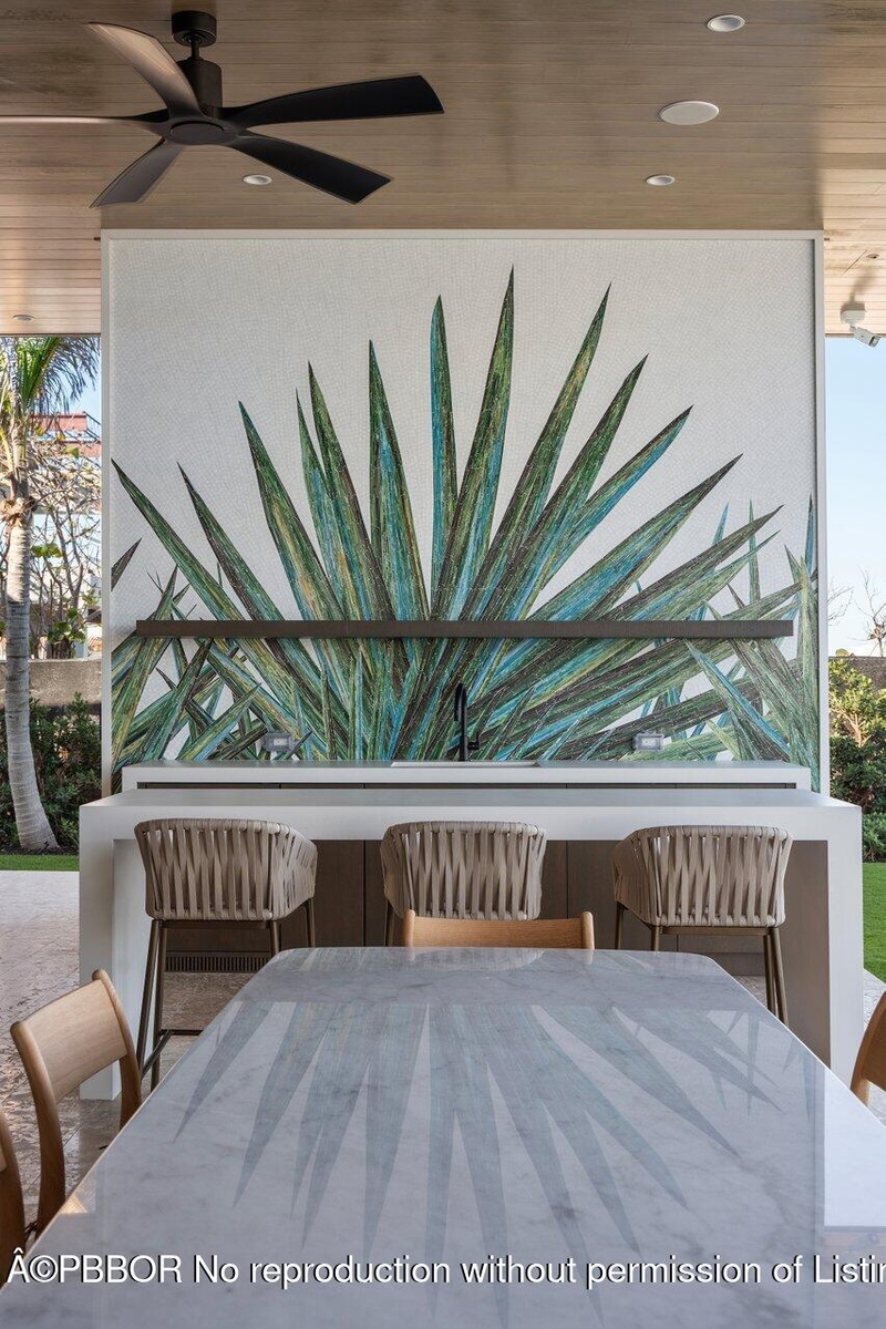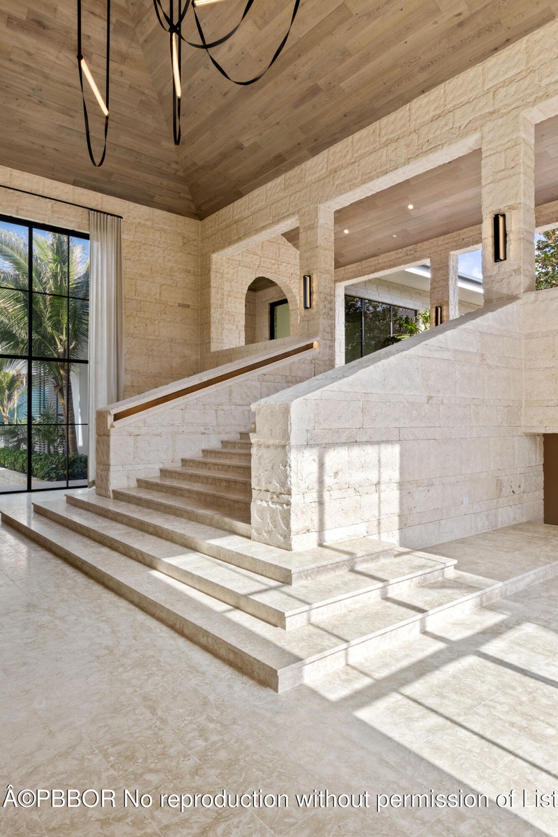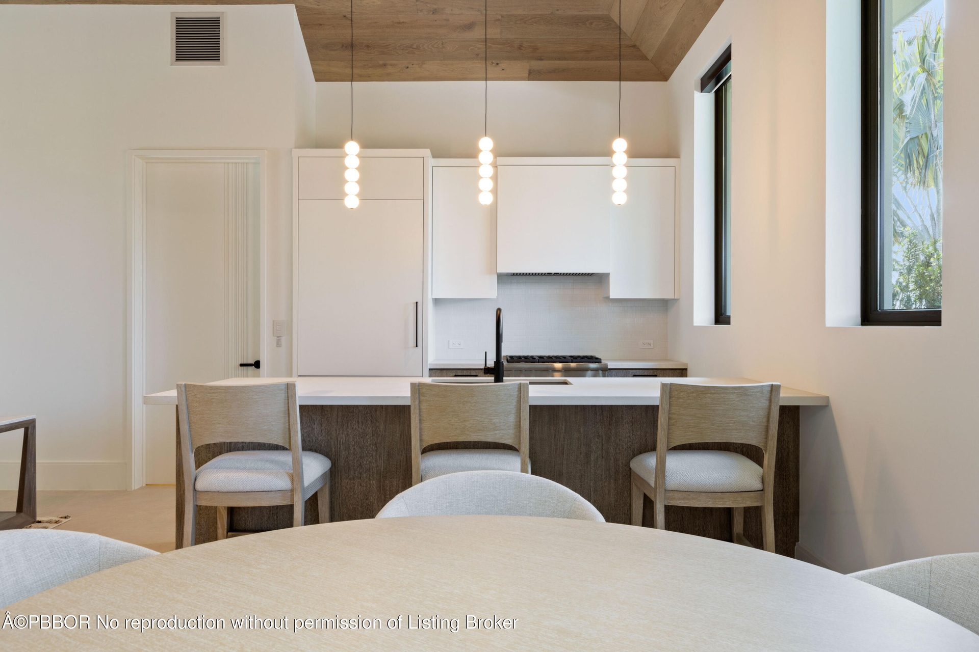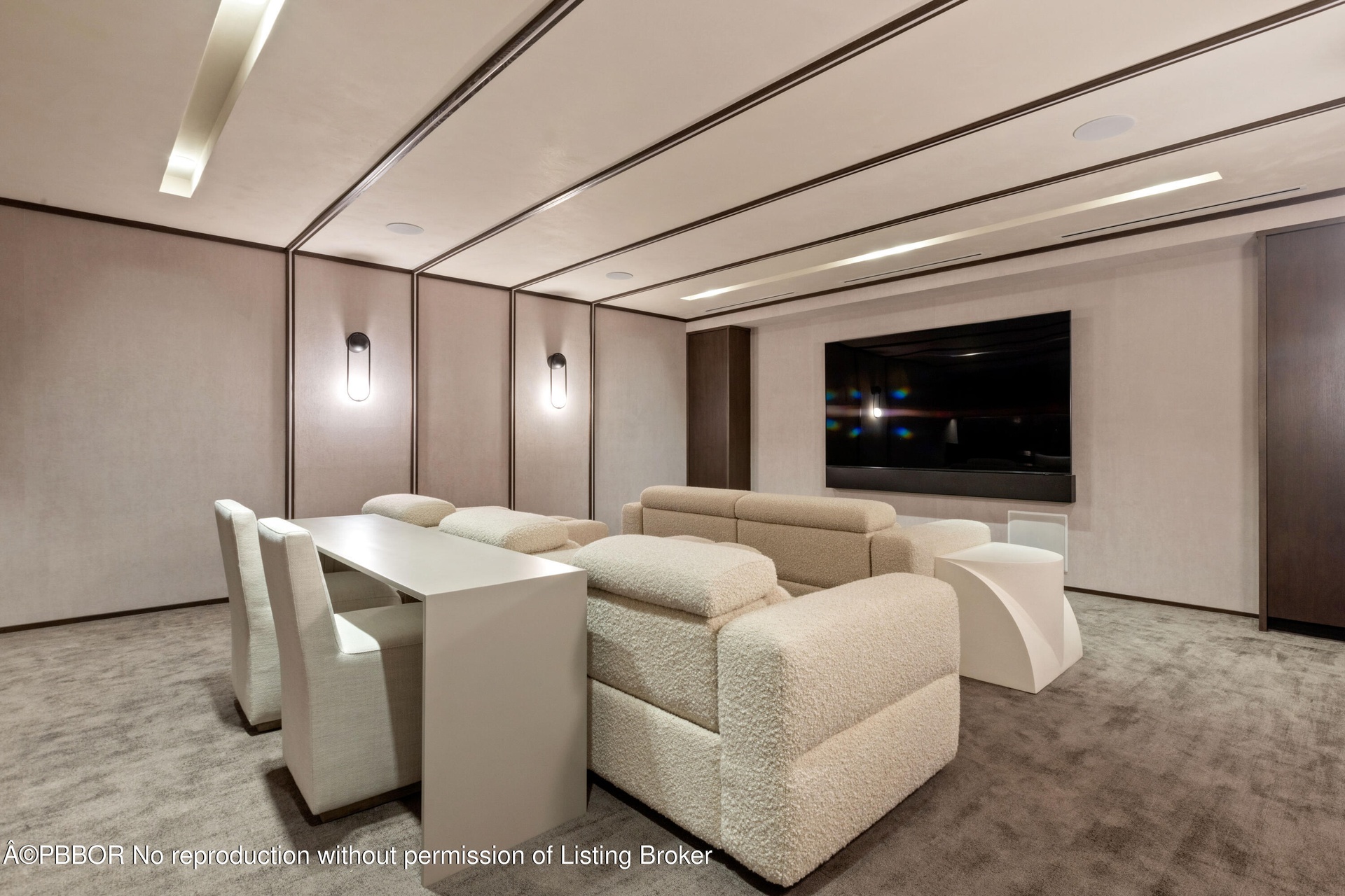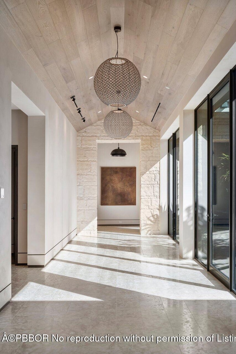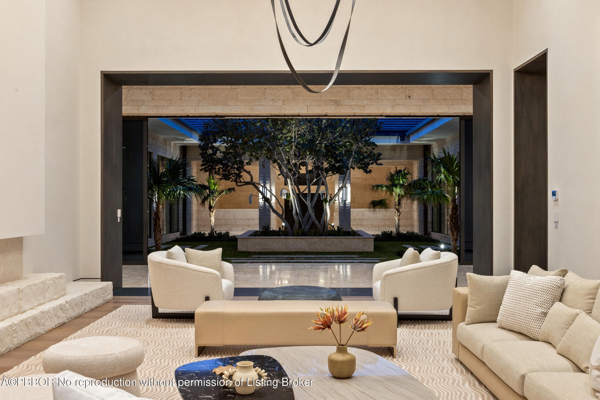 Set between the Atlantic Ocean and Intracoastal Waterway, 1160 S. Ocean Blvd is a rare retreat where architecture and nature exist in perfect harmony. Spanning 27,745± square feet under roof on nearly 2 acres, this newly completed estate offers 160 feet of direct ocean frontage and private Intracoastal access, creating an unrivaled connection to land and sea. Designed with balance and thoughtful craftsmanship, the 25,197± square-foot main house flows effortlessly from one space to the next. From the grand entry hall, the journey unfolds—a symphony of light and space, where the living room merges with the ocean beyond. The formal dining room, with its ocean-facing bar, sets the stage for elegant entertaining, while the open-concept kitchen and family area form the heart of the home. A private catering kitchen allows staff to work discreetly behind the scenes. The primary suite, occupying its own wing, features a private sitting room, ocean-view office, and dual dressing rooms. The spa-like primary bath, wrapped in Calacatta marble, offers a stone soaking tub and dual water closets. Three additional guest suites on the main level each provide private en-suite baths and walk-in closets. On the lower level, the home transforms into a haven of leisure and wellness, featuring a state-of-the-art gym, steam shower, wine room, game room, and immersive theater. Two additional bedrooms offer private accommodations for staff or extended family. From concept to completion, this home was orchestrated by female builder Siobhan Zerilla, principal of Bluedoor Building, bringing vision and artistry to every detail. For the automotive enthusiast, a climate-controlled 13-car garage provides the perfect space for a prized collection. A separate guest house offers two bedrooms, two full baths, a half bath, a full kitchen, dining area, and private laundry, while its own cabana and private pool create a secluded retreat. The outdoor spaces are equally intentional, with a covered courtyard and east-facing loggia, designed for meditation, relaxation, and celebration. A private dock, equipped with two boat lifts, allows effortless Intracoastal access for yacht owners and water enthusiasts. Every surface, every detail has been curated for those who expect the best. White oak wood floors add warmth, complemented by Santorini Shell Stone, which transitions from indoor elegance to outdoor serenity. The home's refined palette is completed with Calacatta Gold, Black Alexander Honed stone, bespoke plaster walls, mahogany, and white oak accents. This is more than a home it is a journey, a sanctuary where every detail whispers serenity. 1160 S. Ocean Blvd, Manalapan where life finds its rhythm.