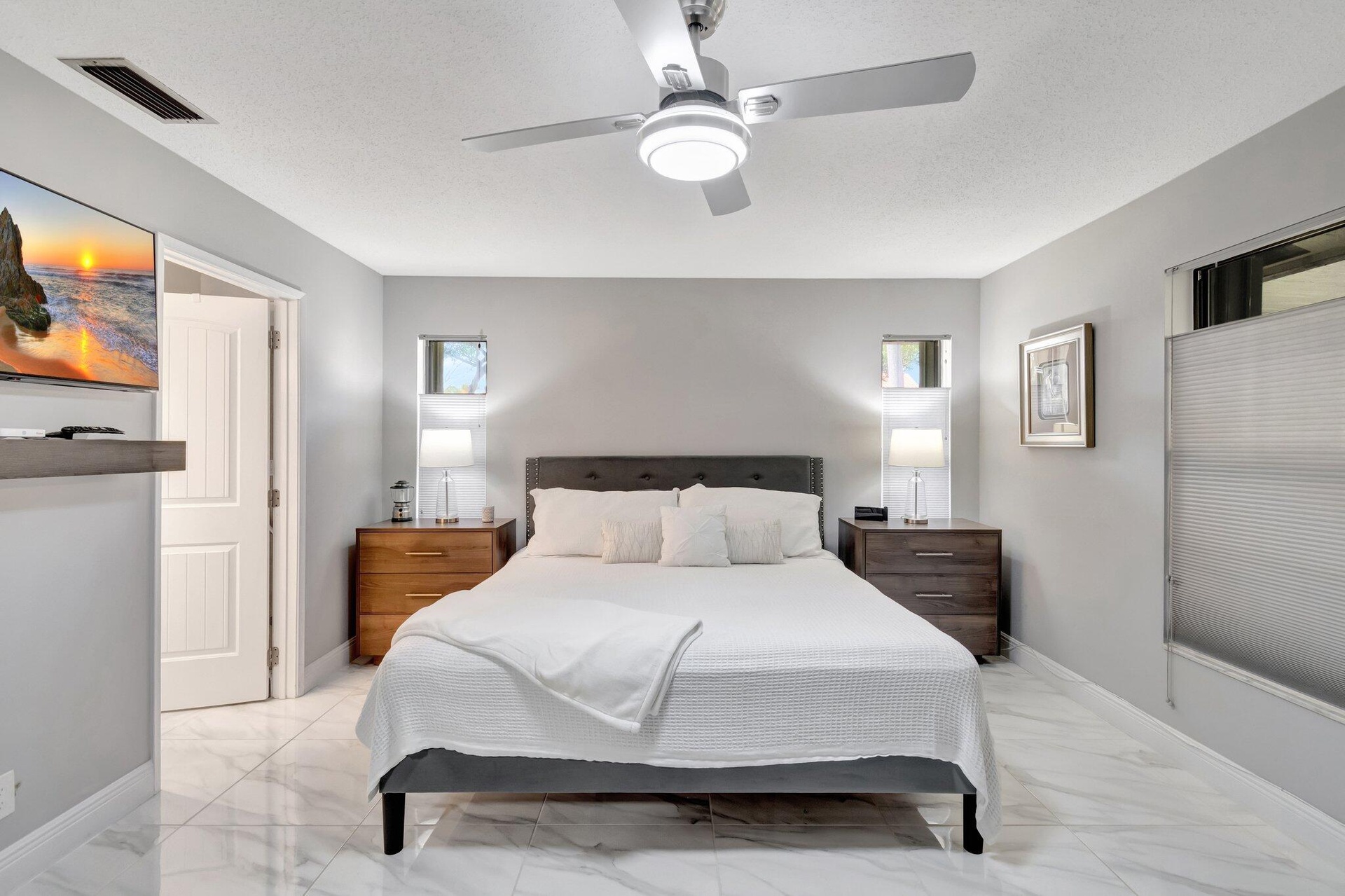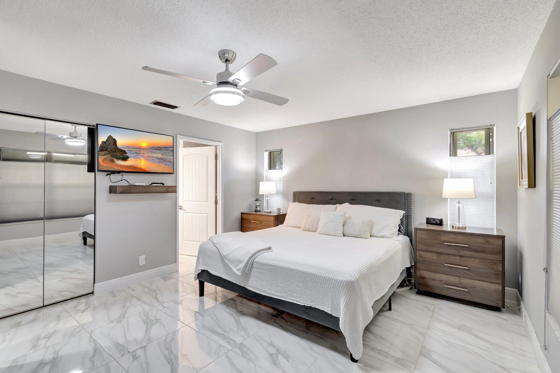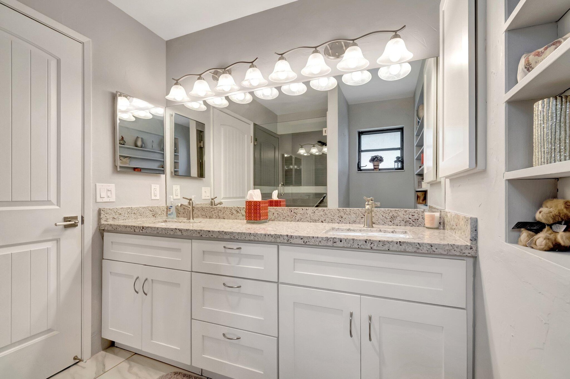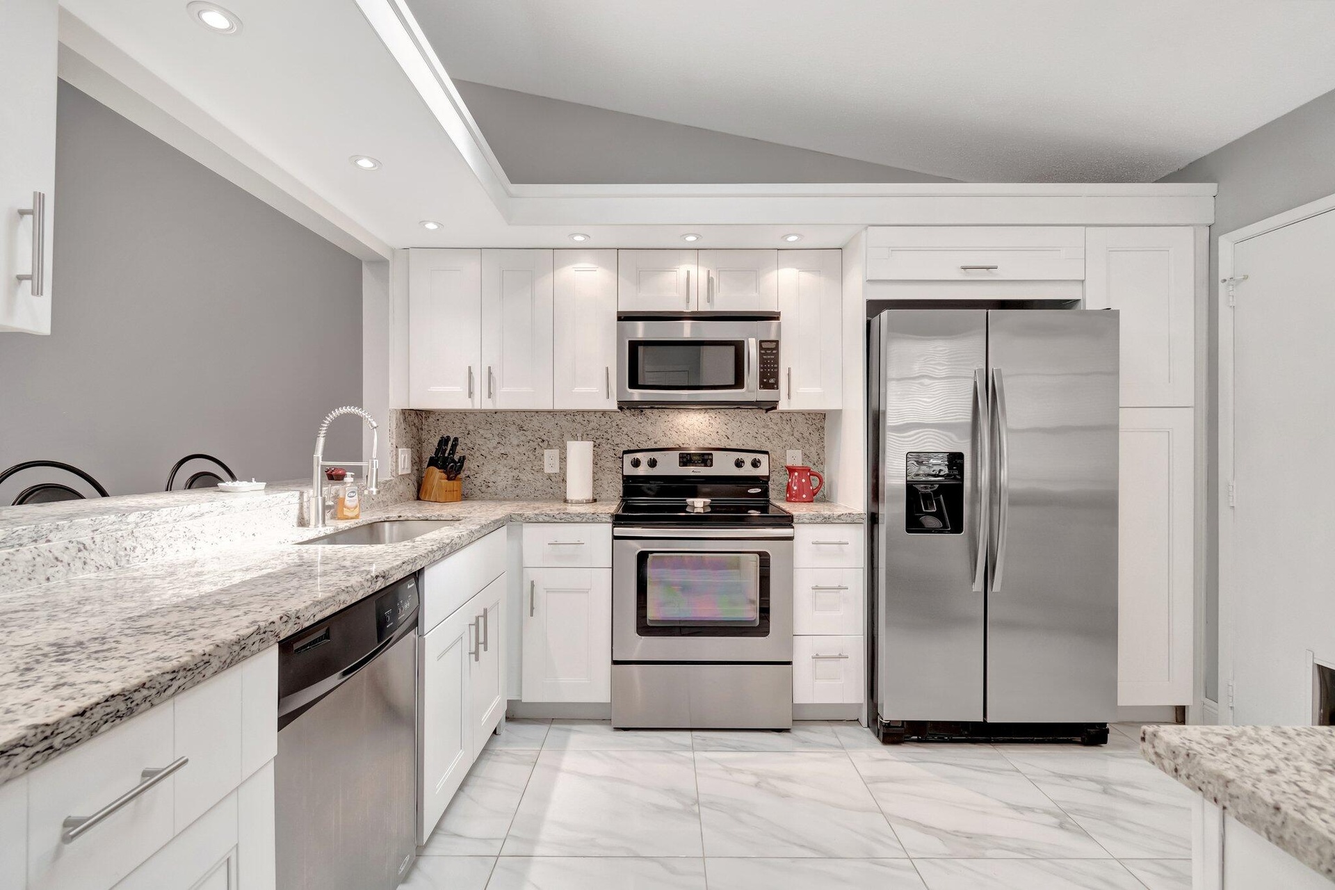 Welcome Home ! Just pack your bags ...This immaculately maintained Villa has it all ! This rarely available ''3'' full bedroom/2 bath villa has been totally updated and remodeled. The home is tiled throughout creating a seamless flow, with large, modern porcelain tile and boast an open floor plan with vaulted ceilings and skylights. The renovated chef's kitchen features stainless appliances, pantry, breakfast bar and desk area. Both baths have been remodeled with high end finishes. The large master bedroom features an outfitted walk in closet and wall to wall built-ins for tons of storage..The 2 guest bedrooms are ample enough in size to fit a king bed. The enclosed lanai is not included in the square footage but provides an additional 300 sq. ft of living and entertaining space
