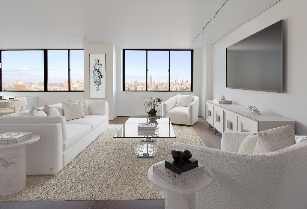 This stunning 2,470-square-foot duplex, featuring multiple exposures and walls of windows, offers breathtaking, unobstructed landmarked views stretching from Central Park to the George Washington Bridge and beyond, including the iconic Lincoln Center.