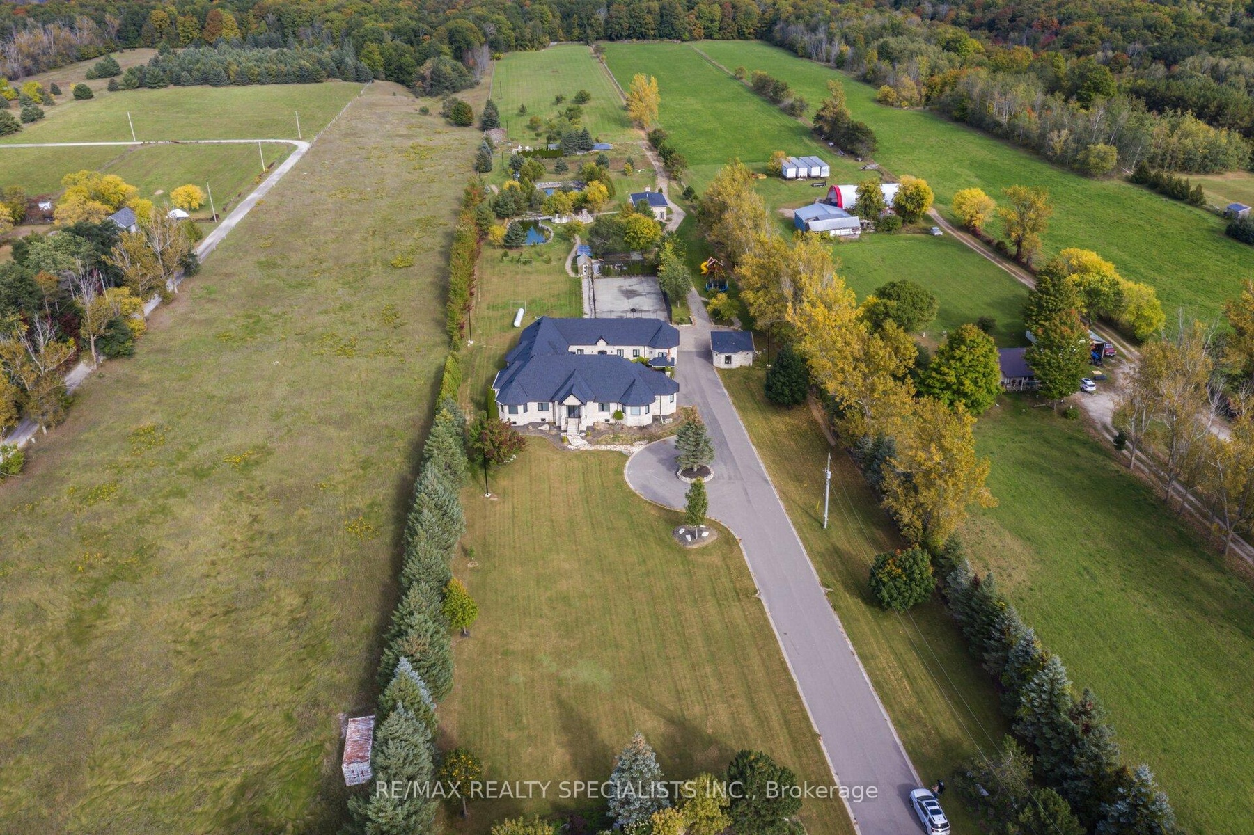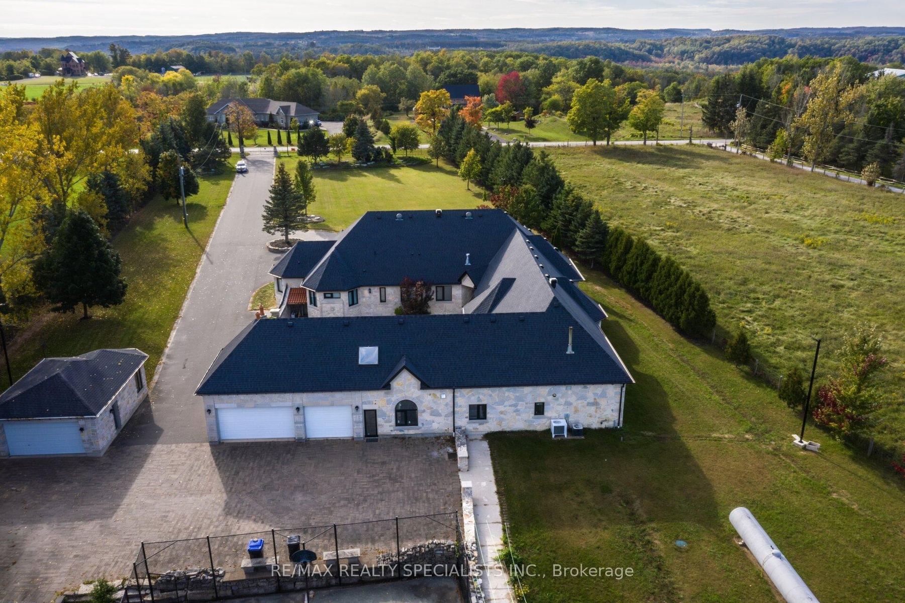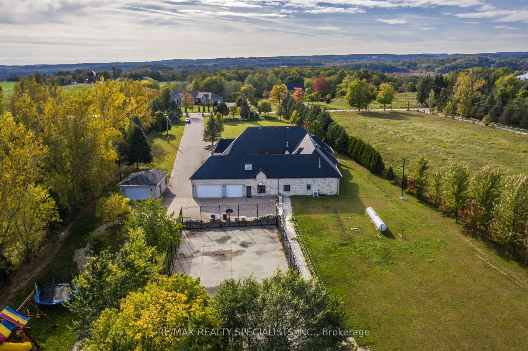 NEW ESTATE HOME stunning 7,900 sq. ft. custom-built estate sprawls across over 10 acres of pristine land, offering the pinnacle of luxury living. With 5 spacious bedrooms, each elegantly furnished, and 6 opulent washrooms, a heated indoor pool, and a jacuzzi, this residence includes a 790 sq. ft. Coach-House with a full kitchen and 1 bed 1 washroom. The exterior has seen extensive upgrades in new roofs, soffits, and gutters, coupled with security enhancements like floodlights, and an automatic gate, the kitchen is a chef's paradise, equipped with built-in stainless-steel appliances & custom cabinetry. You will love the football and basketball courts, two fish-stocked ponds, and spacious courtyard plaza with two outdoor ovens. Interior renovations worth $2 M include new windows, intricate woodwork, a marble island, custom lighting, Wall panels & bespoke furniture. THE HOUSE WILL SOLD AS STAGED WITH FURNITURE SOFA, TV , DINNING TABLE , CENTRAL TABLE.