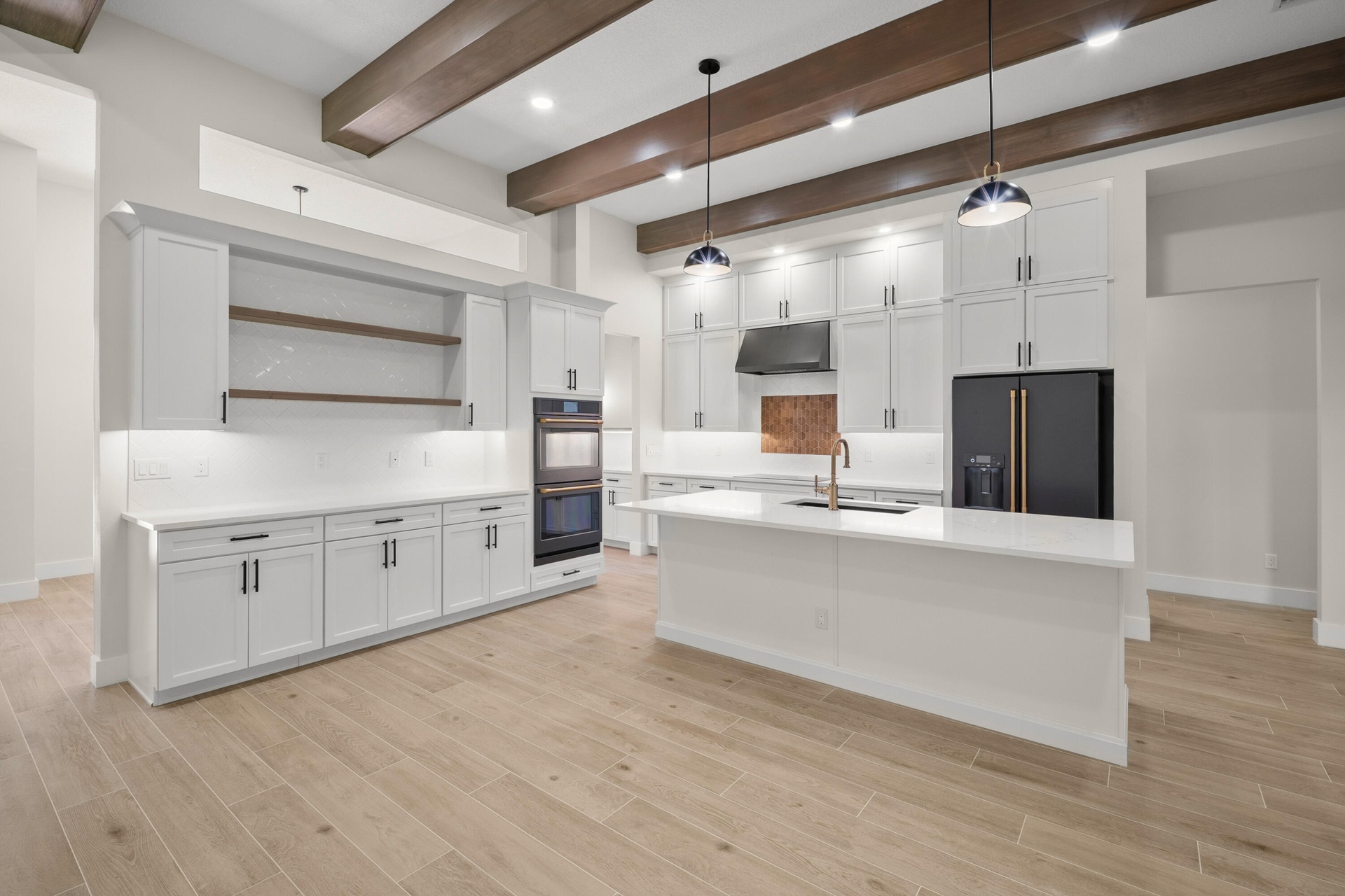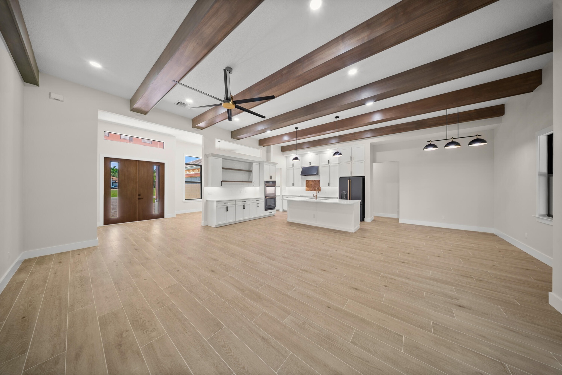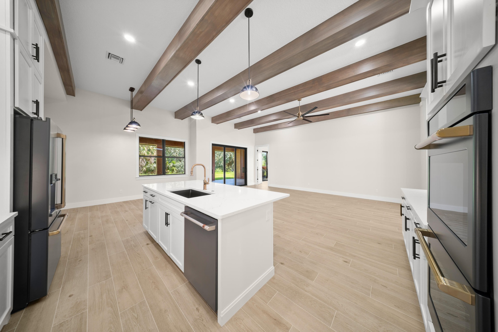 Build complete, now move-in ready! This is the only home of its kind, a custom, never-before-built design in the gated community of Rivella, set on a premium corner lot with preserve views. Inside, you'll find 12' ceilings, exposed beams, and triple impact sliders leading to a covered lanai with outdoor kitchen and fireplace. The chef's kitchen includes quartz counters, custom cabinetry, and a walk-through butler's pantry. The primary suite offers a freestanding tub, oversized shower, and full privacy. Enjoy walkable access to the clubhouse, pool, and tennis. Located near Jensen Beach, downtown Stuart, botanical gardens, and upscale shopping. No closing costs with preferred lender.