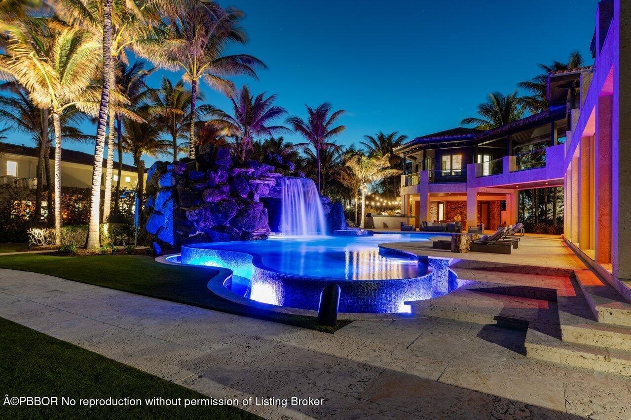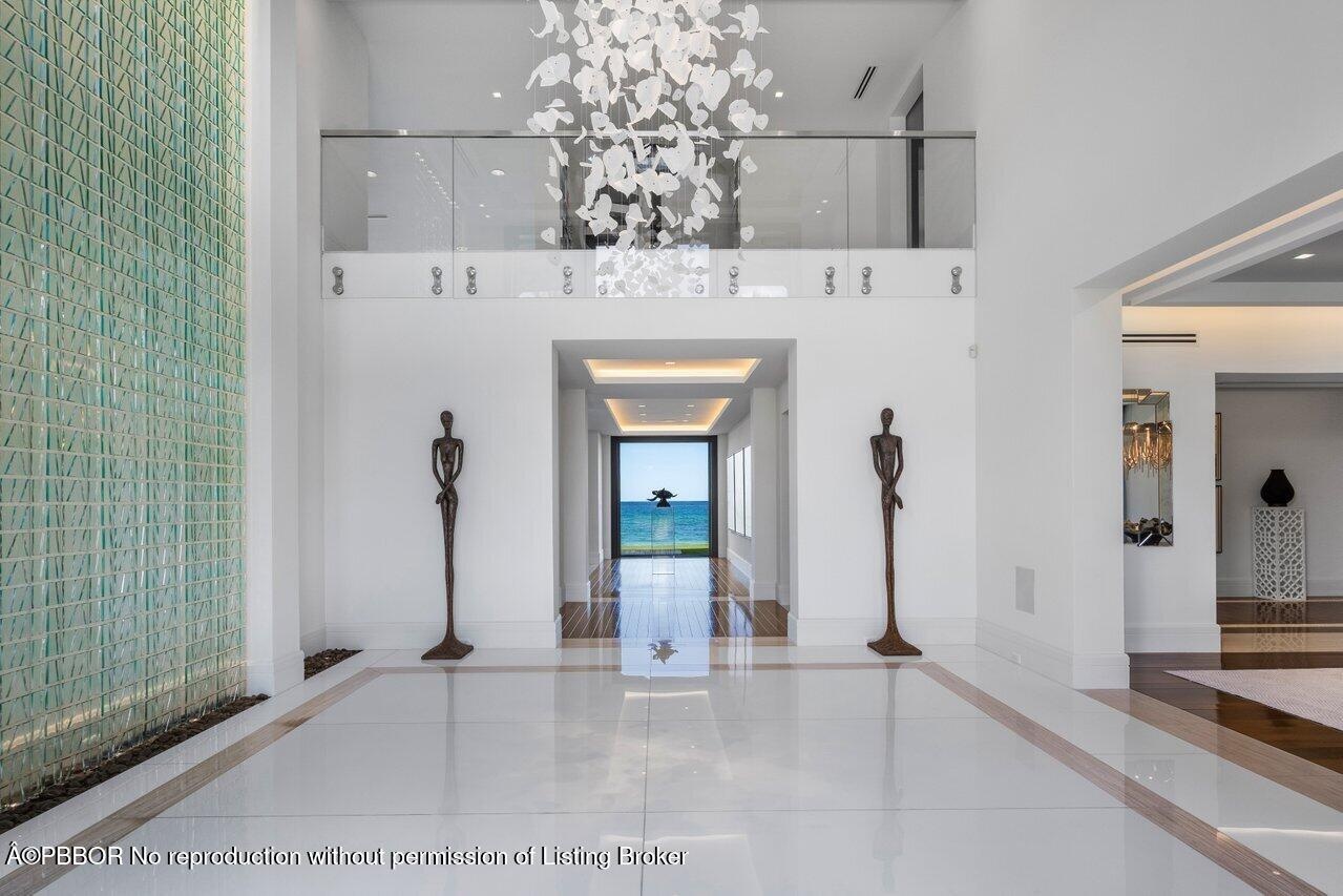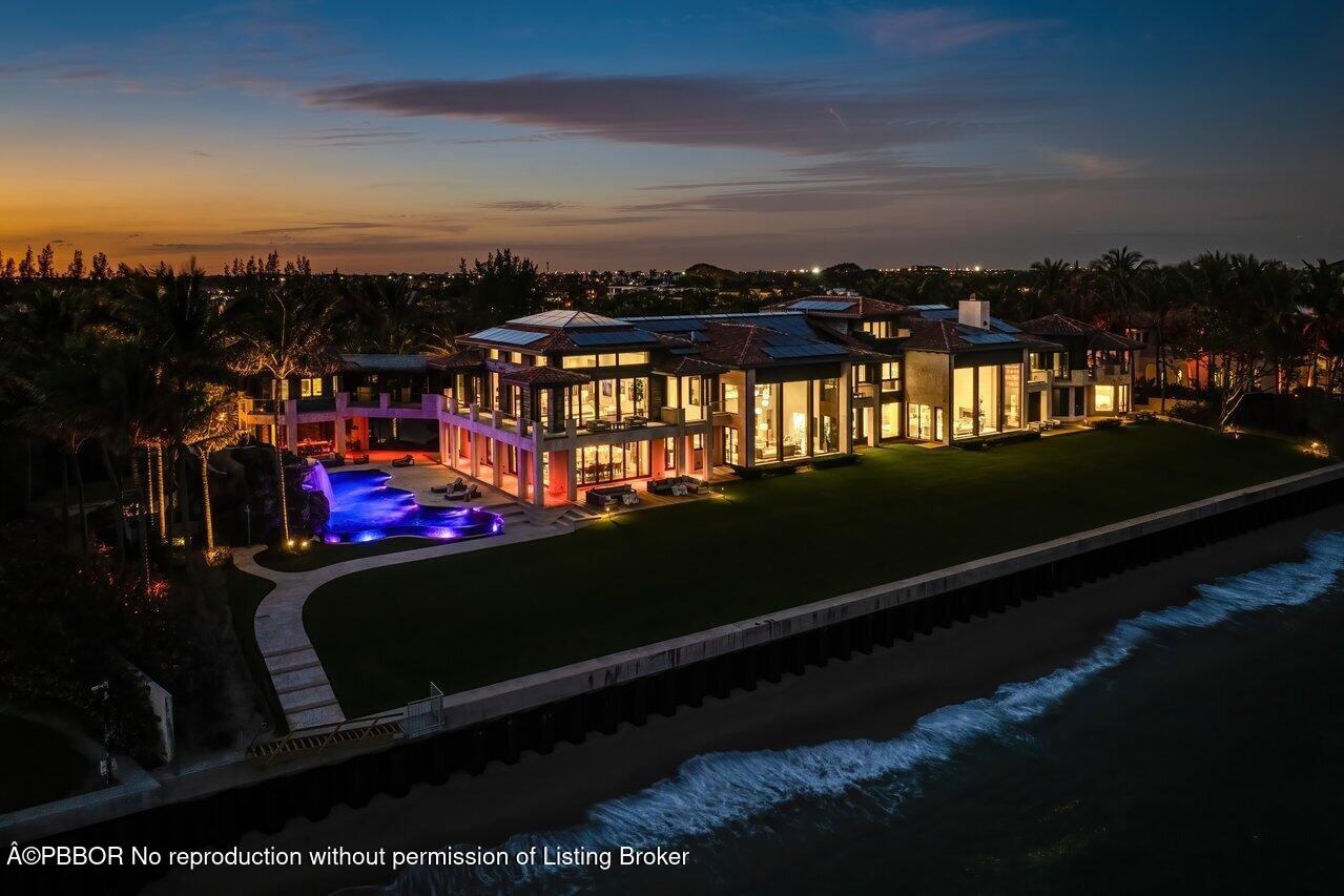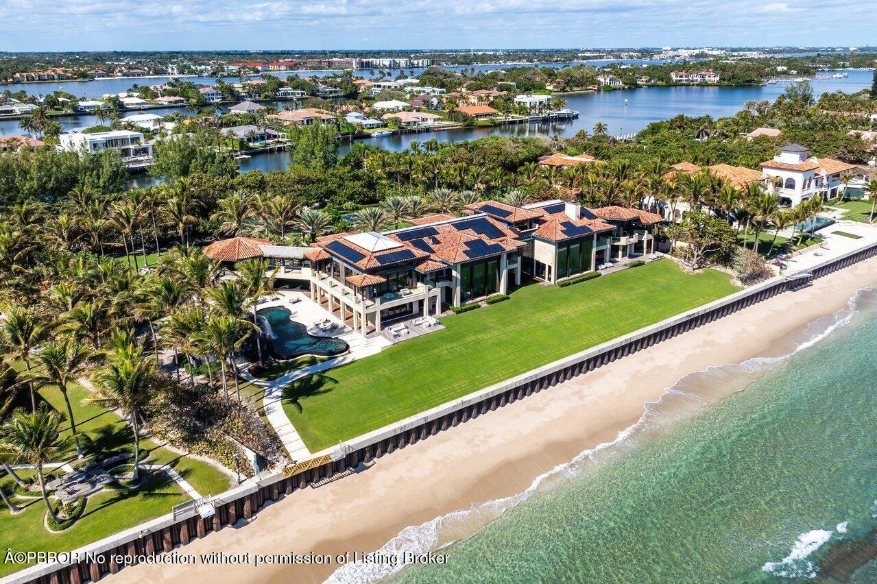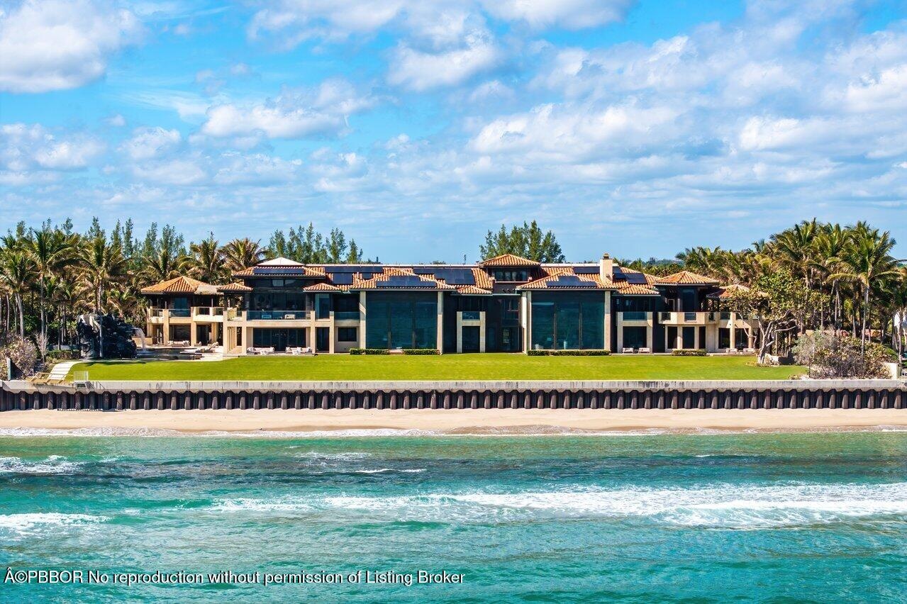 Ready for immediate occupancy.Magnificent Manalapan Modern Balinese inspired 2.83+/--acre estate, 34,498-square-foot full resort-style compound with unparalleled direct ocean views. Boasting 300+feet of water frontage from ocean to Intracoastal making it one of the largest estates in Manalapan. Completely reimagined in 2015, with recent upgrades and improvements including movie room, library, game rooms, wine room, ocean office, and several private lounges and flex spaces ensuring all needs are met. Designed by the famed Marc-Michaels Interior Design Inc, this house comes fully custom furnished & turnkey! This estate includes a total of 9 Bedrooms, 11.5 Baths, with 7 oceanfront suites and 2 lush guest garden suites. Both formal living room & family room have dramatic one of a kind 30ft fl elevators. A dedicated spa and wellness wing offers a gym, massage room, rain shower, and oceanfront yoga terrace. Outdoor highlights include expansive loggias, oceanfront balconies, a resort-style saltwater pool with waterfalls and waterslide, oversized spa, full outdoor kitchen, and lush tropical landscaping. A private deep-water dock provides direct ocean access via multiple inlets, completing this rare oceanfront and boating estate in prestigious Manalapan.