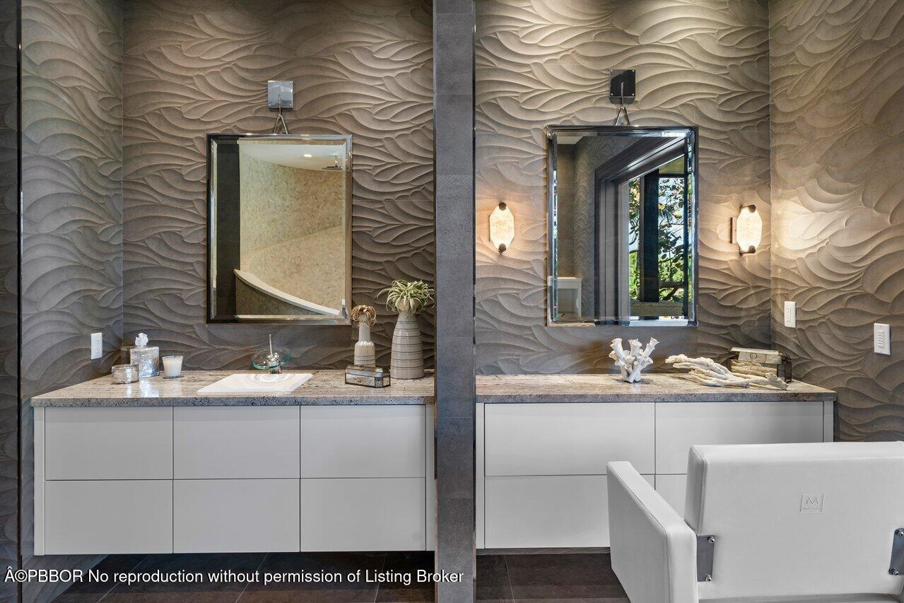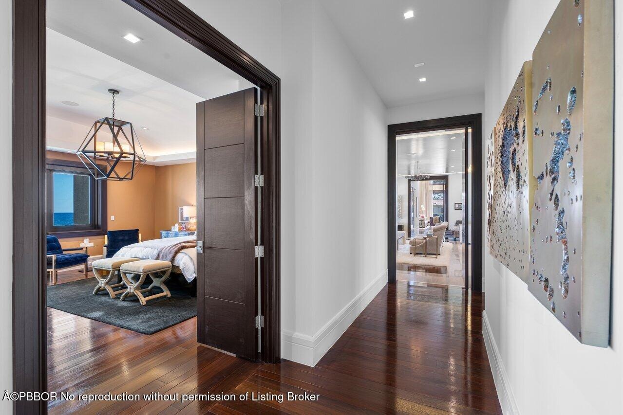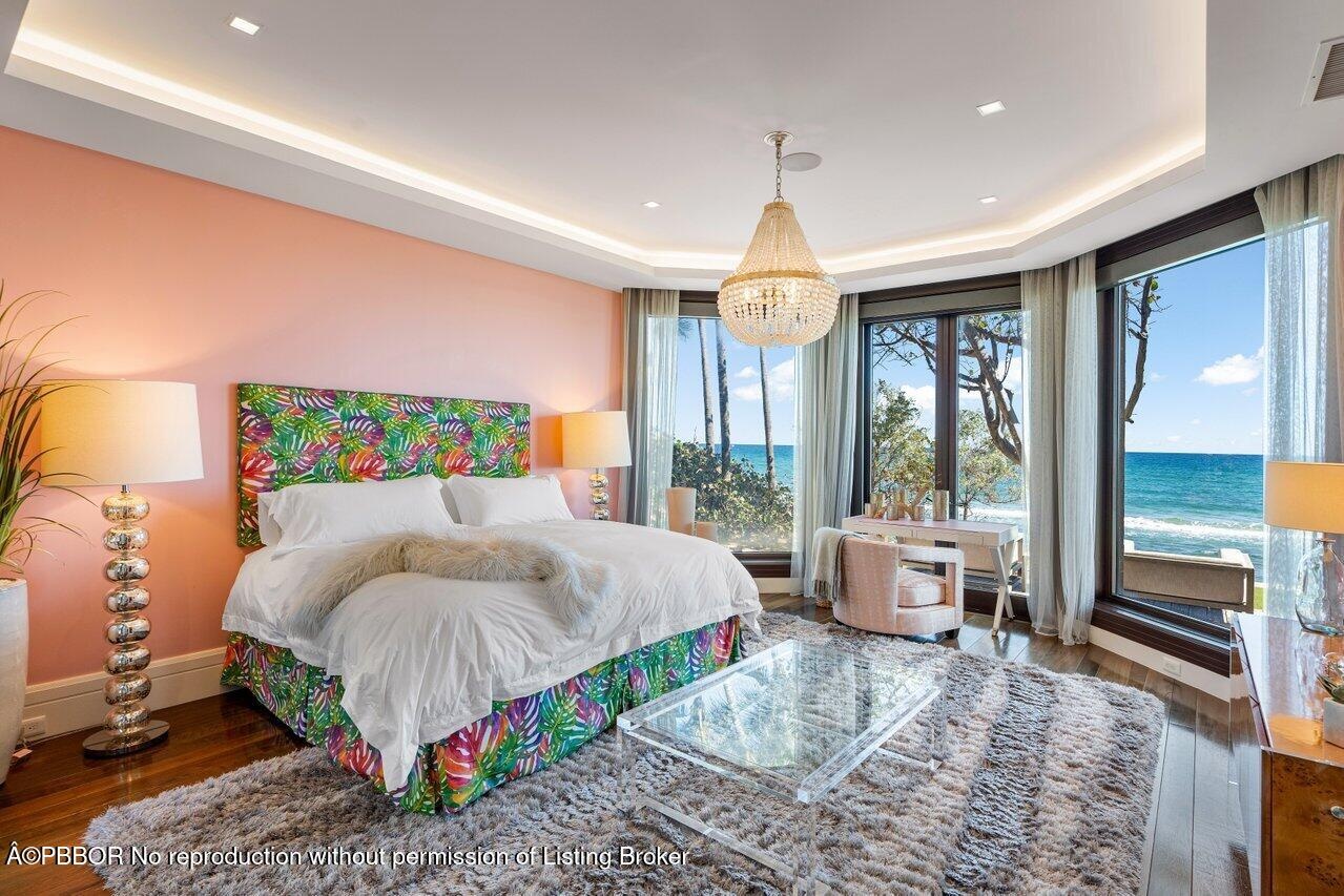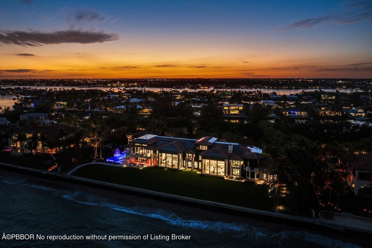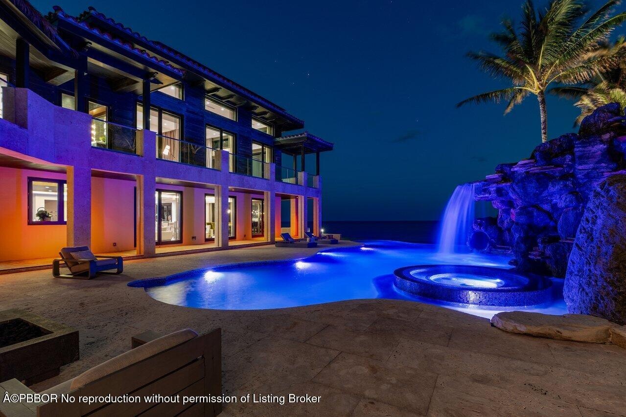 Ready for immediate occupancy.Magnificent Manalapan Modern Balinese inspired 2.83+/--acre estate, 34,498-square-foot full resort-style compound with unparalleled direct ocean views. Boasting 300+feet of water frontage from ocean to Intracoastal making it one of the largest estates in Manalapan. Completely reimagined in 2015, with recent upgrades and improvements including movie room, library, game rooms, wine room, ocean office, and several private lounges and flex spaces ensuring all needs are met. Designed by the famed Marc-Michaels Interior Design Inc, this house comes fully custom furnished & turnkey! This estate includes a total of 9 Bedrooms, 11.5 Baths, with 7 oceanfront suites and 2 lush guest garden suites. Both formal living room & family room have dramatic one of a kind 30ft fl elevators. A dedicated spa and wellness wing offers a gym, massage room, rain shower, and oceanfront yoga terrace. Outdoor highlights include expansive loggias, oceanfront balconies, a resort-style saltwater pool with waterfalls and waterslide, oversized spa, full outdoor kitchen, and lush tropical landscaping. A private deep-water dock provides direct ocean access via multiple inlets, completing this rare oceanfront and boating estate in prestigious Manalapan.