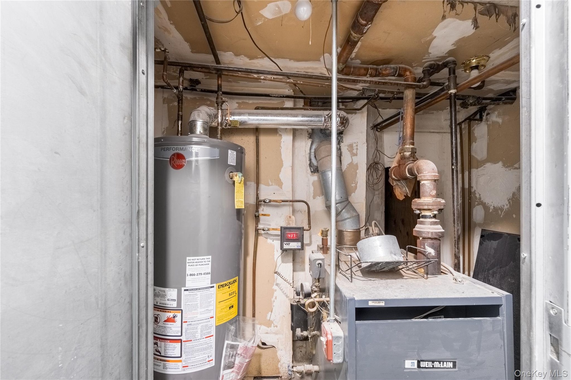 - Utility room featuring water heater and a heating unit